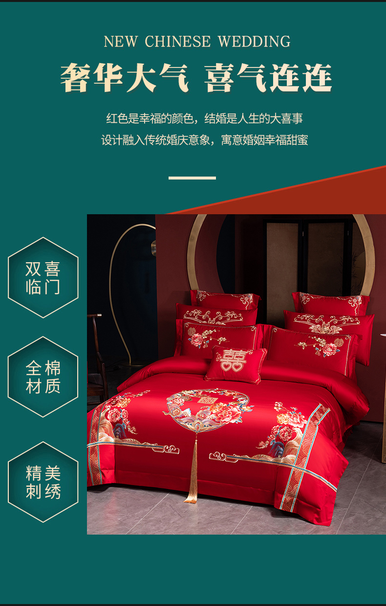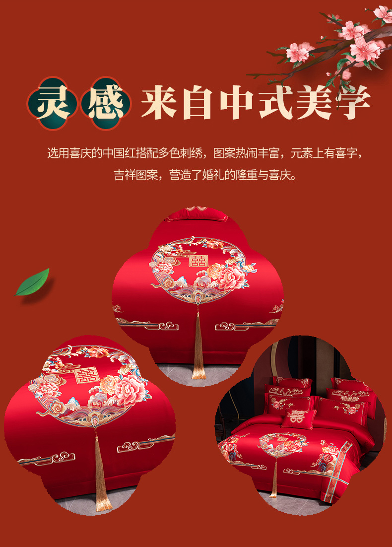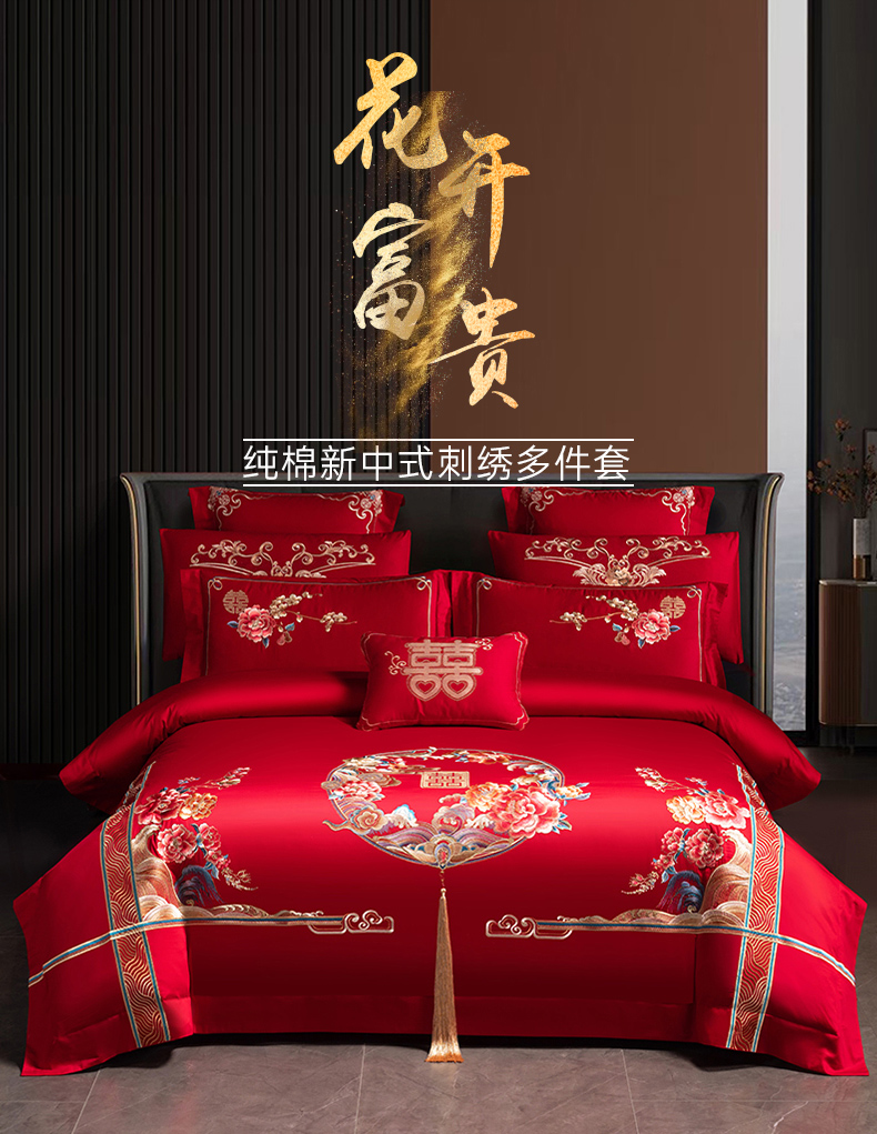 当前位置: 91家纺网 > 商品网购 > 床品套件 > 四件套 > 婚庆四件套 > 博之洋婚庆 2026新款全棉纯棉长绒棉刺绣婚庆四件套多件套 花开富贵