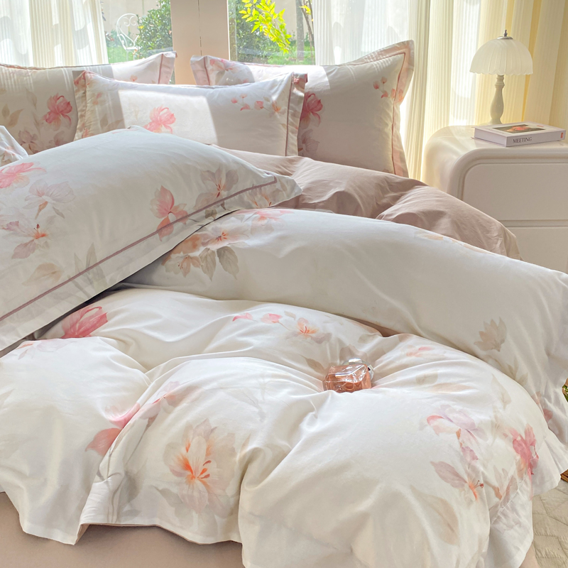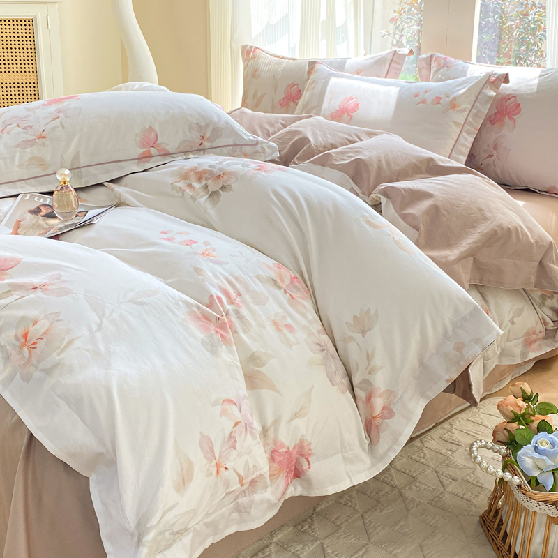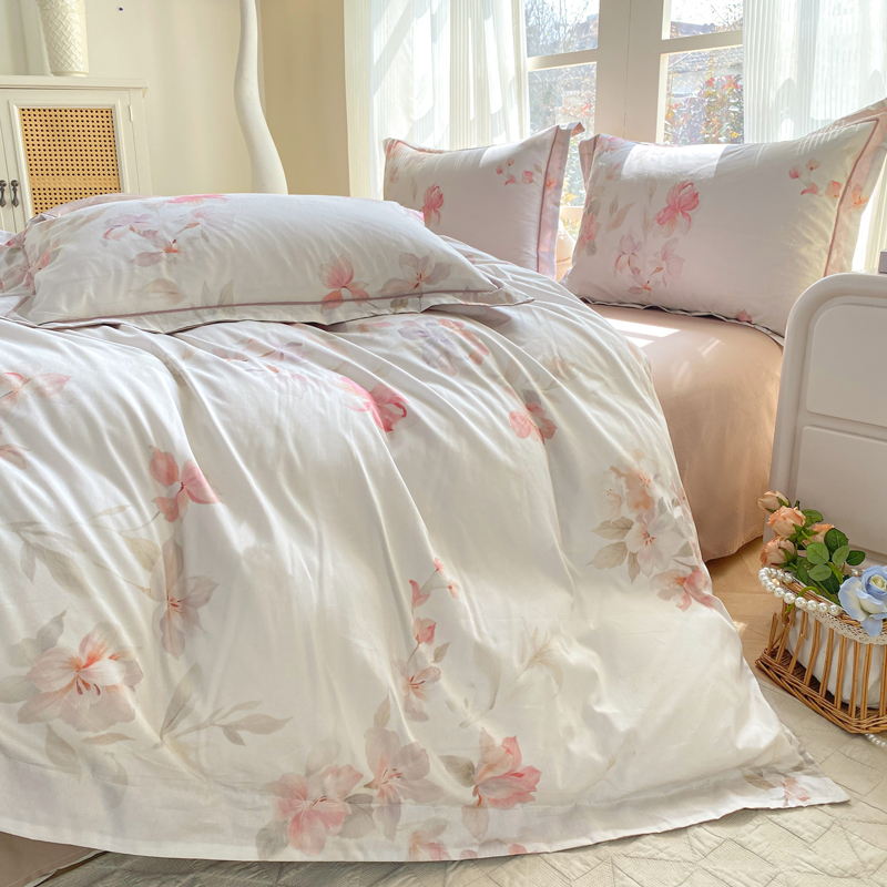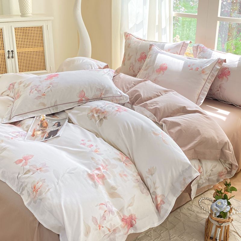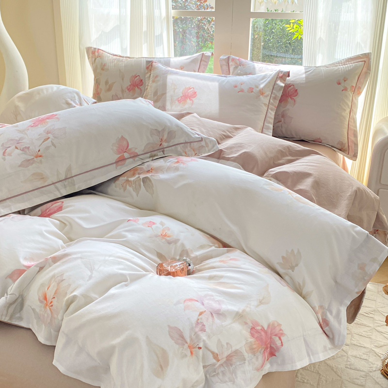 凌鼎 2026新款高支高密100%全棉数码印花四件套 浅绘花影粉