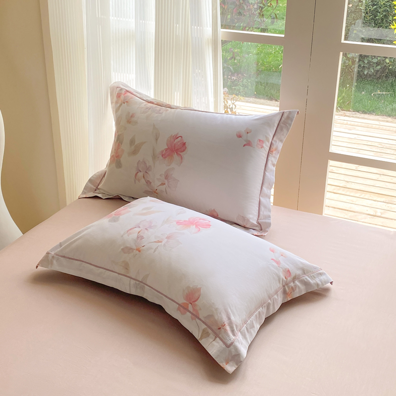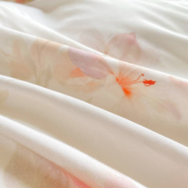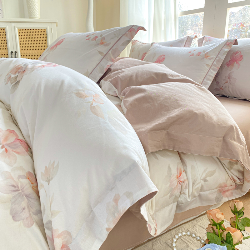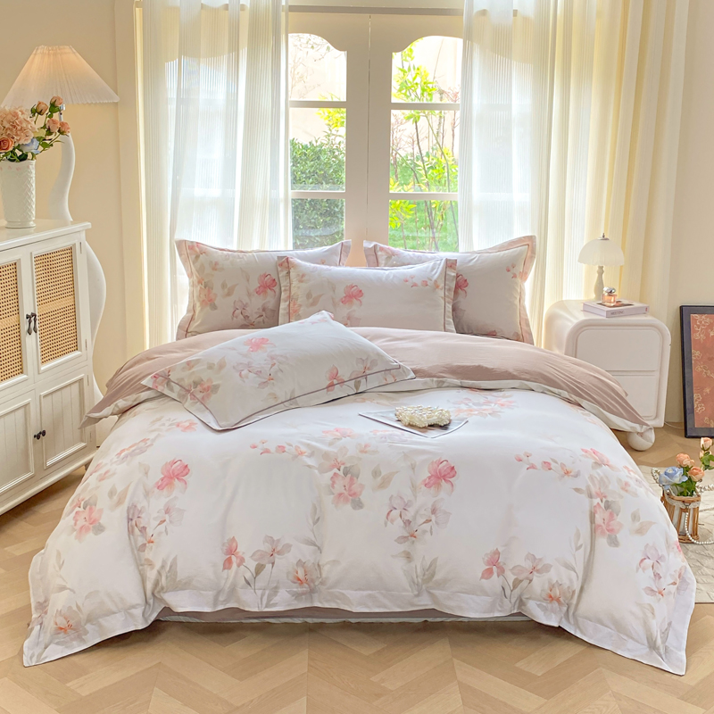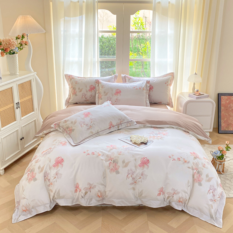 凌鼎 2026新款高支高密100%全棉数码印花四件套 浅绘花影粉