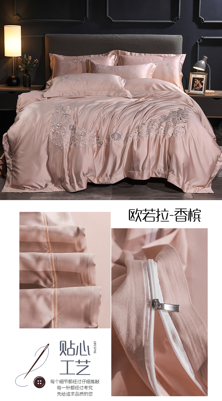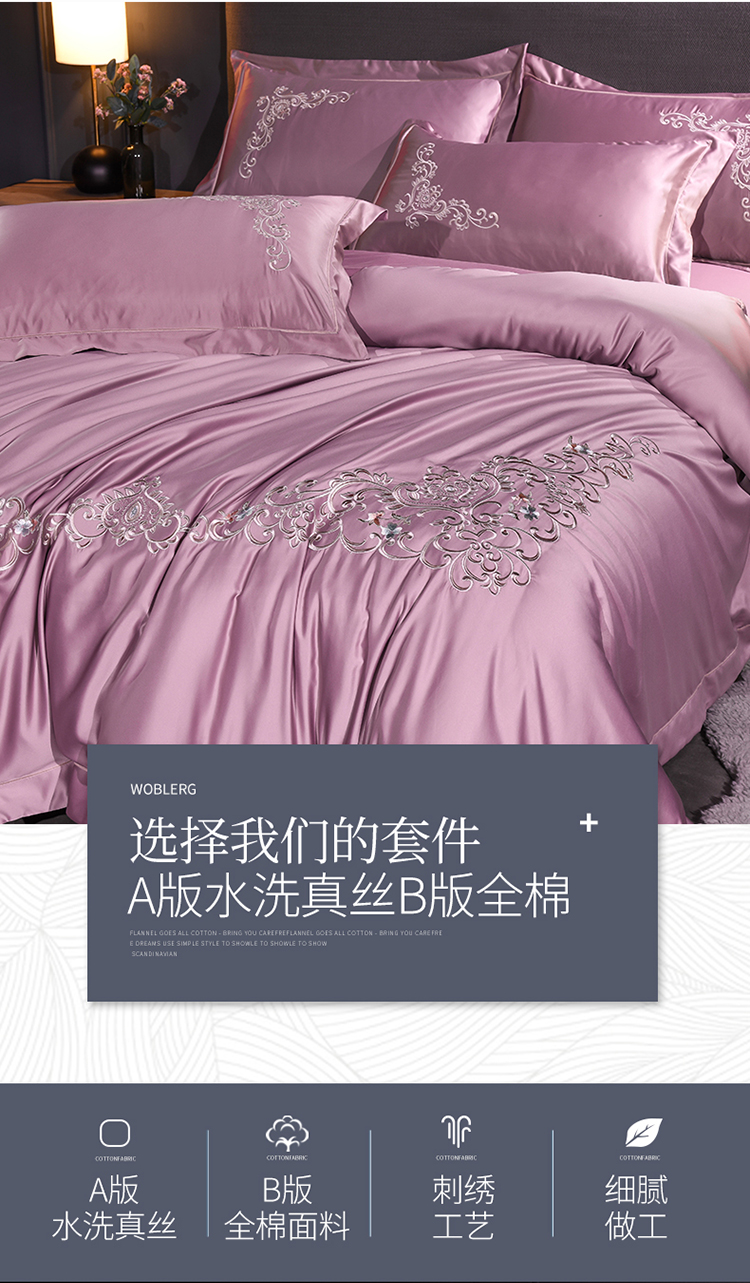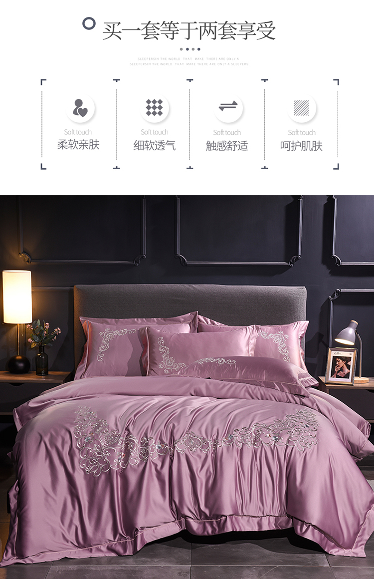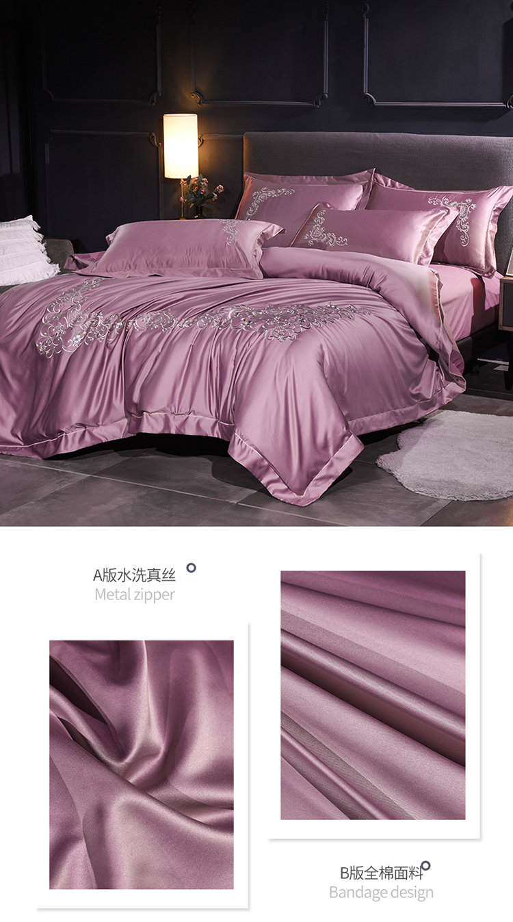 (总)安妮 2020新款水洗真丝欧若拉刺绣四件套