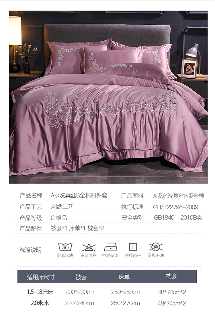商品名称:(总)安妮 2020新款水洗真丝欧若拉刺绣四件套
