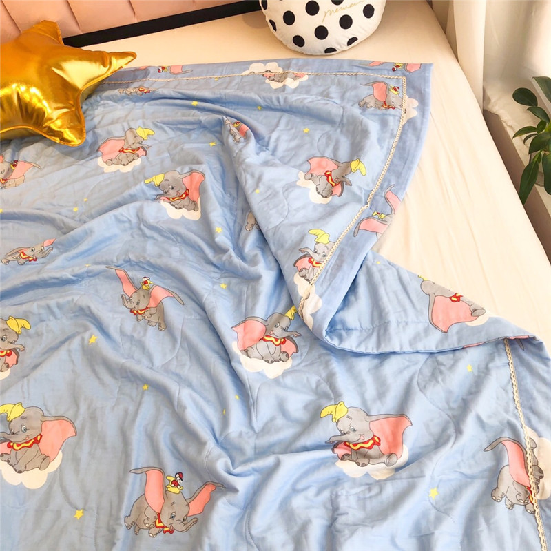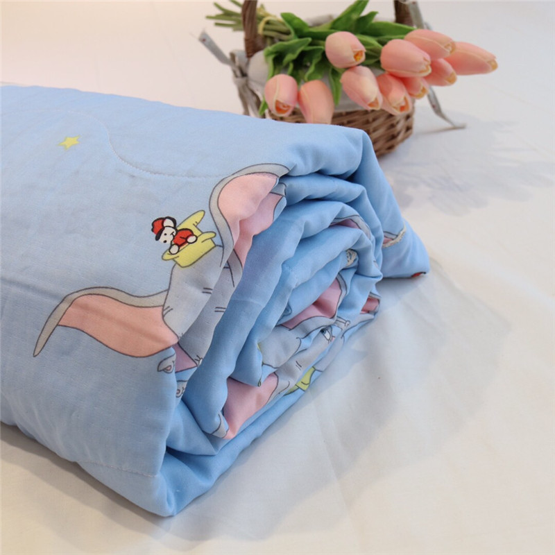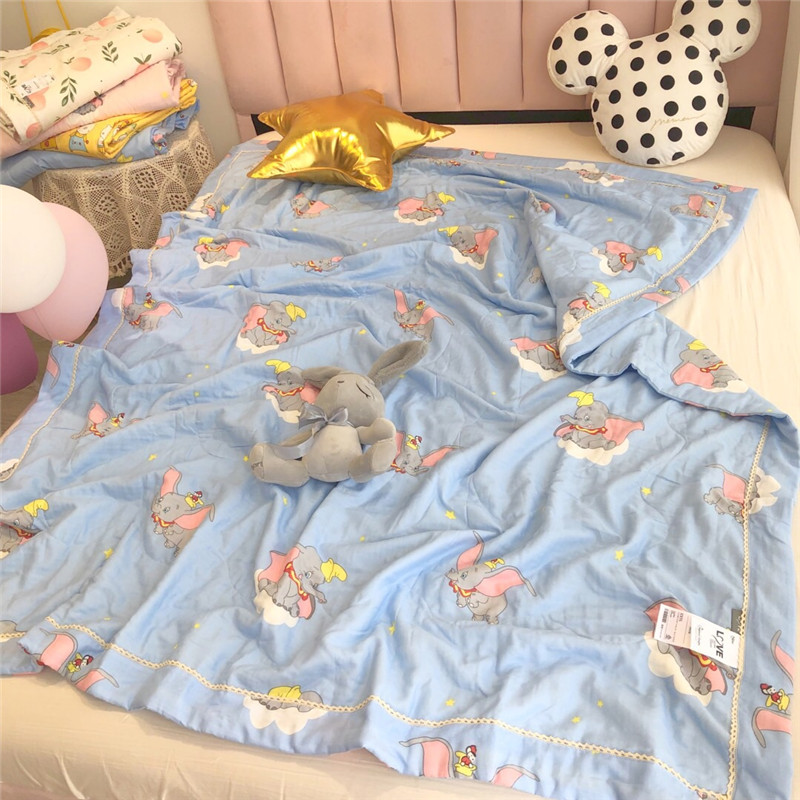 润缦家纺 全棉双层纱夏被 小飞象蓝