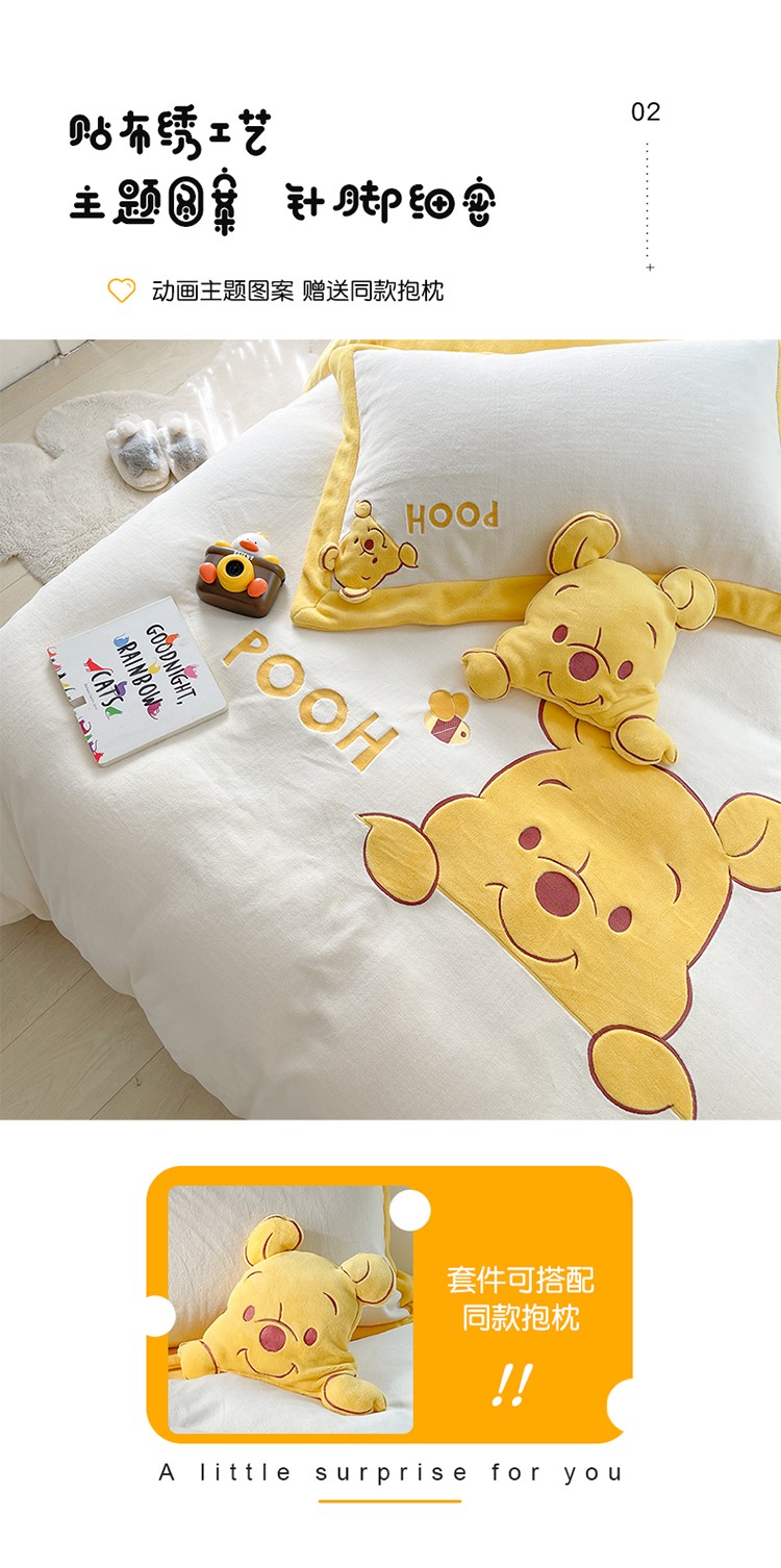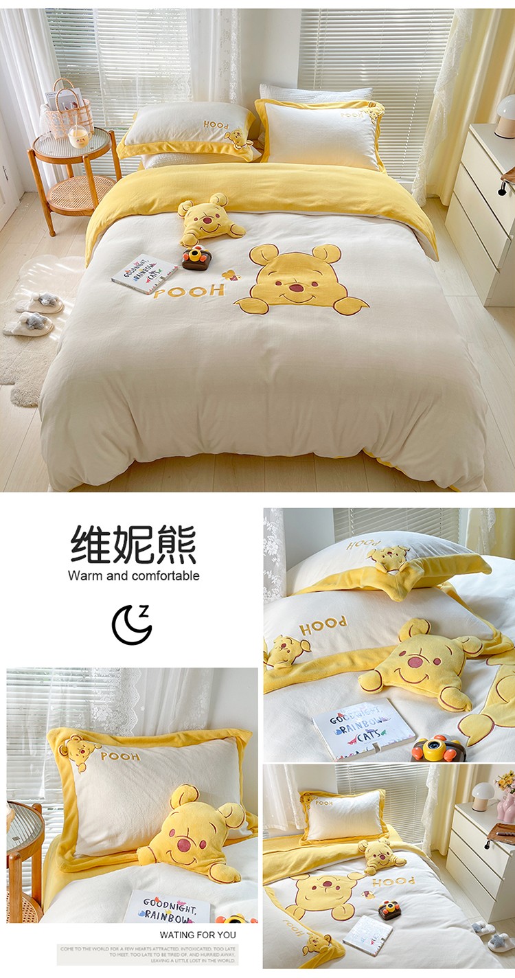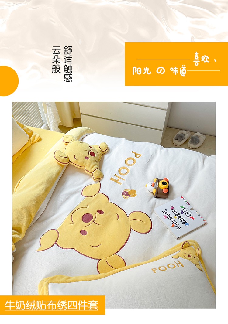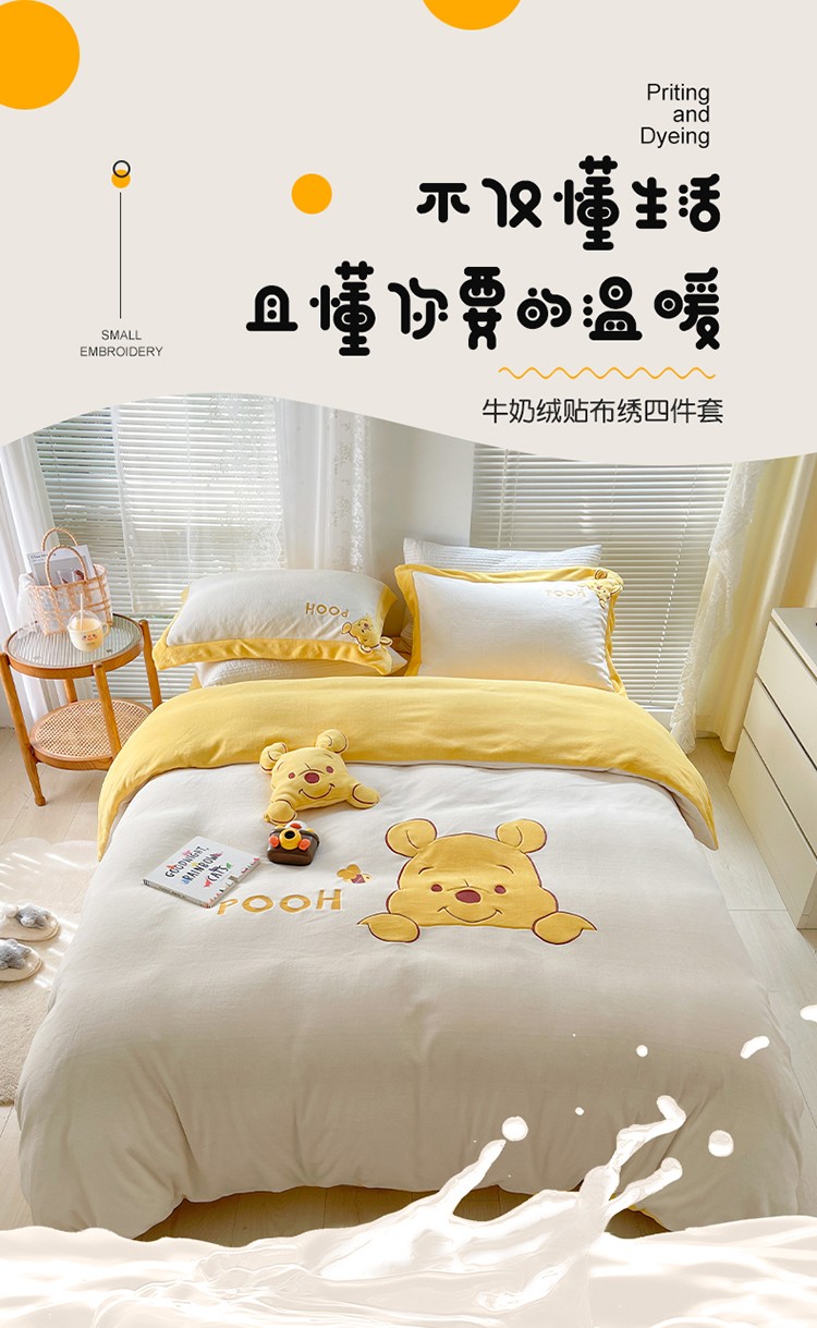 当前位置: 91家纺网 > 商品网购 > 床品套件 > 四件套 > 牛奶绒四件套 > 佰亿莱 2024新款牛奶绒贴布绣四件套 维妮熊