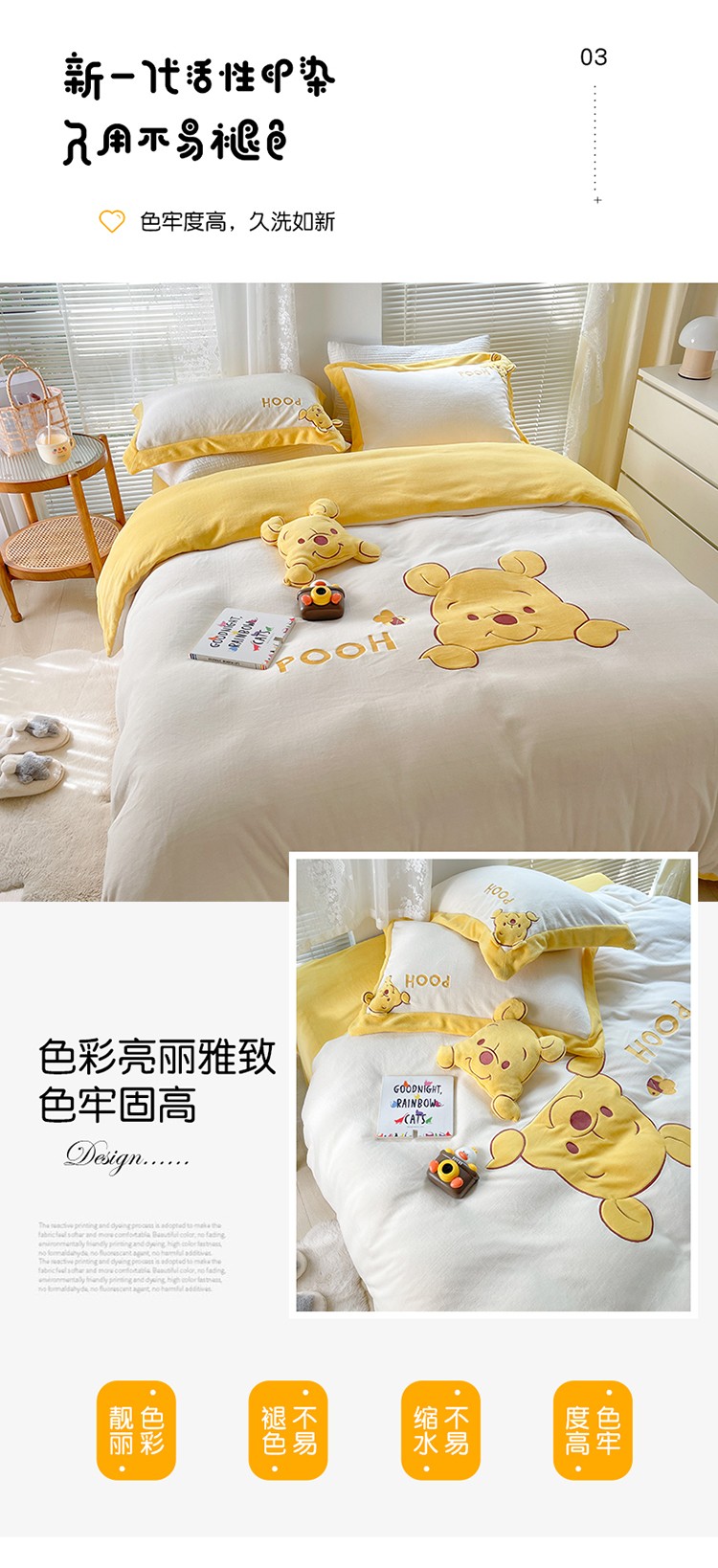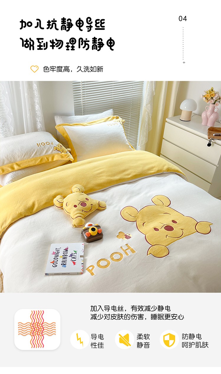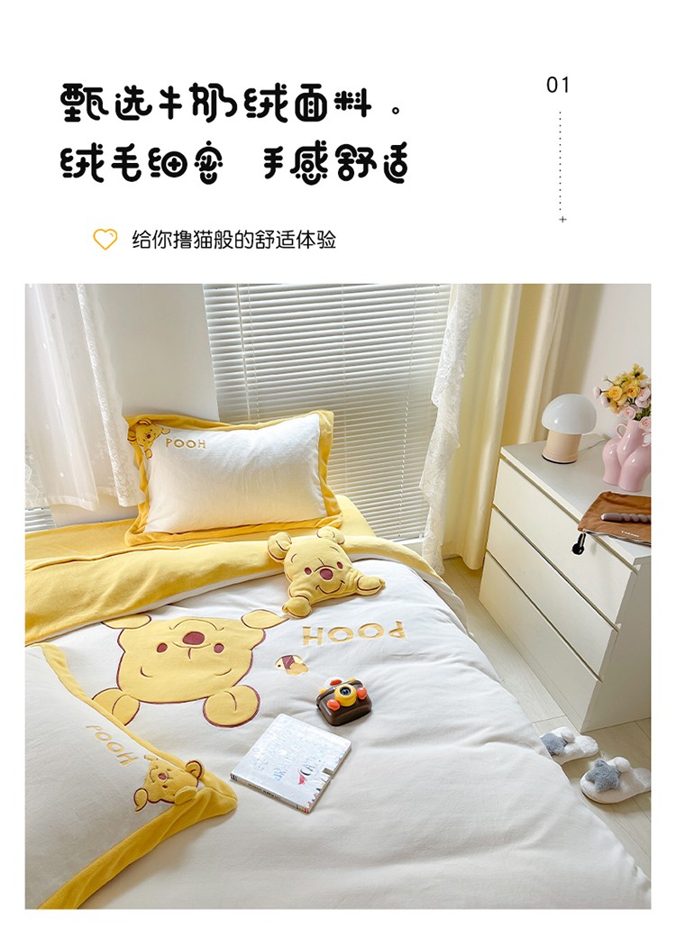 当前位置: 91家纺网 > 商品网购 > 床品套件 > 四件套 > 牛奶绒四件套 > 佰亿莱 2024新款牛奶绒贴布绣四件套 维妮熊