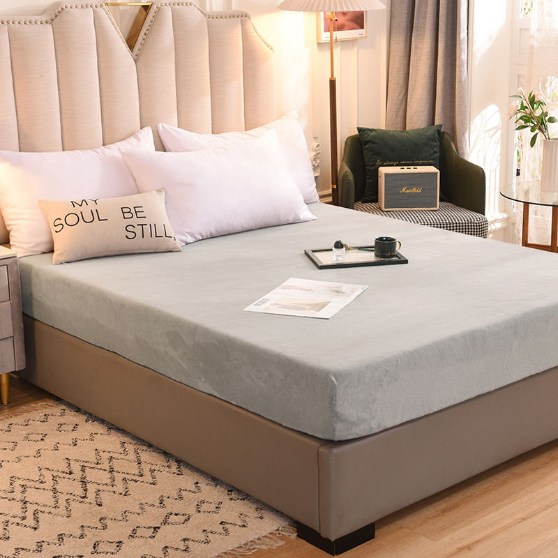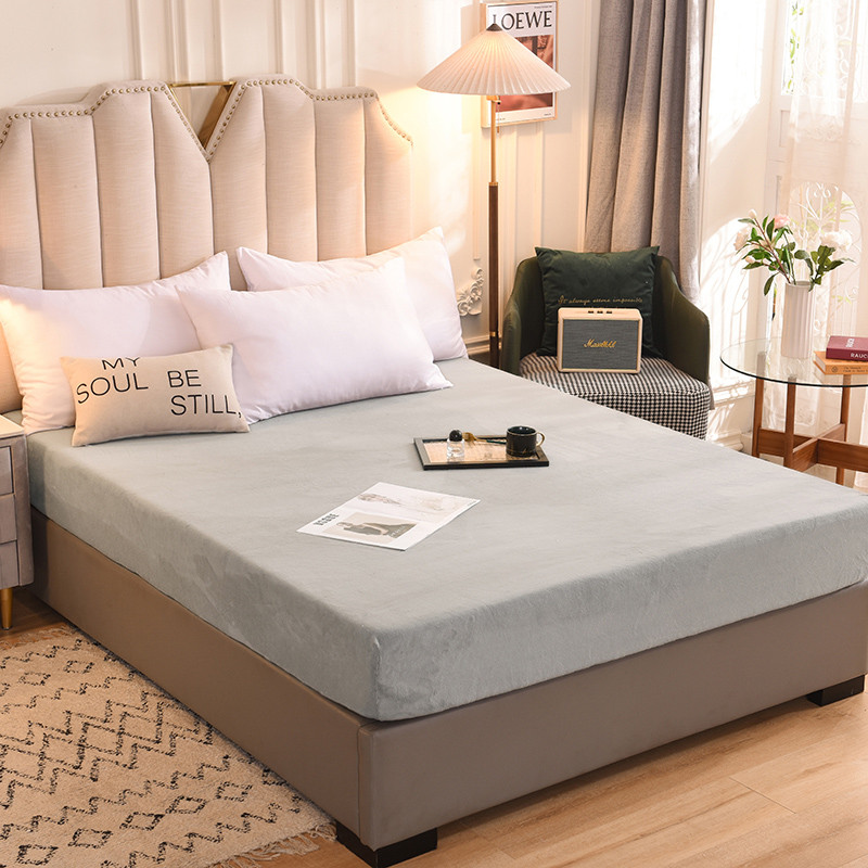 总甜之梦家纺 2025新款韩版泥点绒单床笠(任何尺寸异型缺角都可定做),贵族蓝,玛瑙绿,泥点绒淡粉,优雅灰