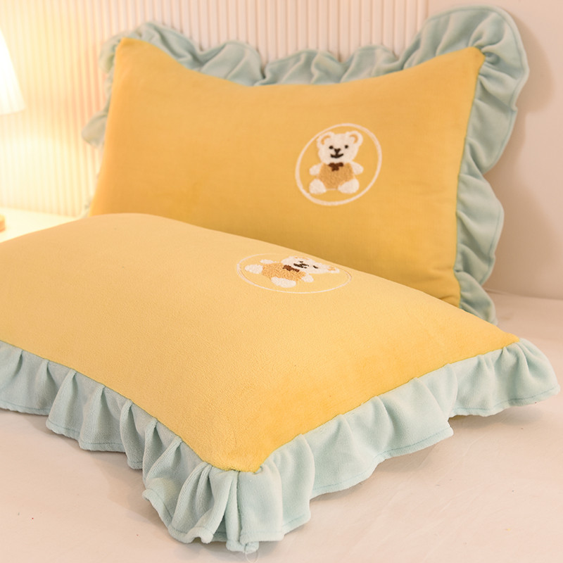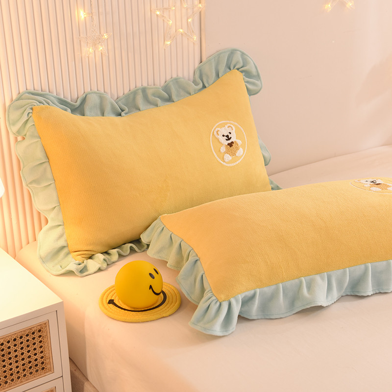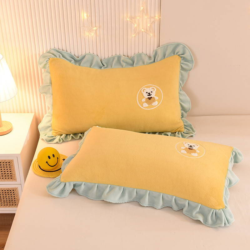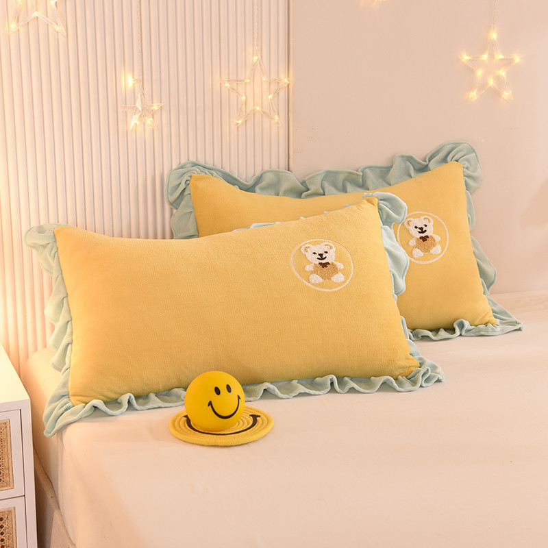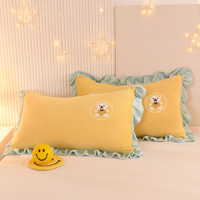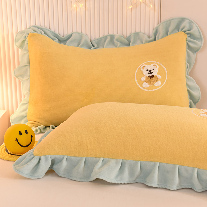 甜之梦 2025新款毛巾绣牛奶绒单枕套 小熊宝可梦嫩黄