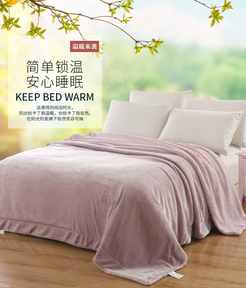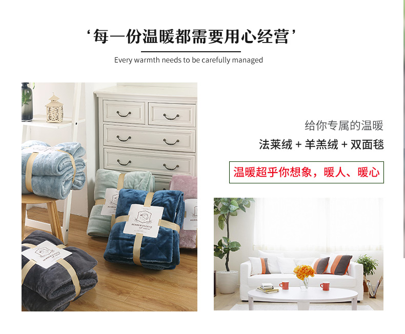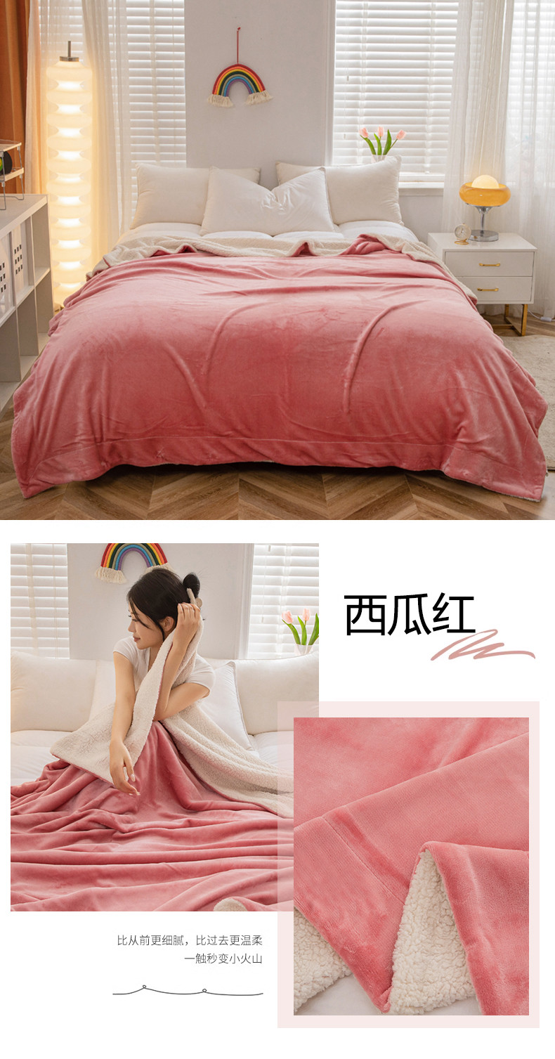 (总)卡琪曼 2022新双面法兰绒羊羔绒毛毯办公室午睡盖毯子