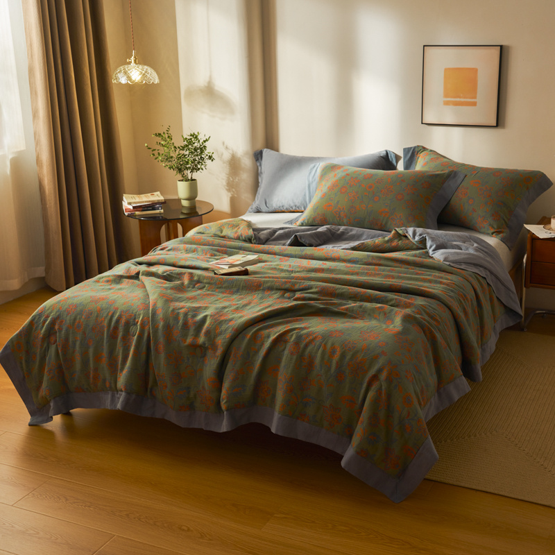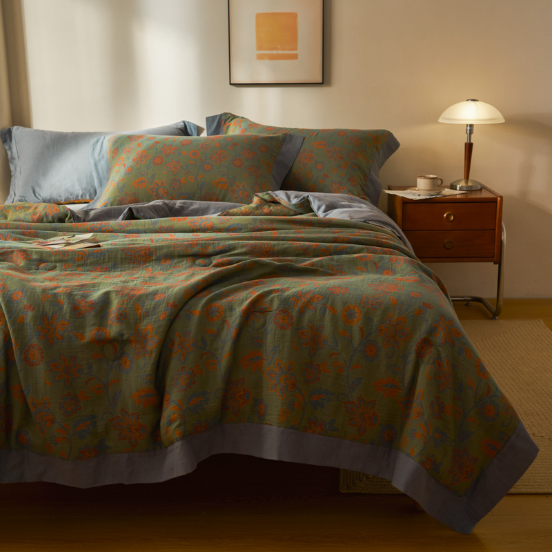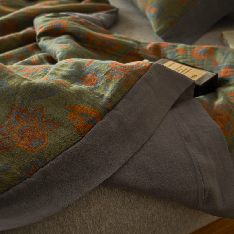 商品名称:吾秀 2023新款复古风A类全棉双层纱棉花夏被 芷卉