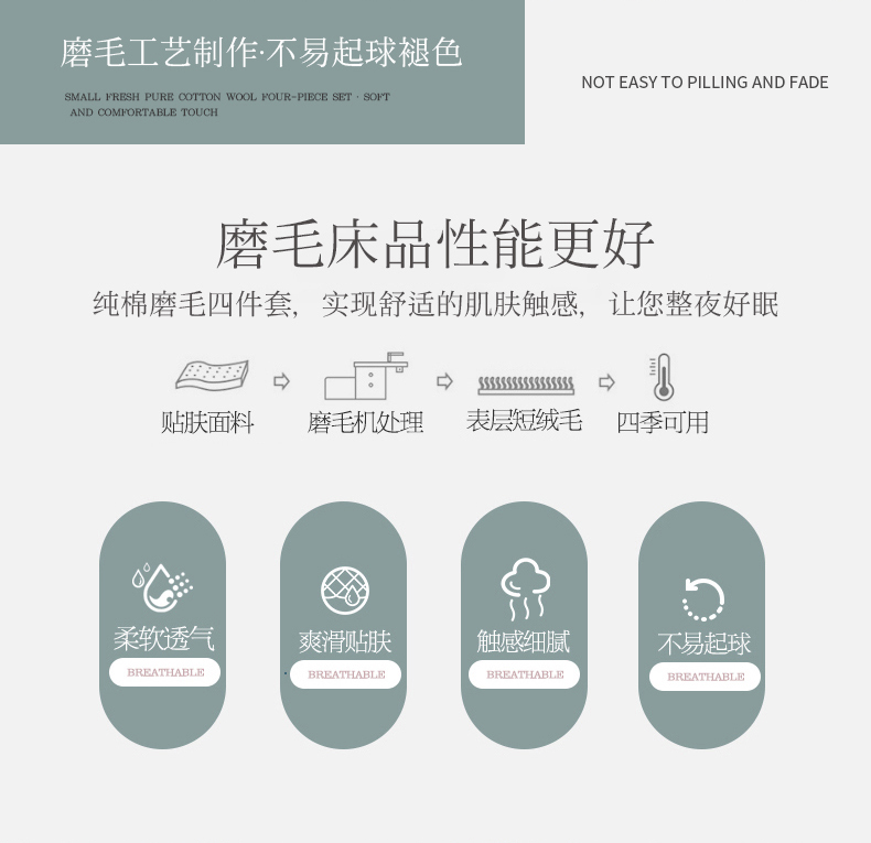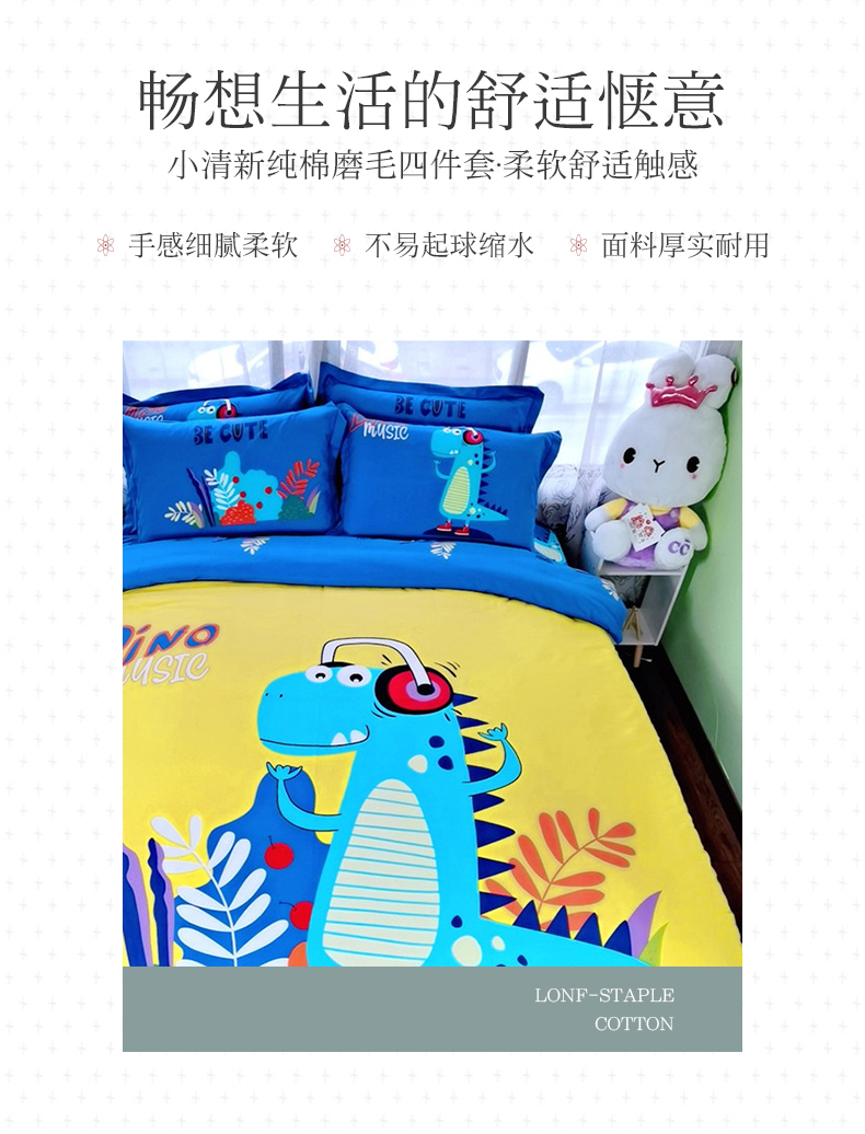 沐白家居 2023全棉大版生态磨毛四件套 音乐派