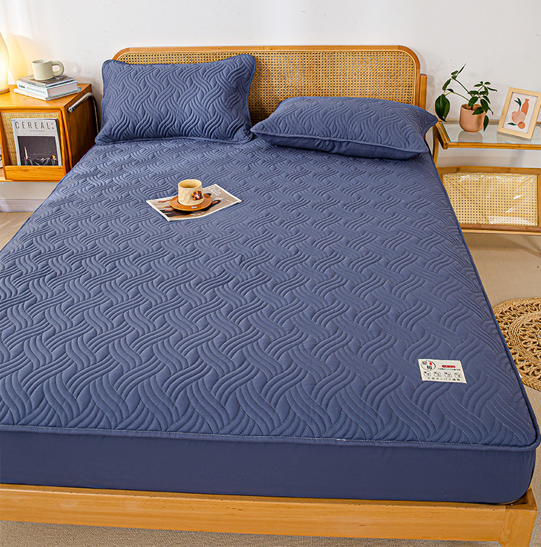 X猫先生2024新款A类原棉本色大豆纤维夹棉床垫三件套 简爱-岩石蓝