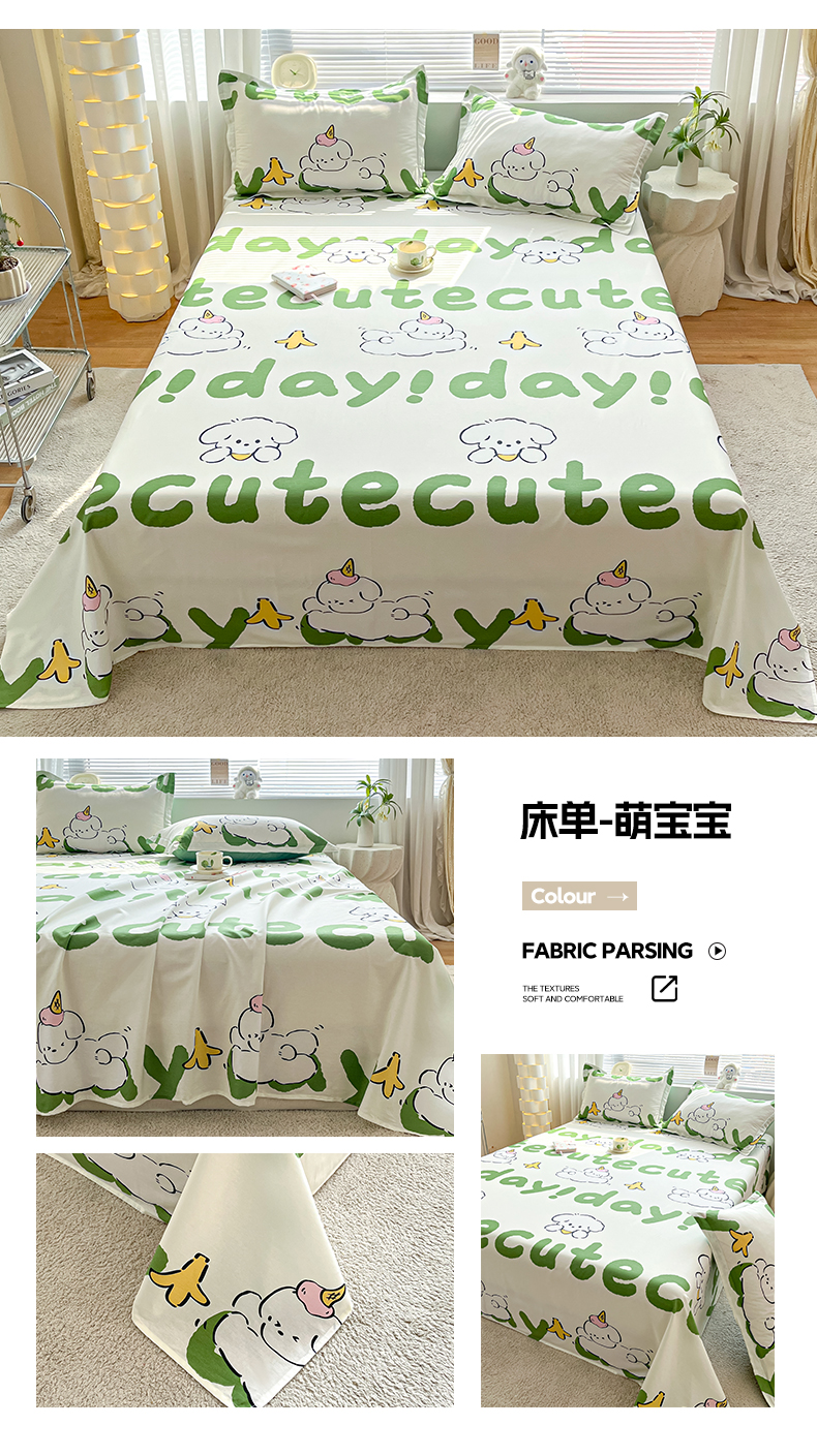 涵宸家纺 2024新款全棉小清新印花单品套件--单床单 床单-萌宝宝