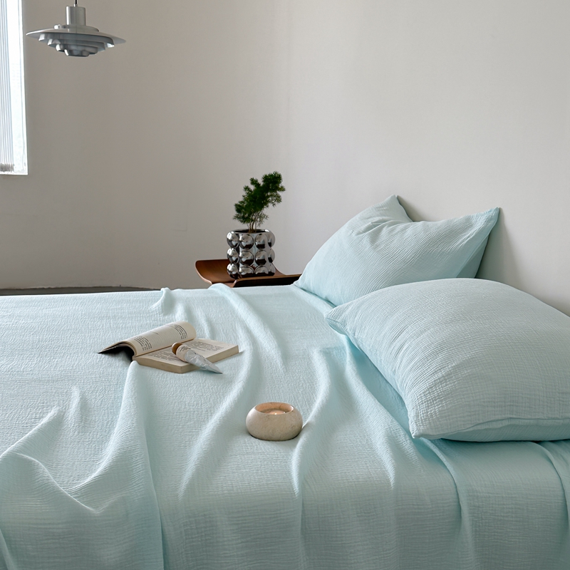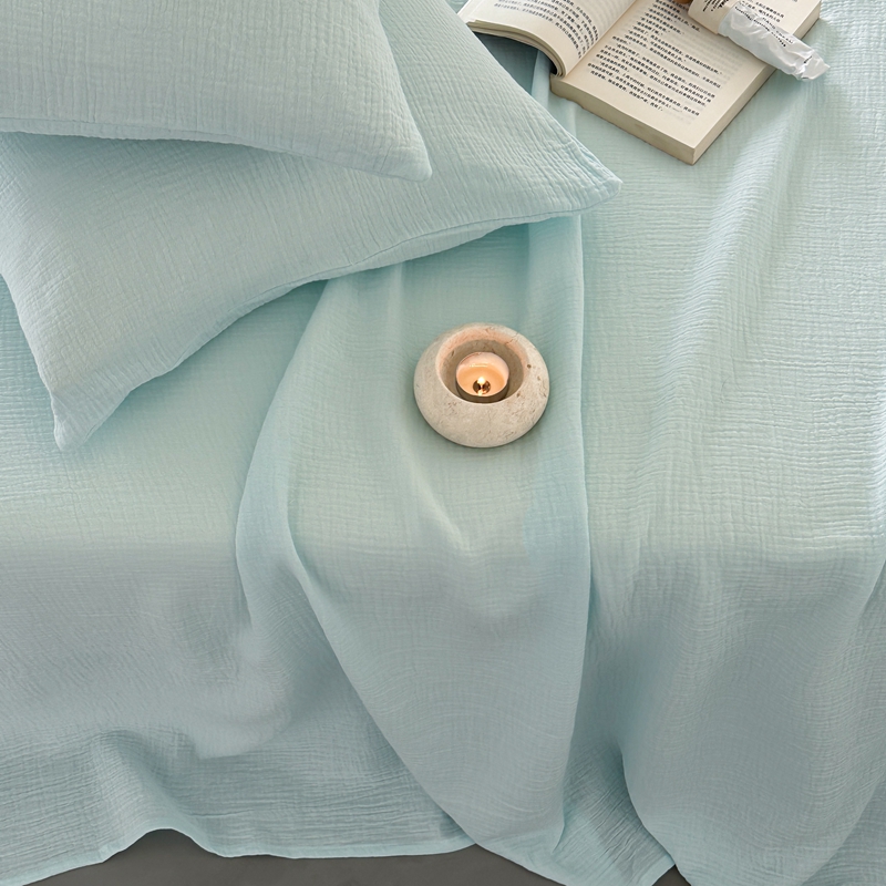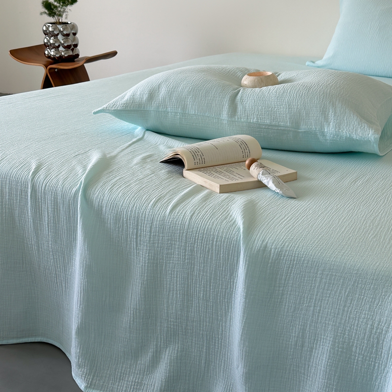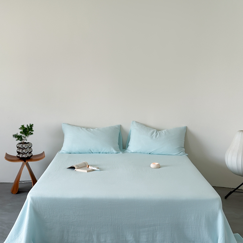 商品名称:山舍家居 2024新款纯色全棉双层皱皱纱单品系列--单床单 星蓝