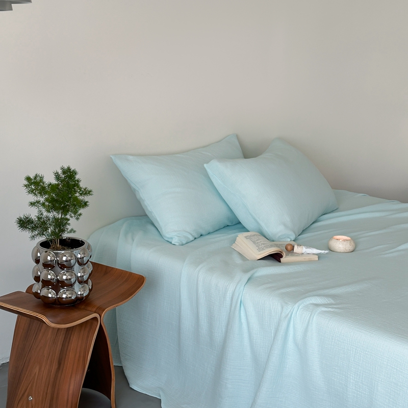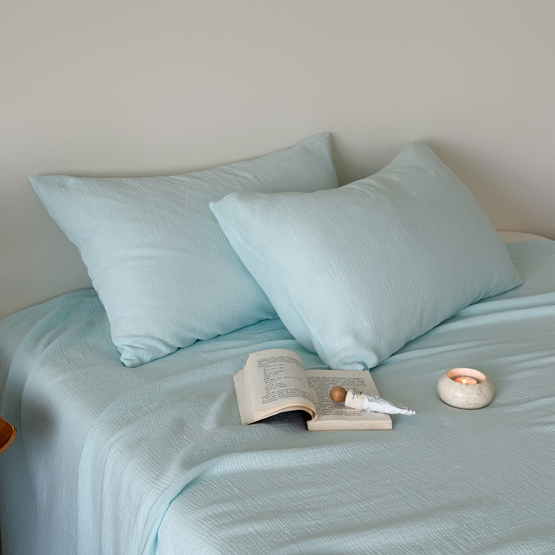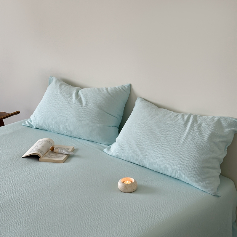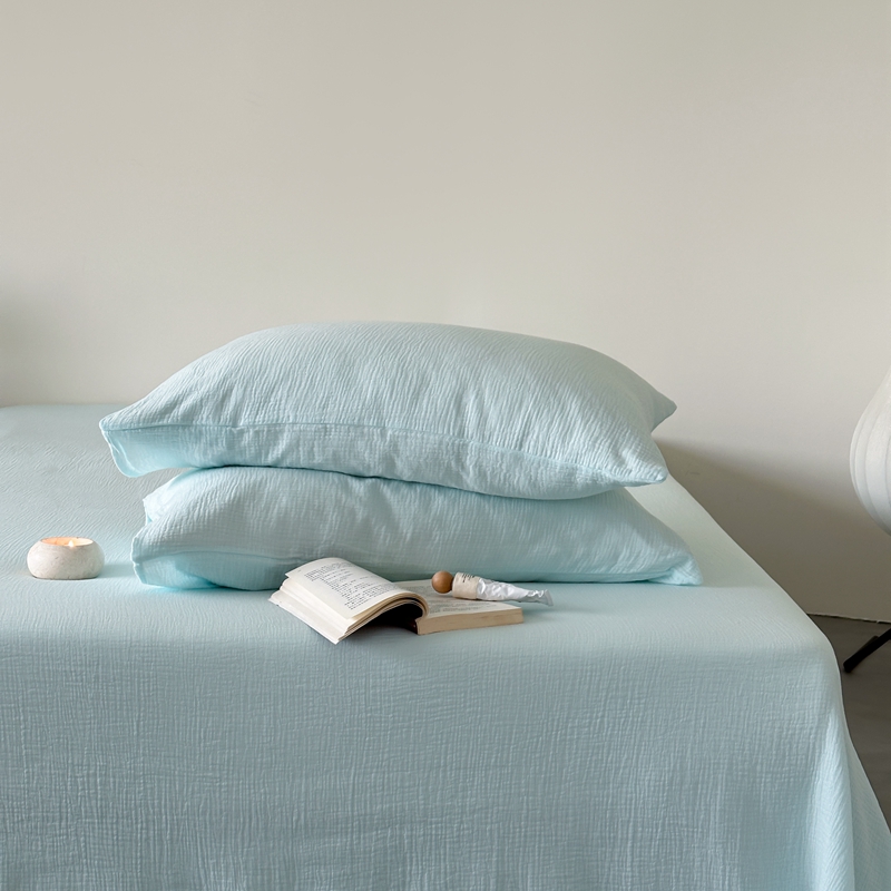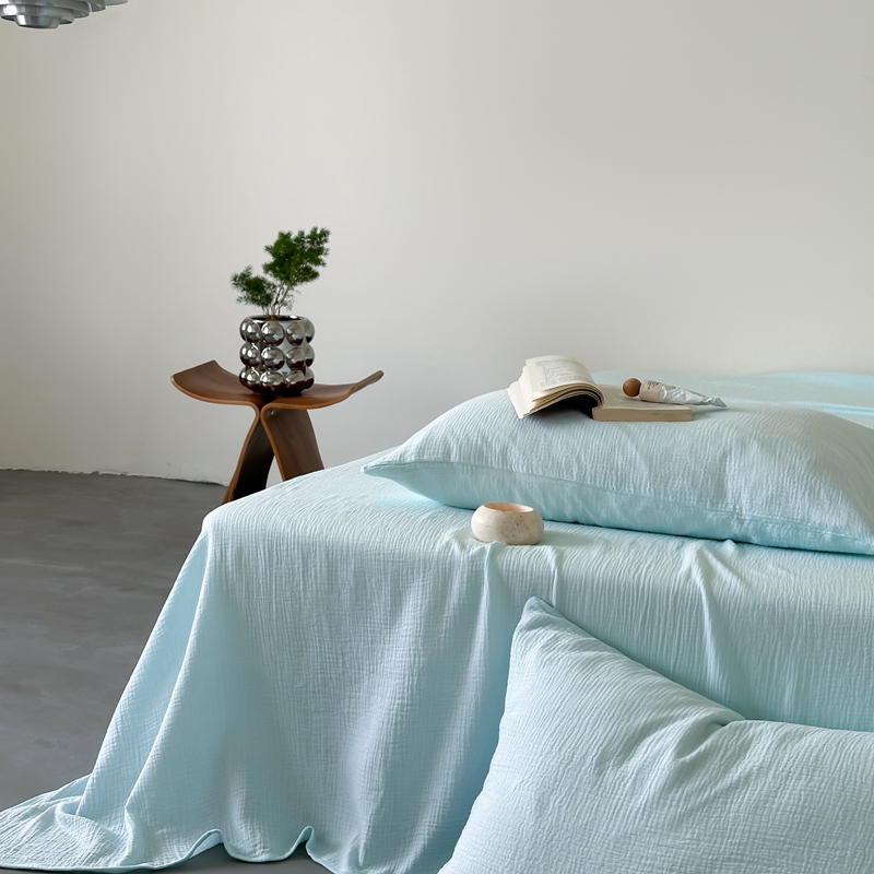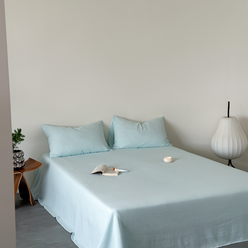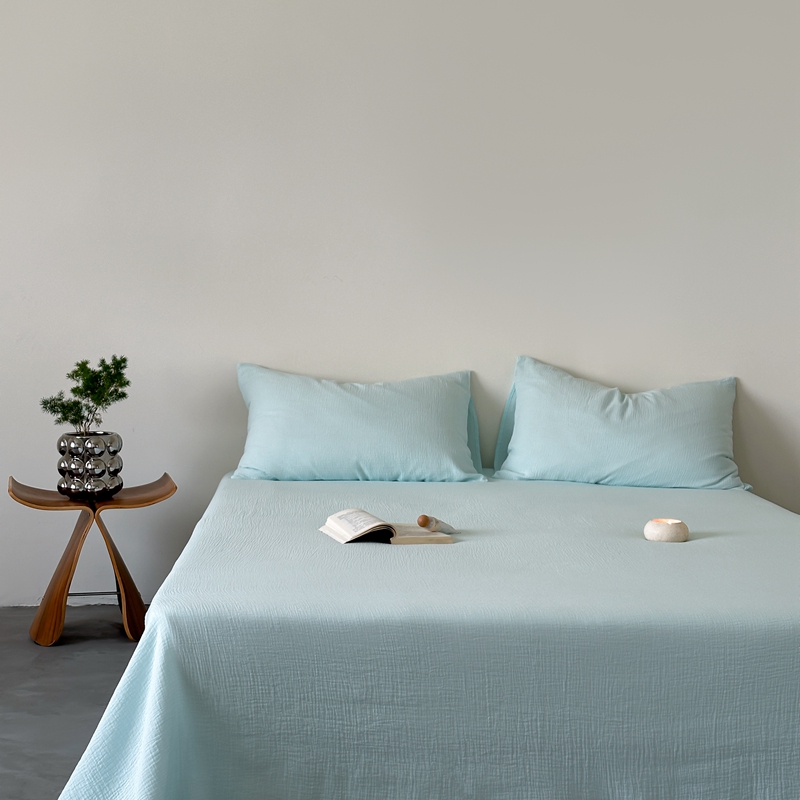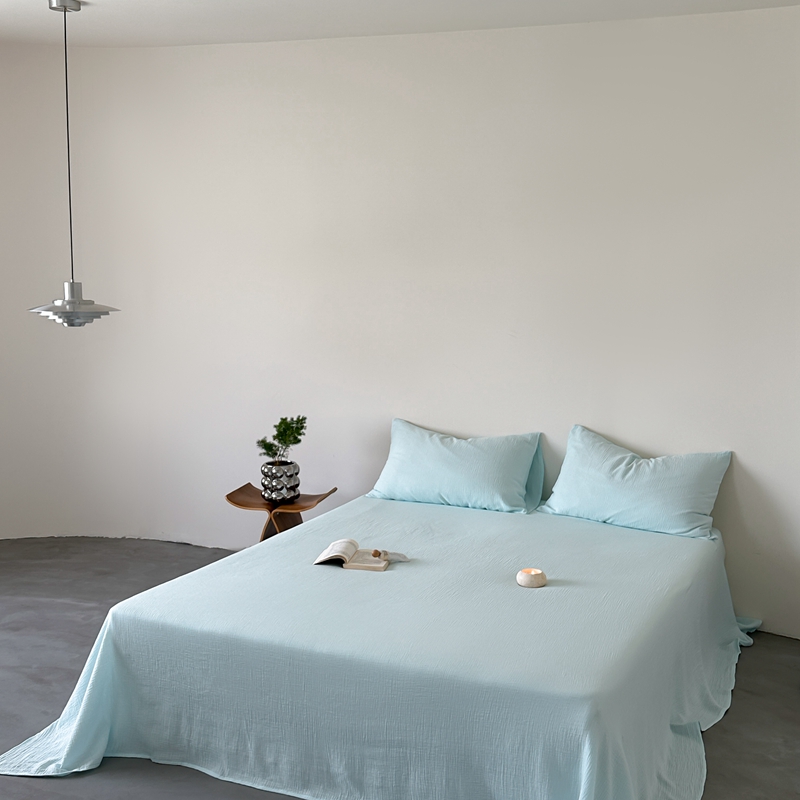 山舍家居 2024新款纯色全棉双层皱皱纱单品系列--单床单 星蓝