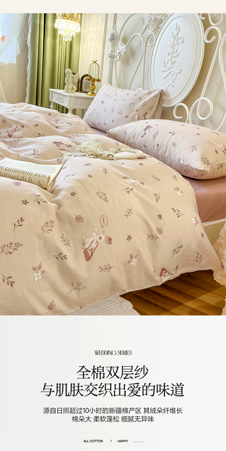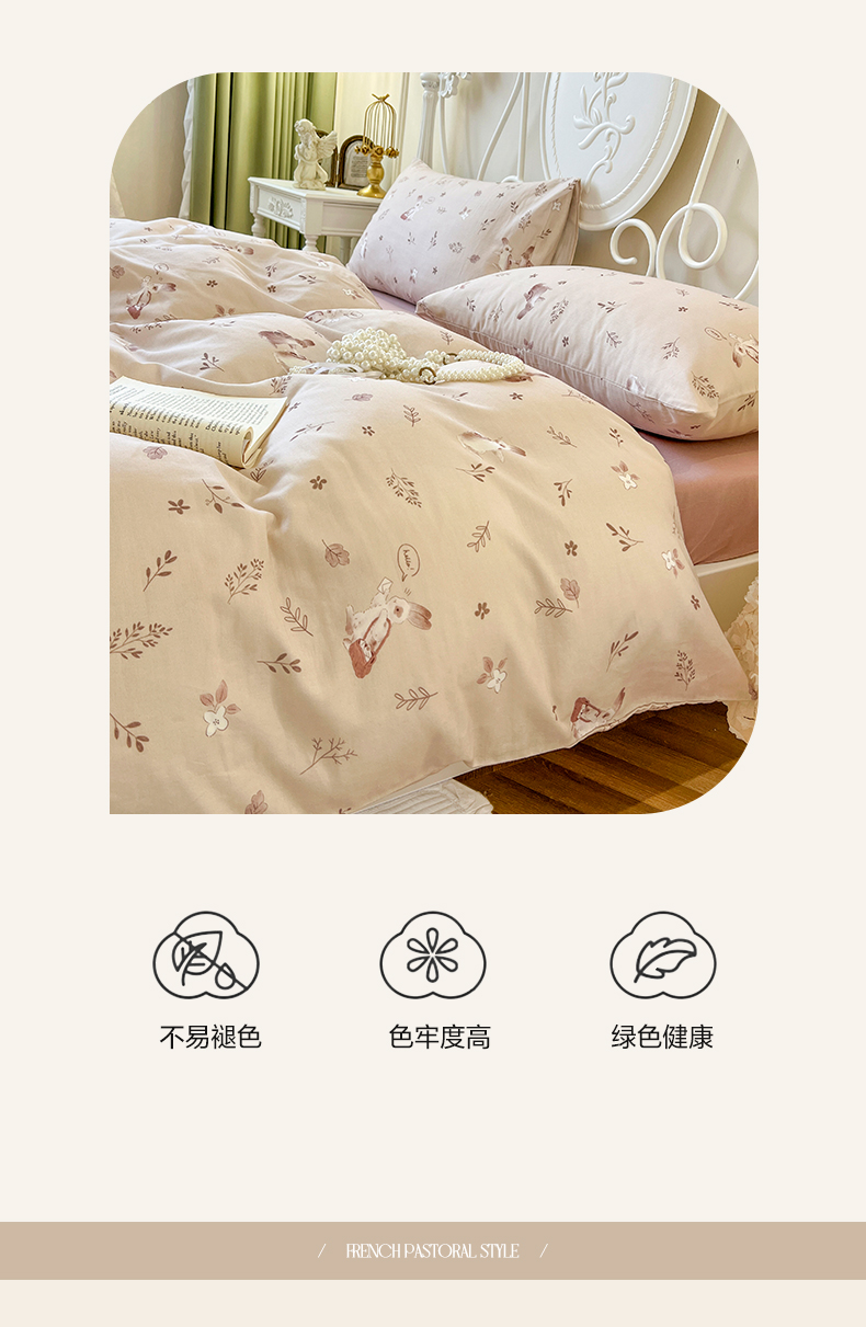 当前位置: 91家纺网 > 商品网购 > 床品套件 > 四件套 > 双层纱四件套 > 麒豆豆 2024款全棉双层纱四件套背包兔
