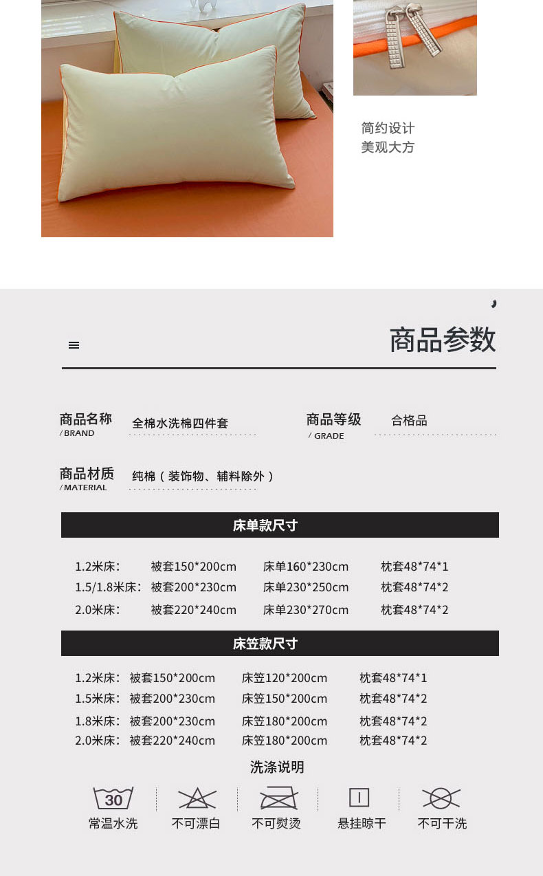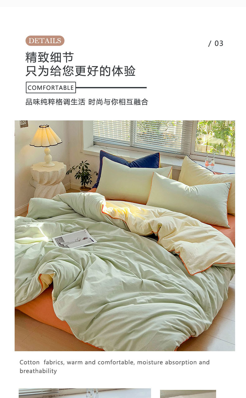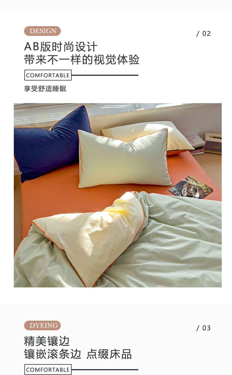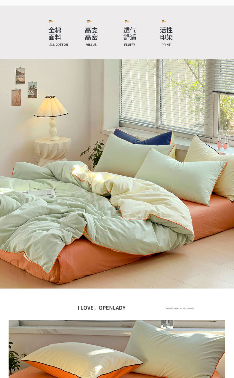 当前位置: 91家纺网 > 商品网购 > 床品套件 > 四件套 > 全棉普通四件套 > 梦家居 2024新款全棉水洗棉纯色滚边四件套 浅绿+甜橙