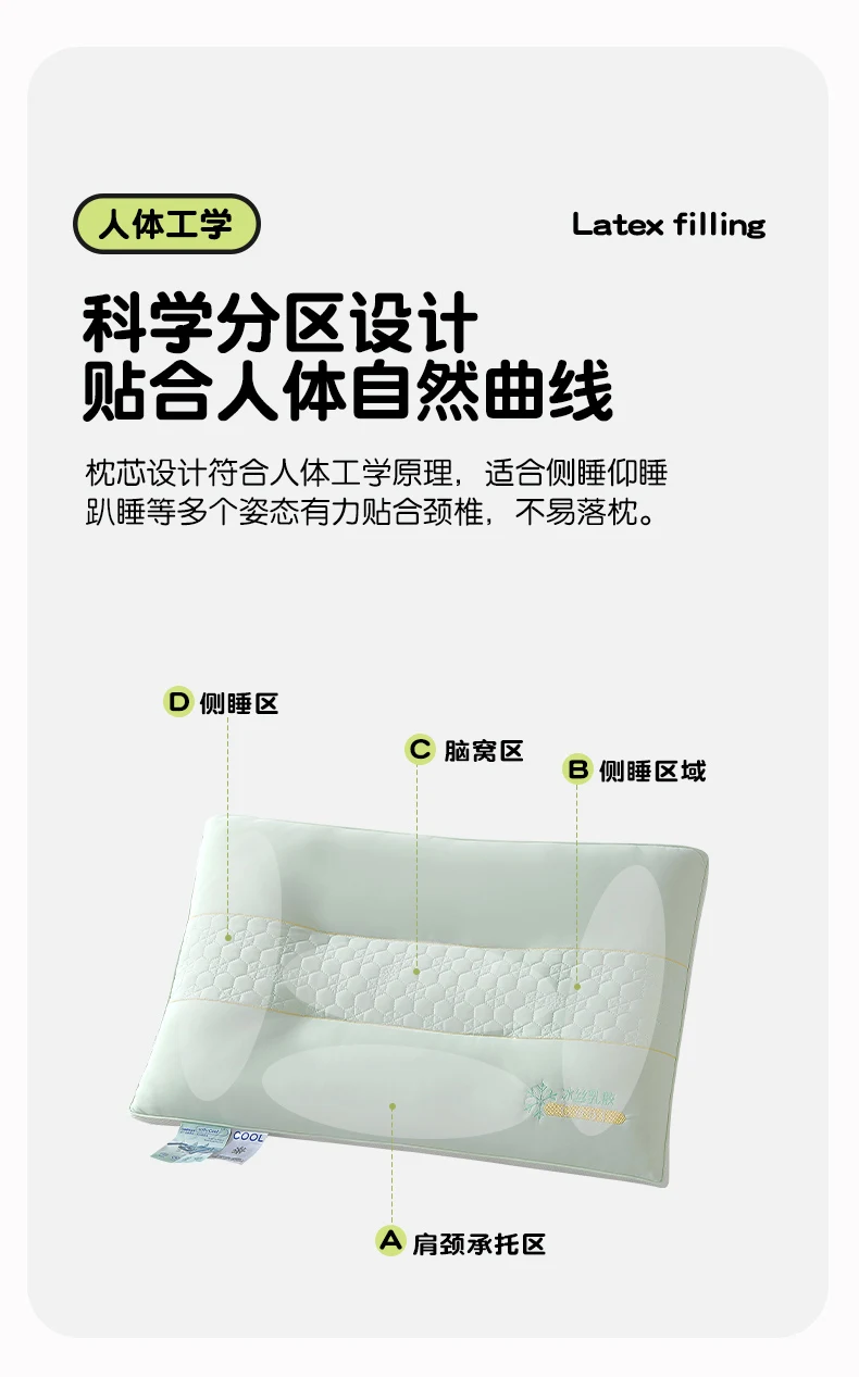 商品名称:(总)佳尚枕芯 2025新款夏季凉感冰丝乳胶护颈椎枕头家用定型保健枕头枕芯