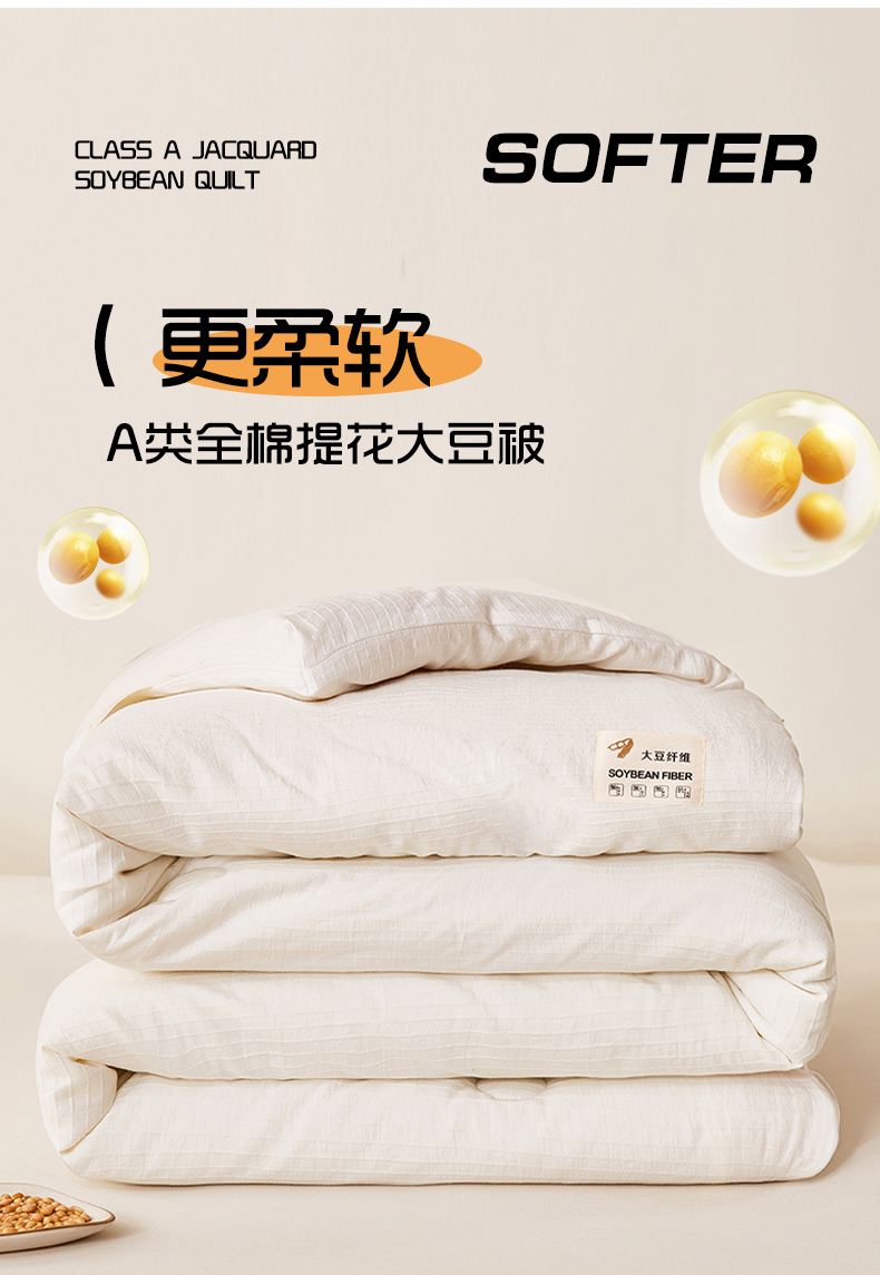 大世界被王 2024新款A类全棉提花大豆被 原棉白