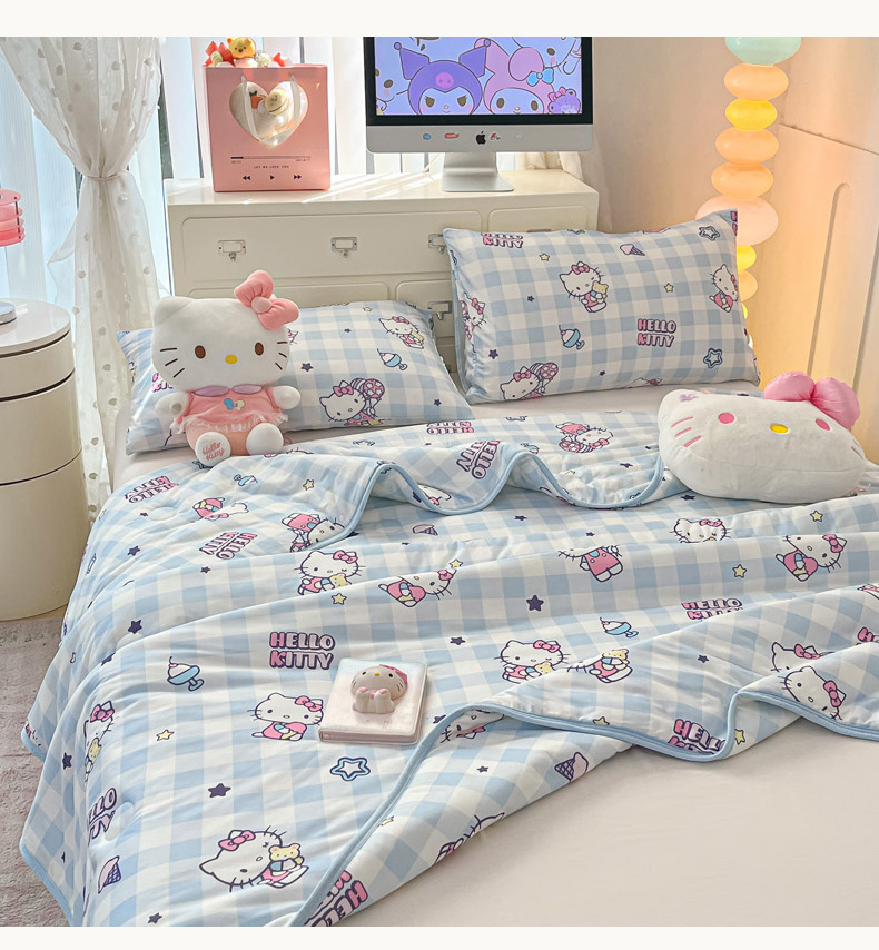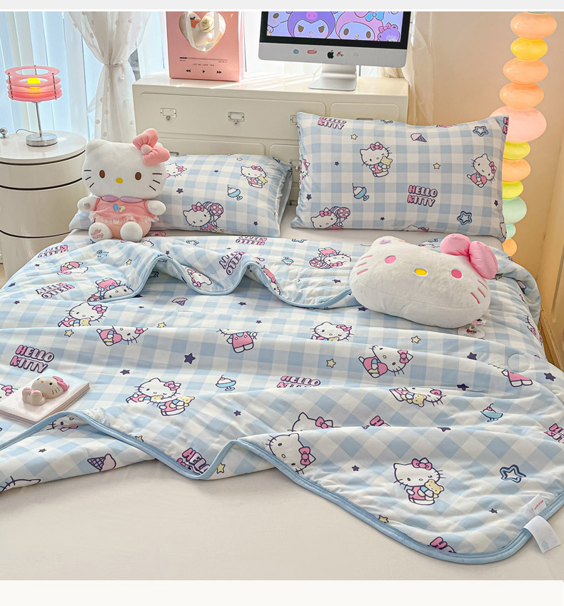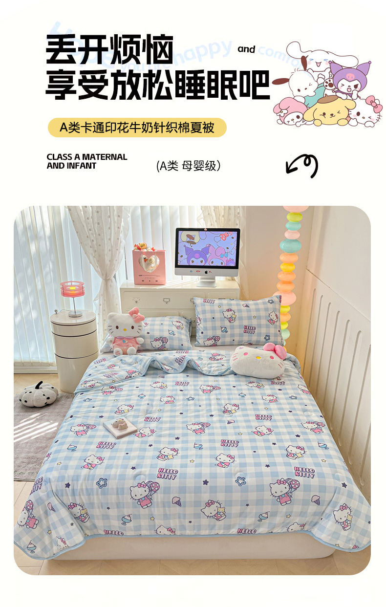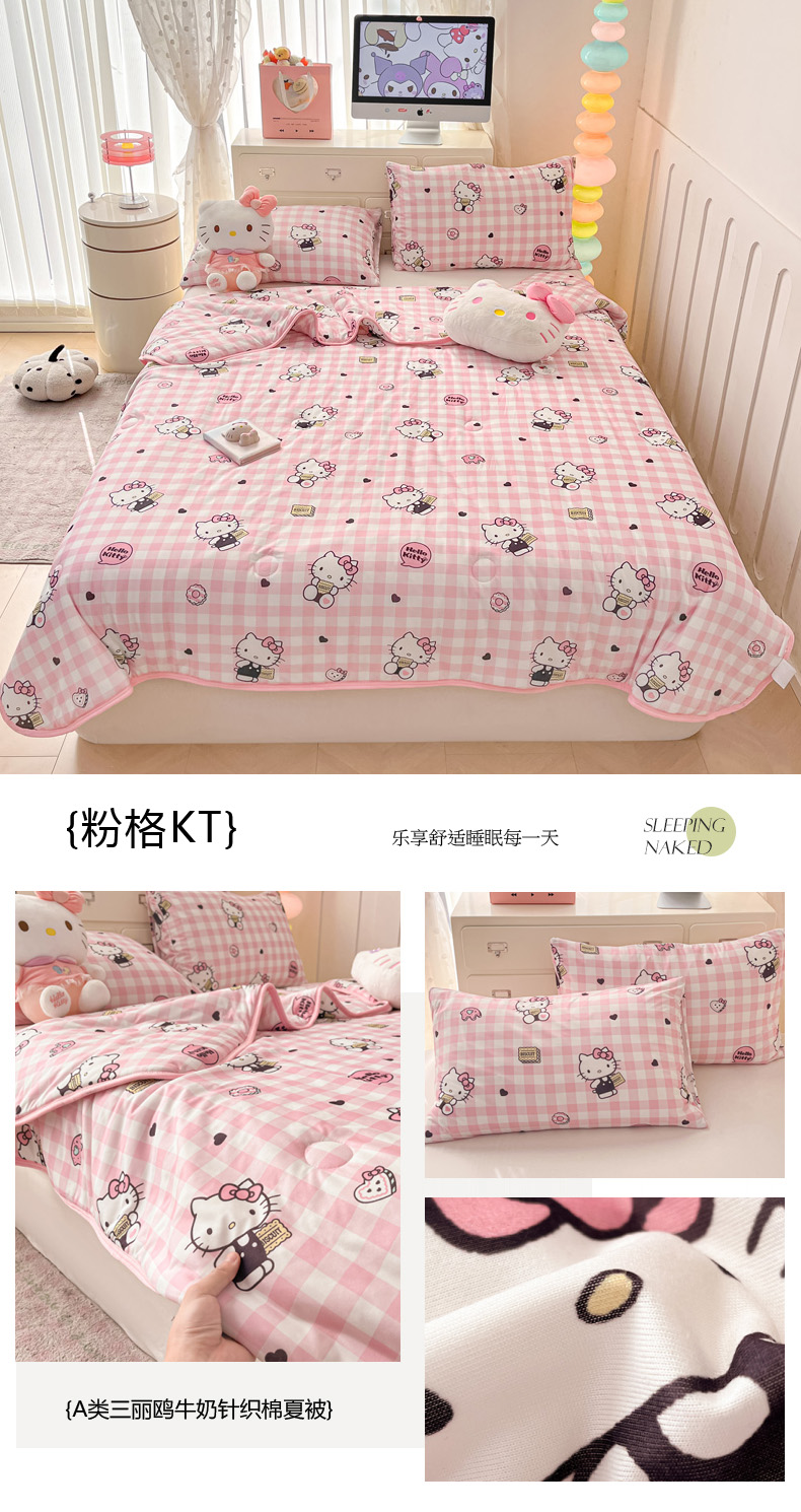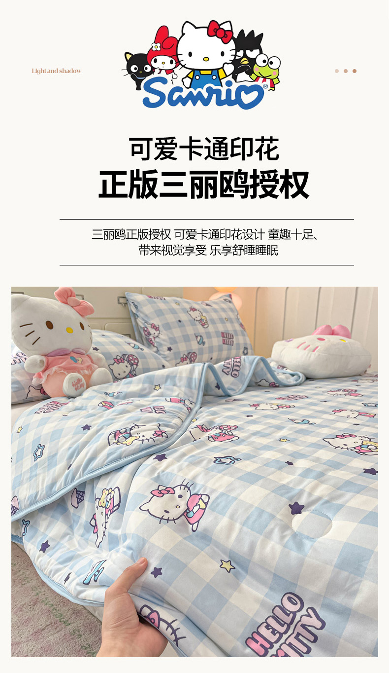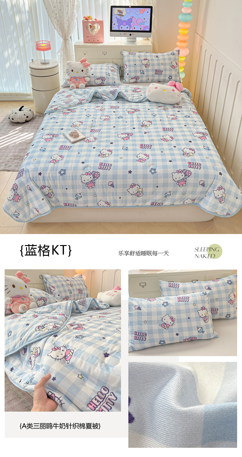 商品名称:暮思家居 2025新款正版授权三丽鸥A类牛奶针织棉夏被子被芯 针织棉-蓝格KT