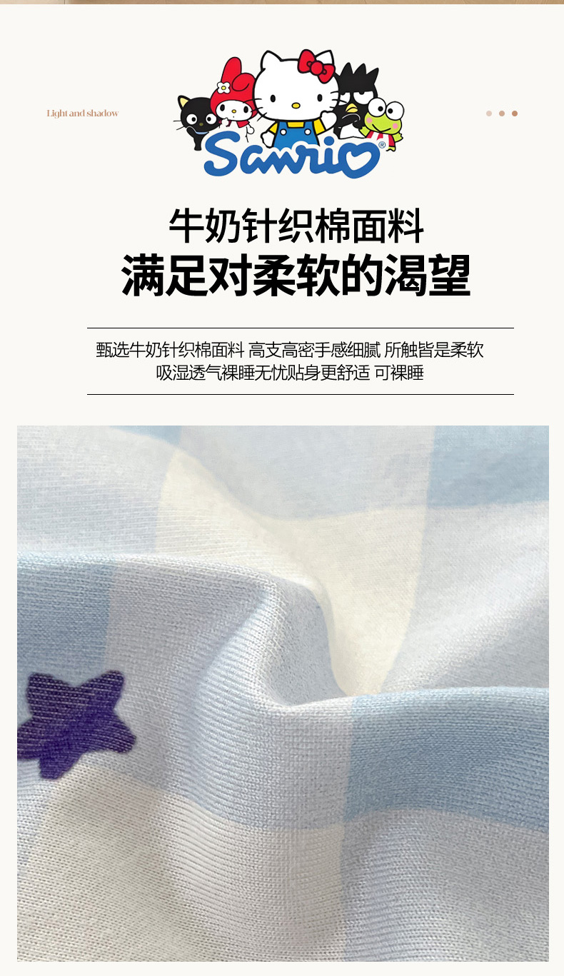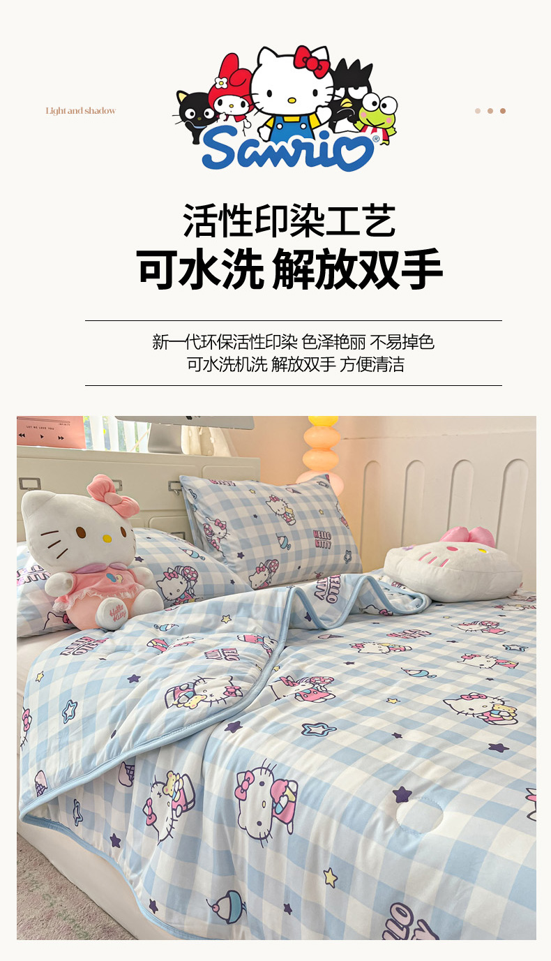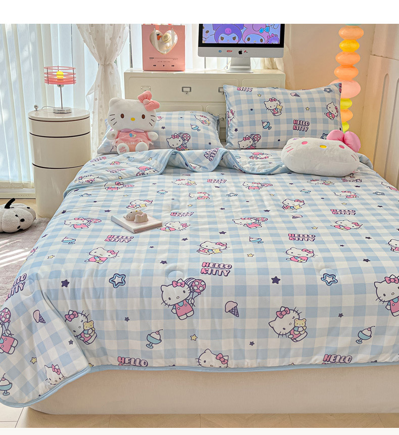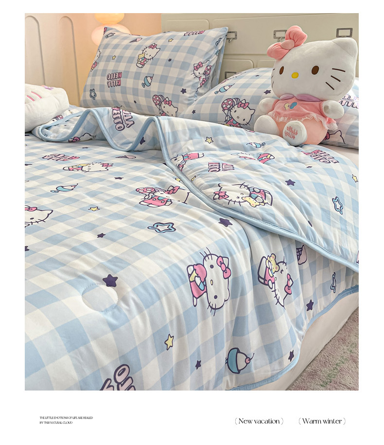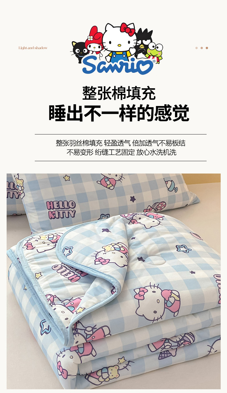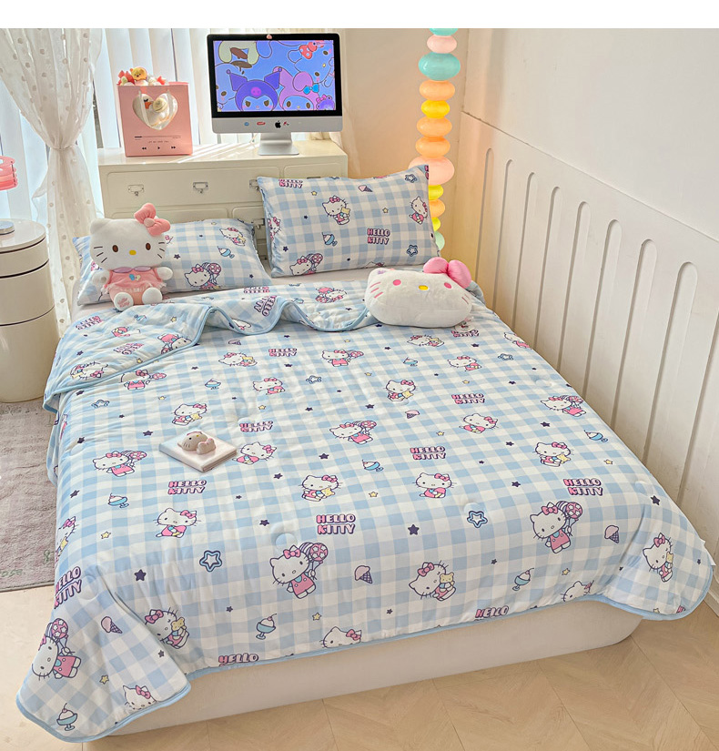 商品名称:暮思家居 2025新款正版授权三丽鸥A类牛奶针织棉夏被子被芯 针织棉-蓝格KT