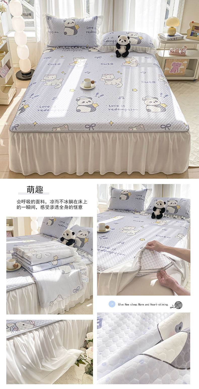 • 91家纺网 家纺一手货源 找家纺 康纳利2025新款A类冰豆豆床裙款凉席夏被四件套凉感丝空调被送买家秀 萌趣