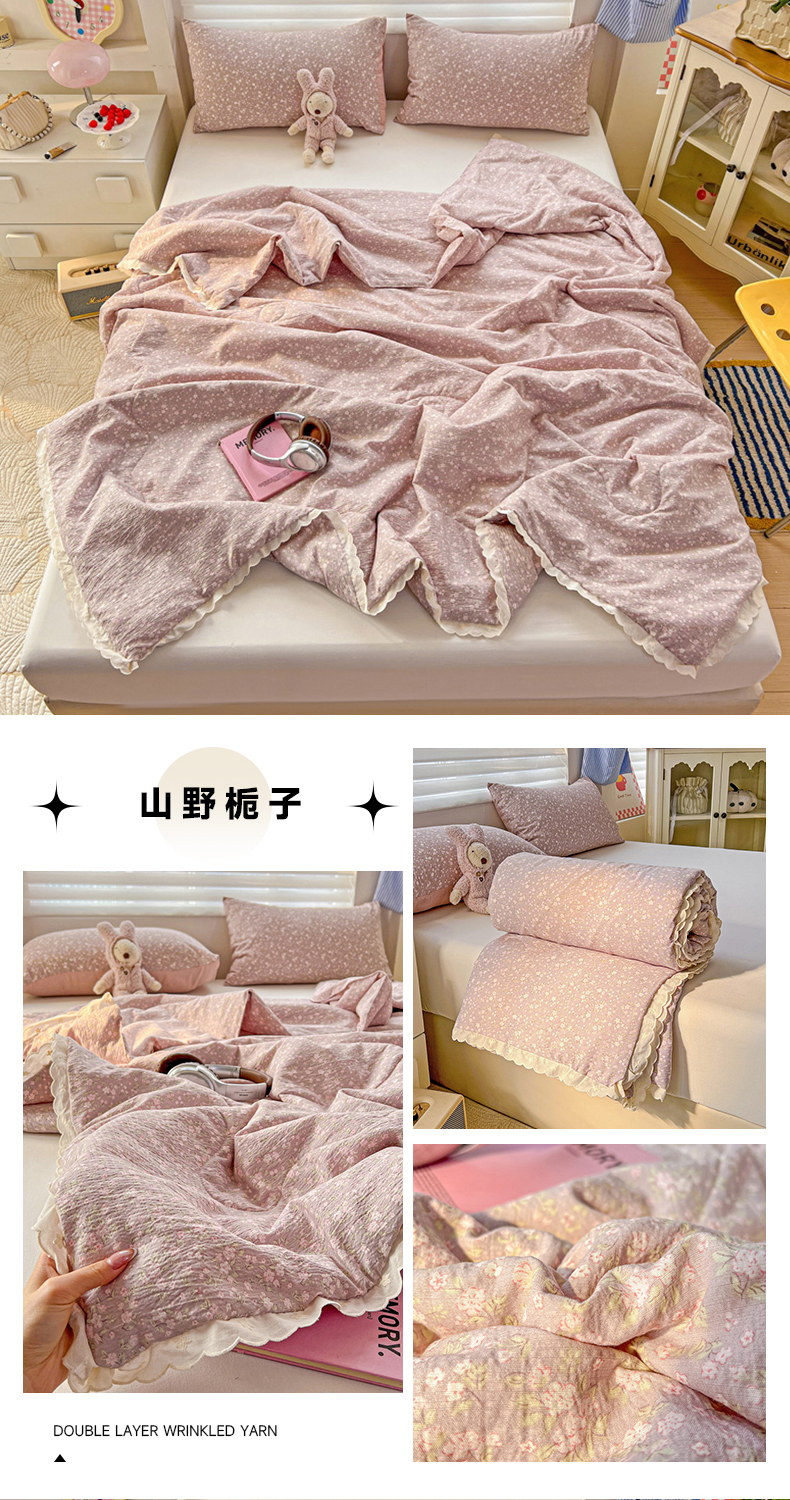 一比一家纺 2025新款云感皱皱双层纱全棉纯棉花边单夏被夏凉被空调被系列 山野栀子