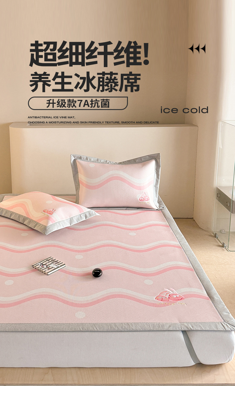 商品名称:Sweet dreams甜梦 2025新款母婴级7A抗菌养生冰藤席席子凉席-影棚2床席款 波浪调皮兔
