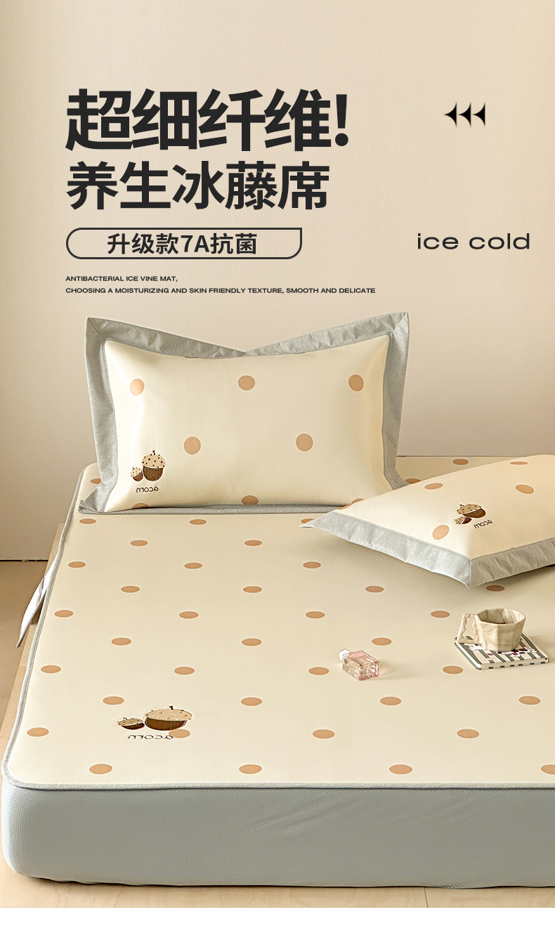 商品名称:Sweet dreams甜梦 2025新款母婴级7A抗菌养生冰藤席席子凉席-影棚2床笠款 小橡子
