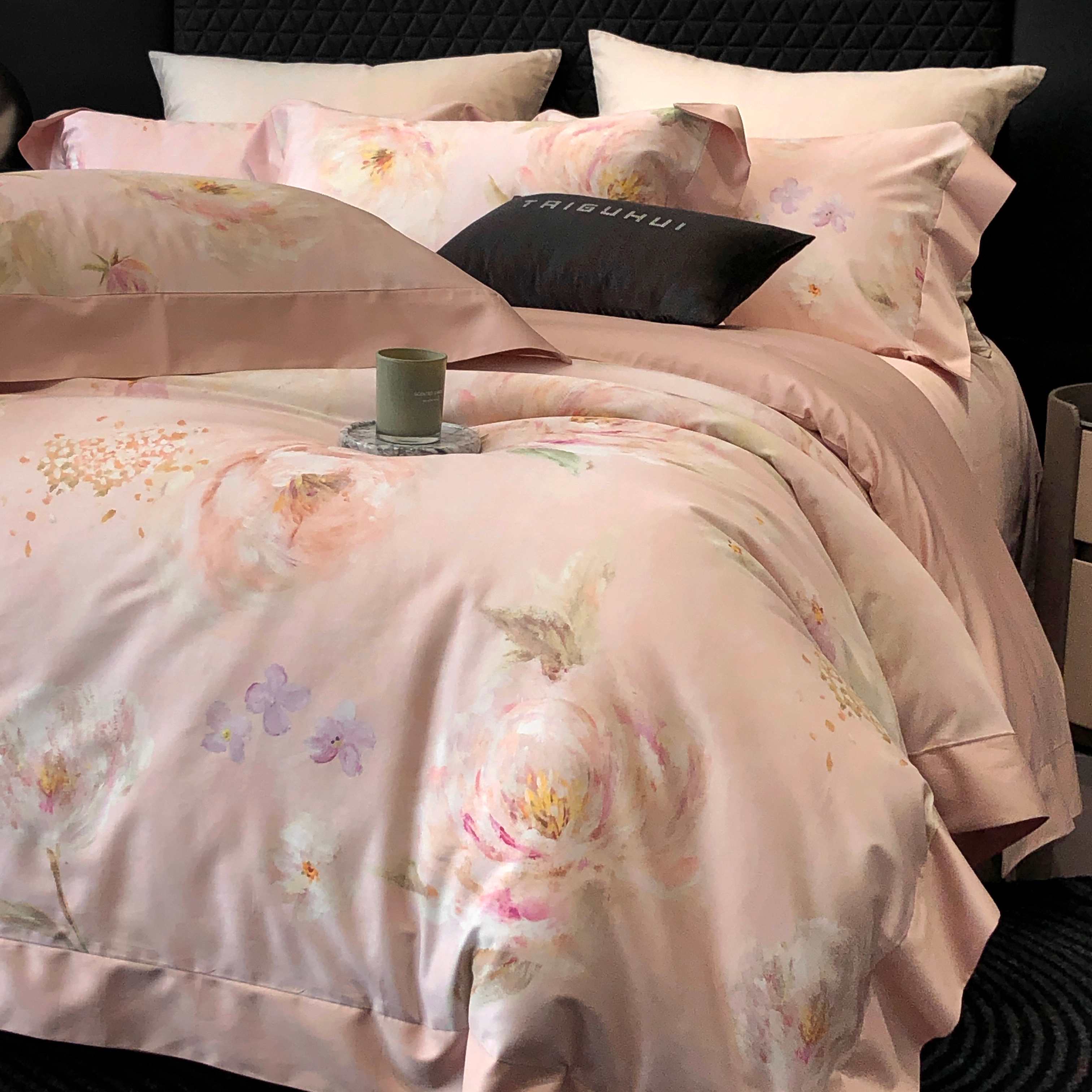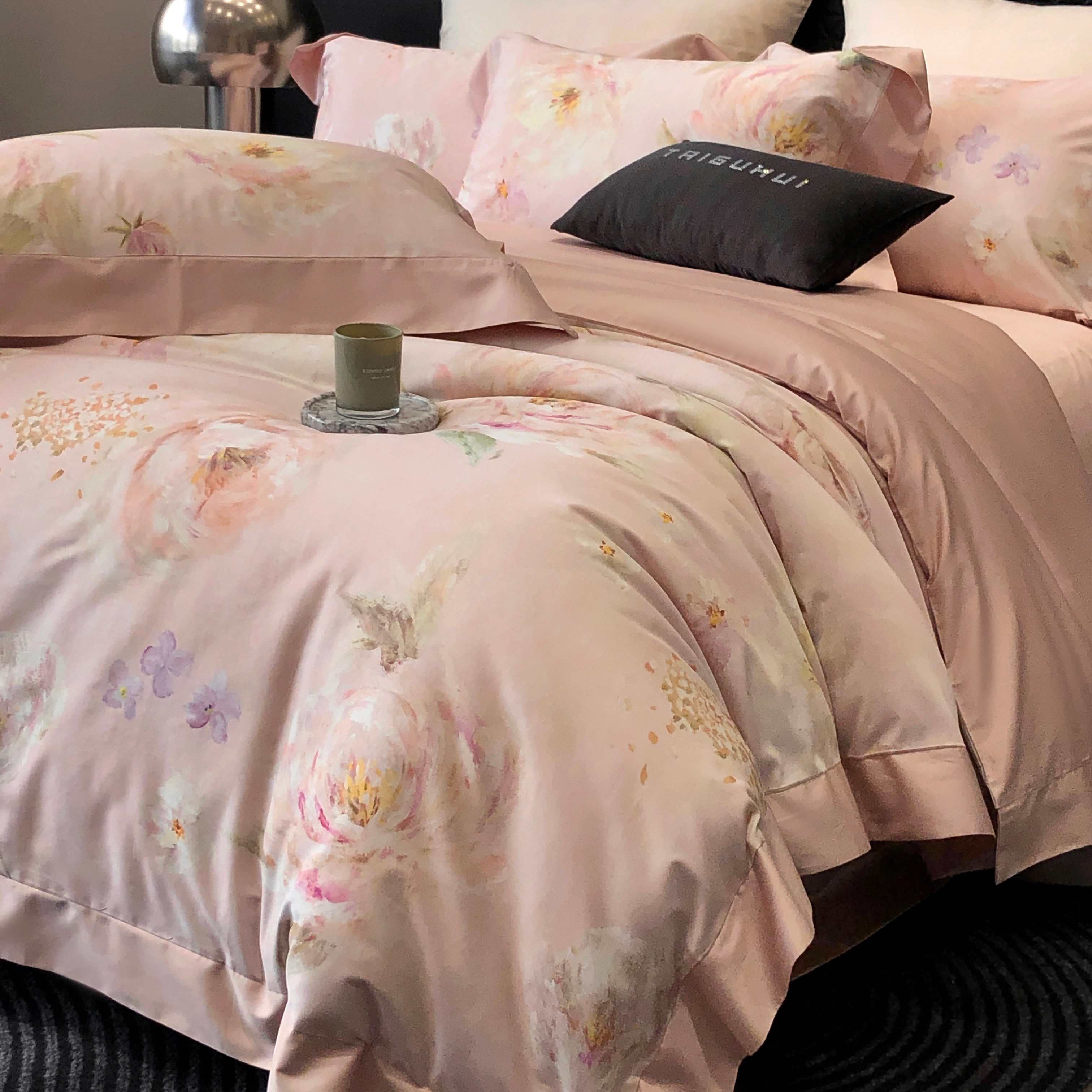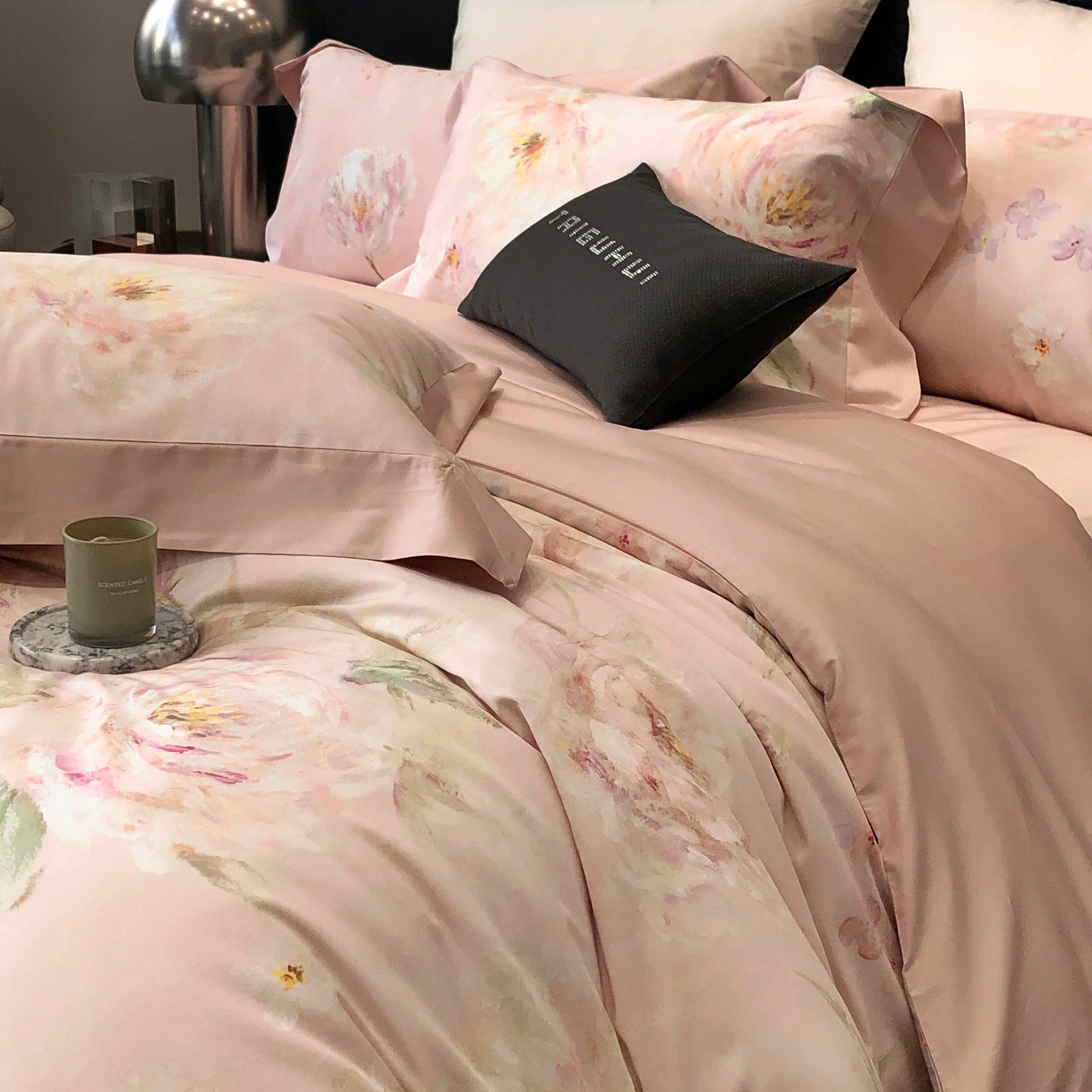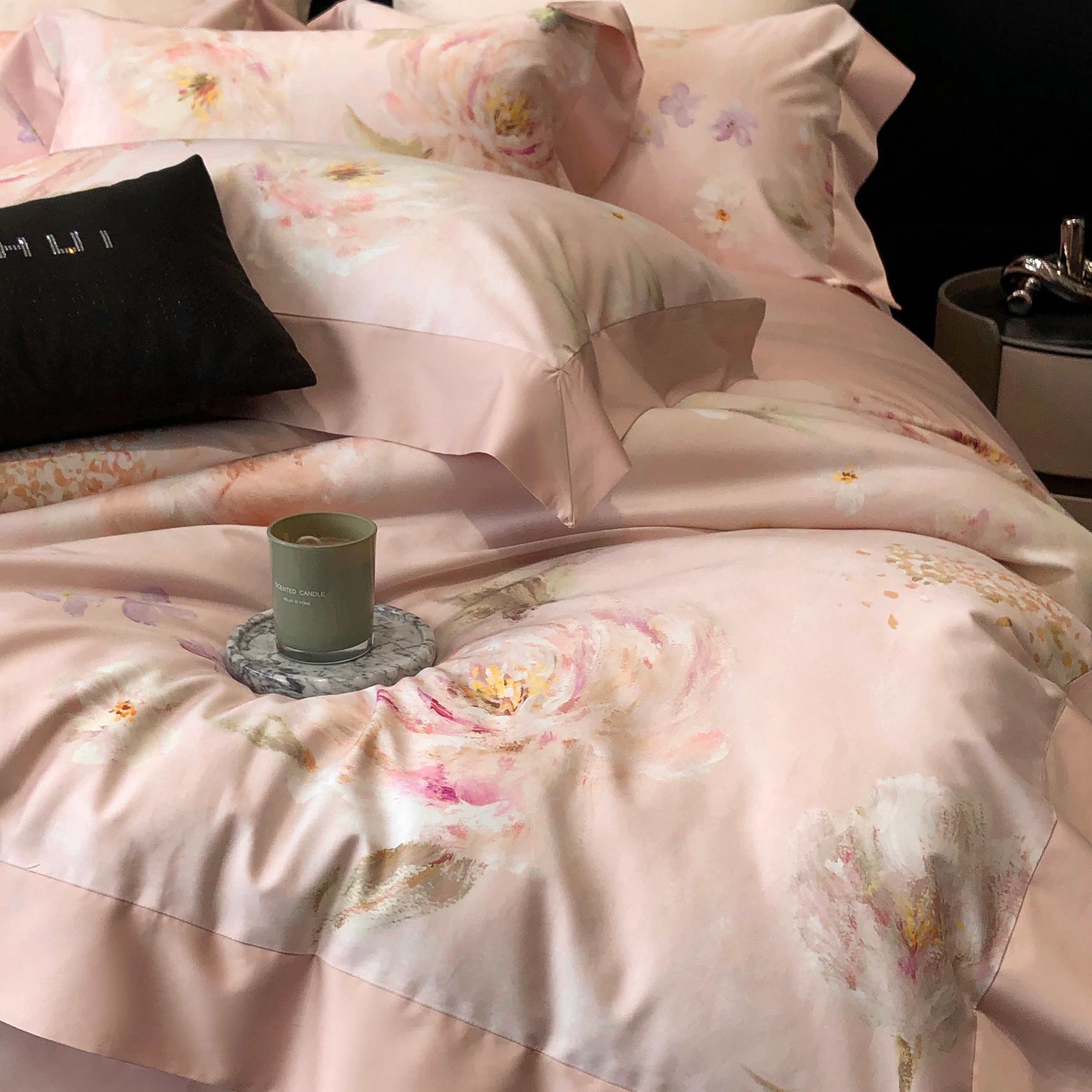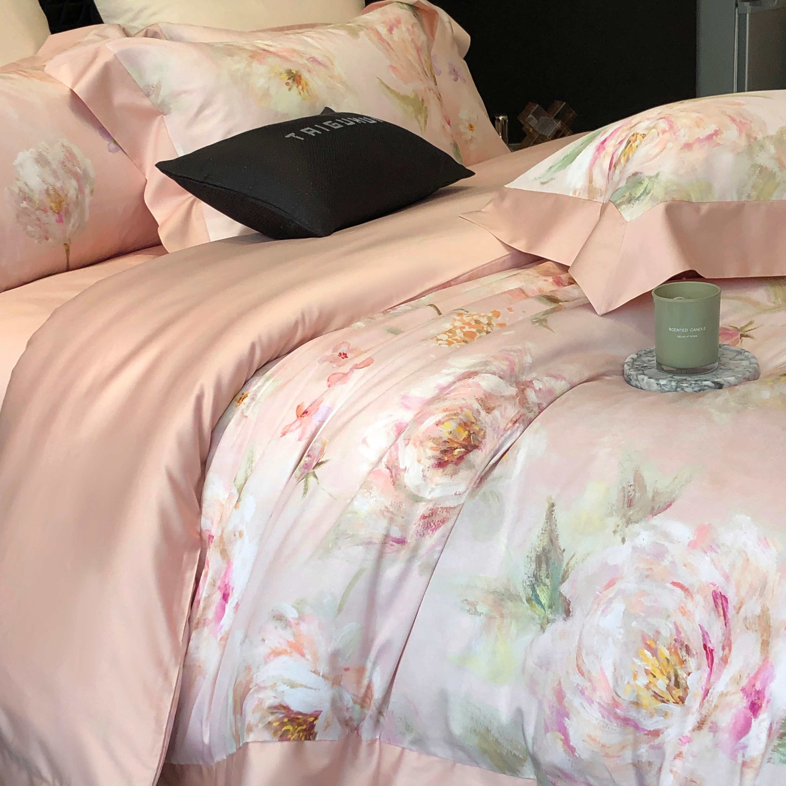 2025年高支高密长绒棉专版活性数码印花系列四件套【券后控价——券后不低于378】 莉安娜-粉