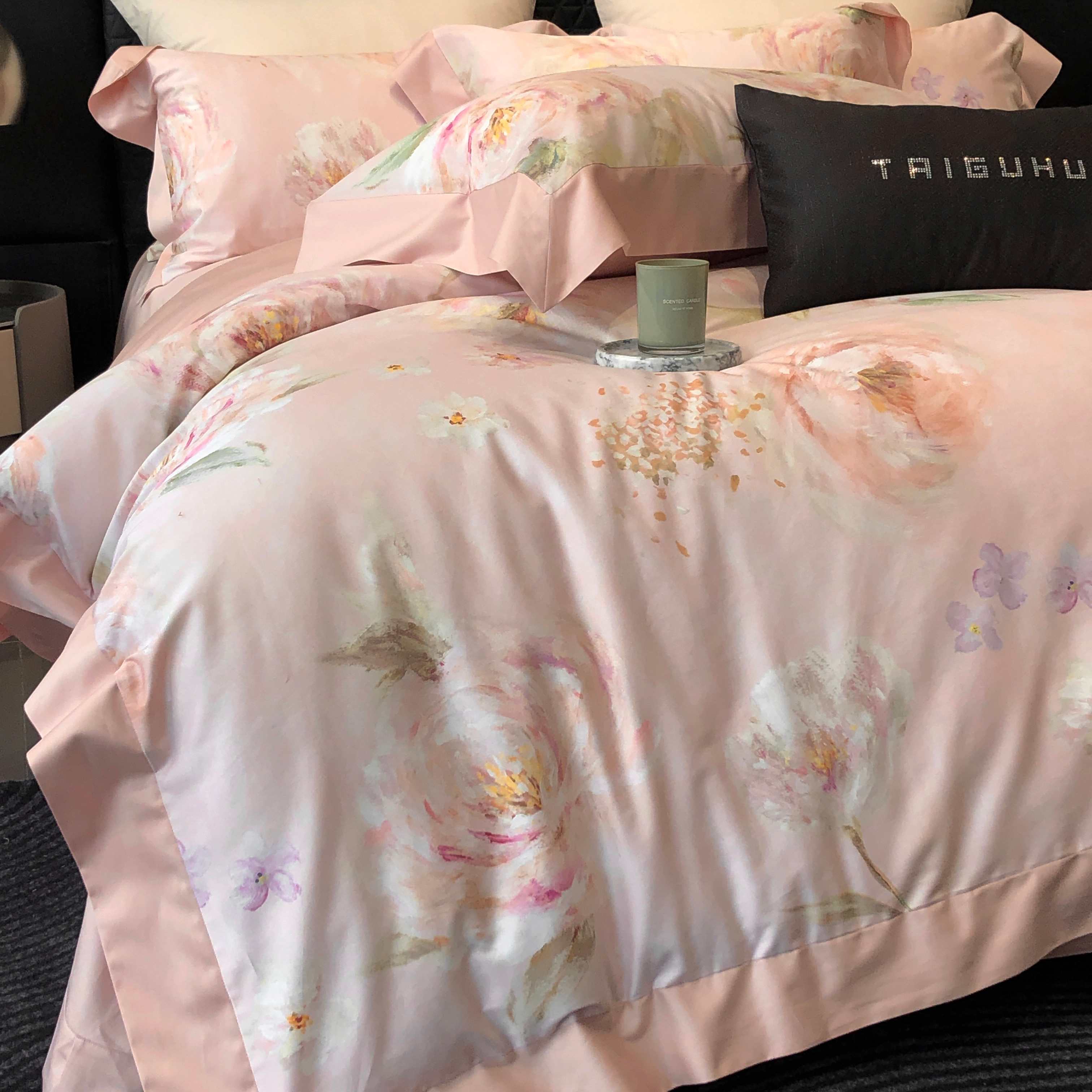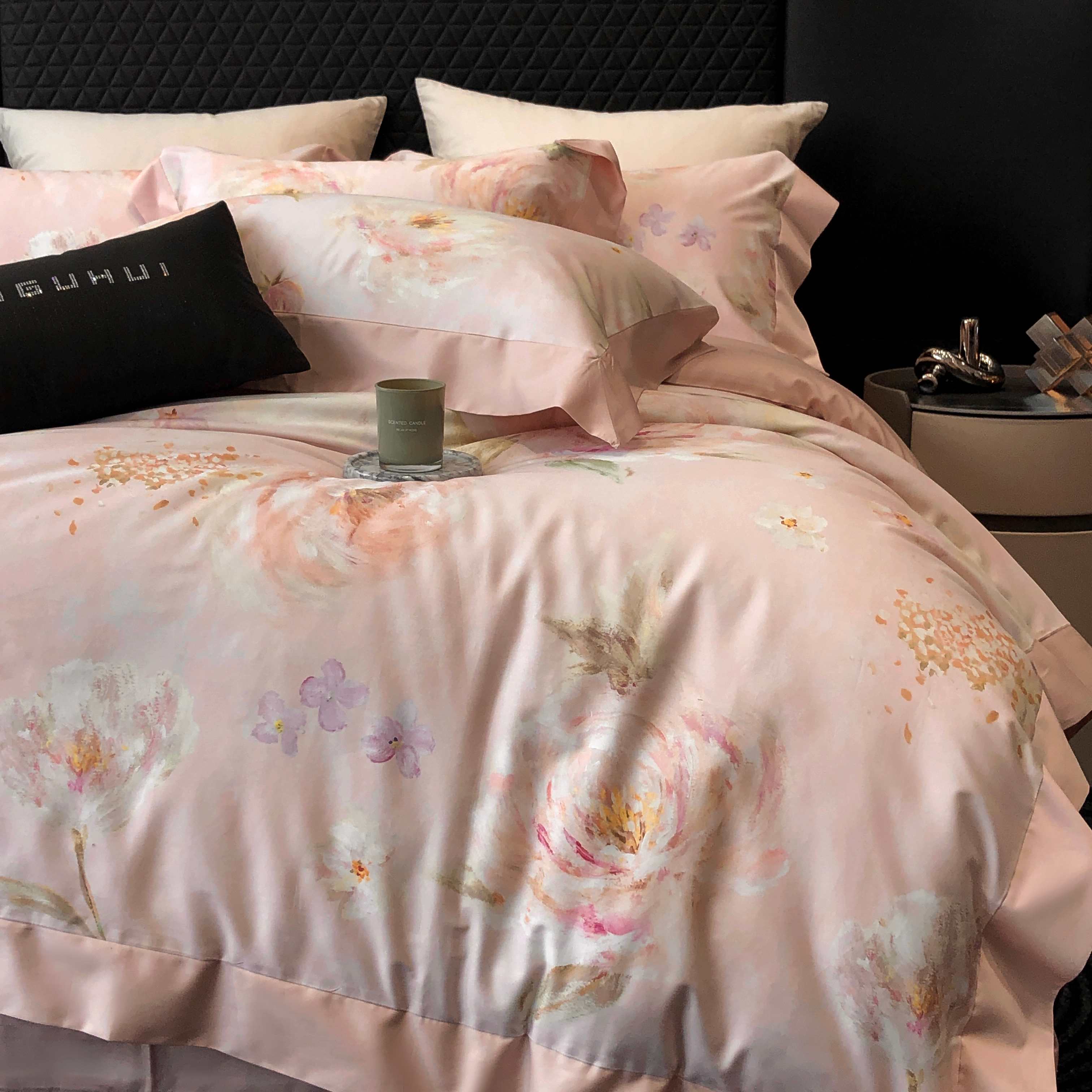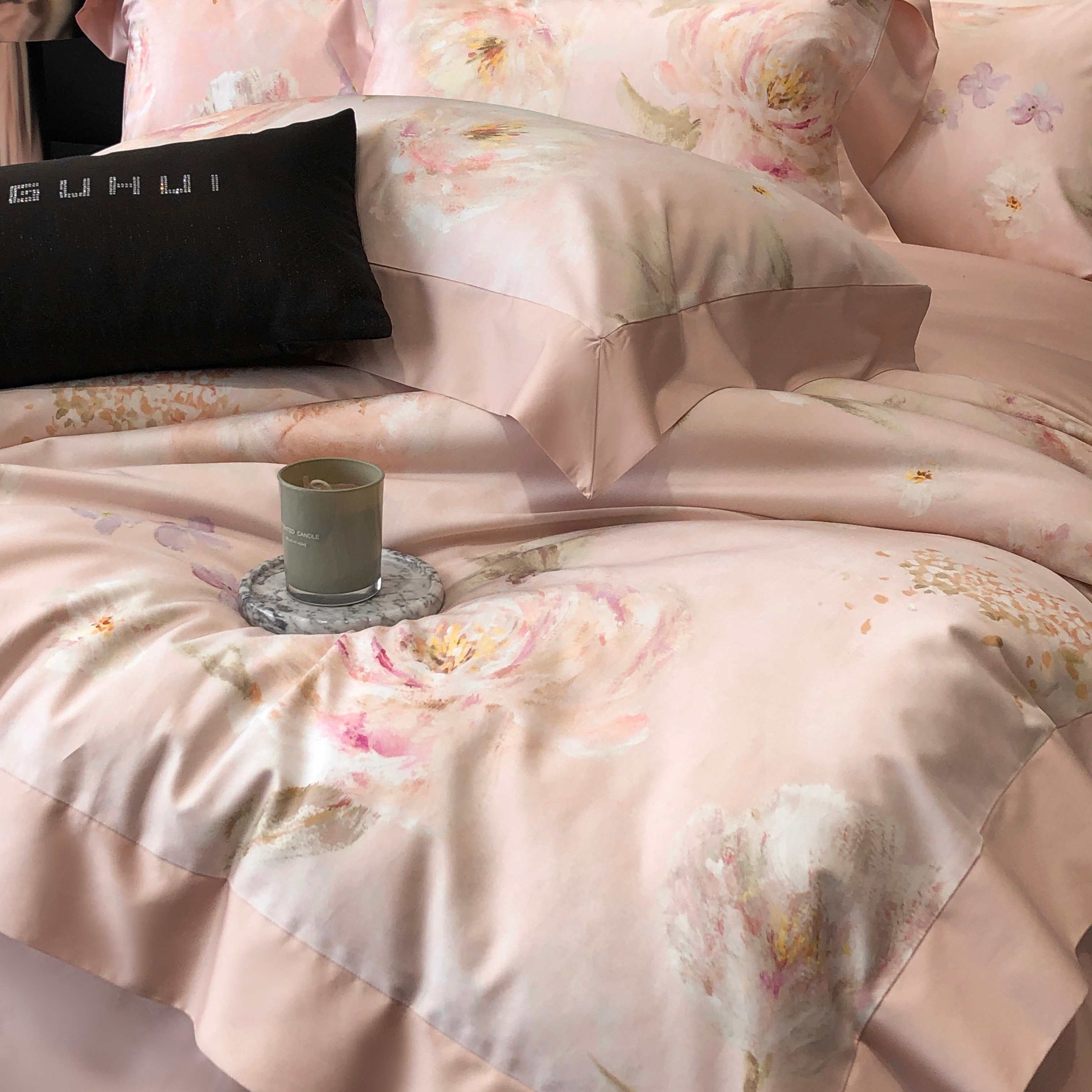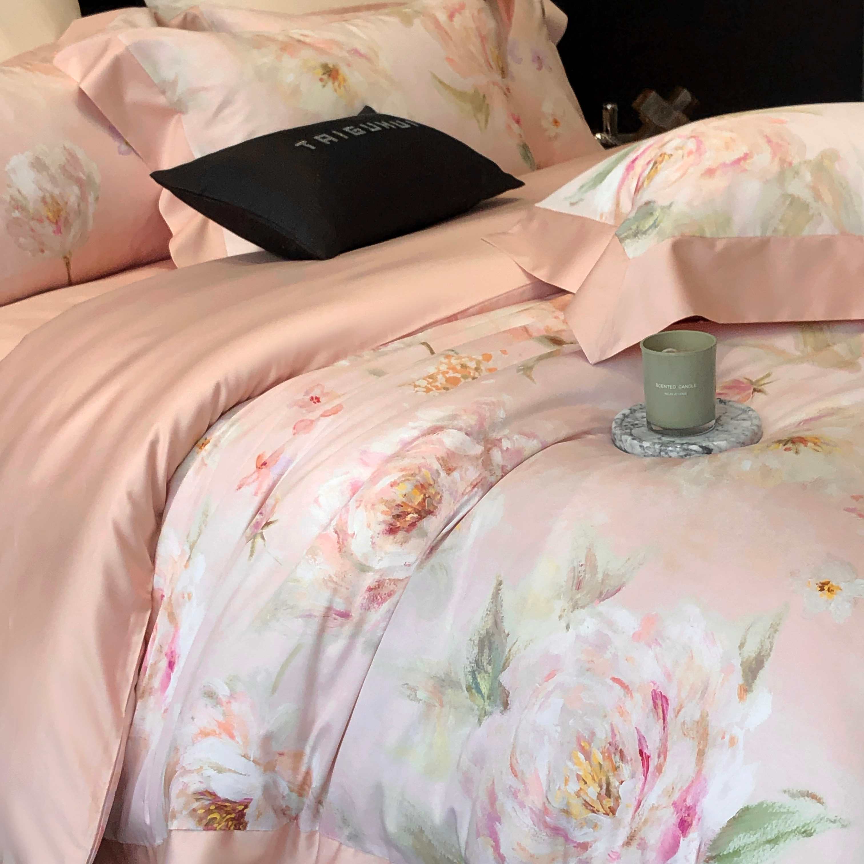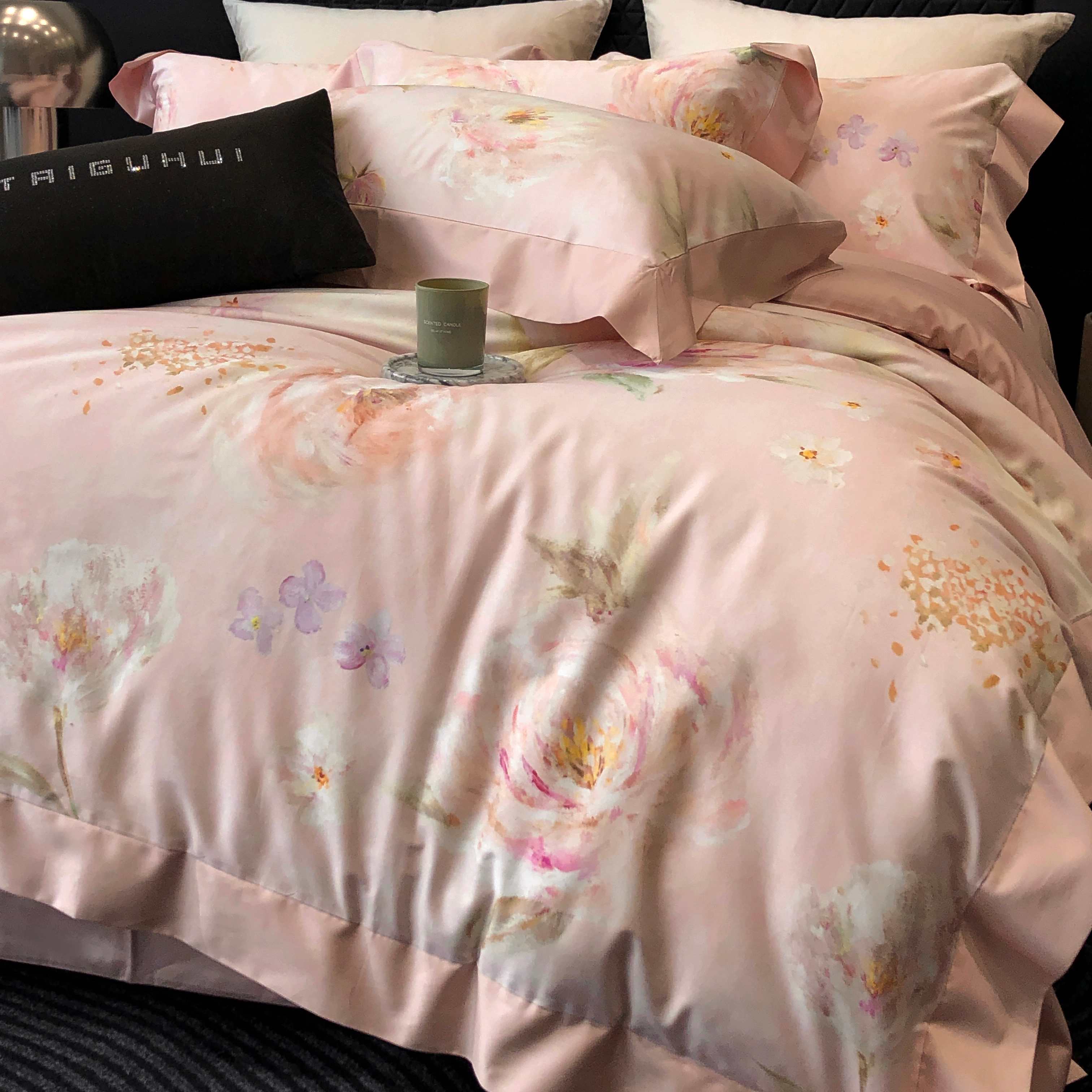 2025年高支高密长绒棉专版活性数码印花系列四件套【券后控价——券后不低于378】 莉安娜-粉