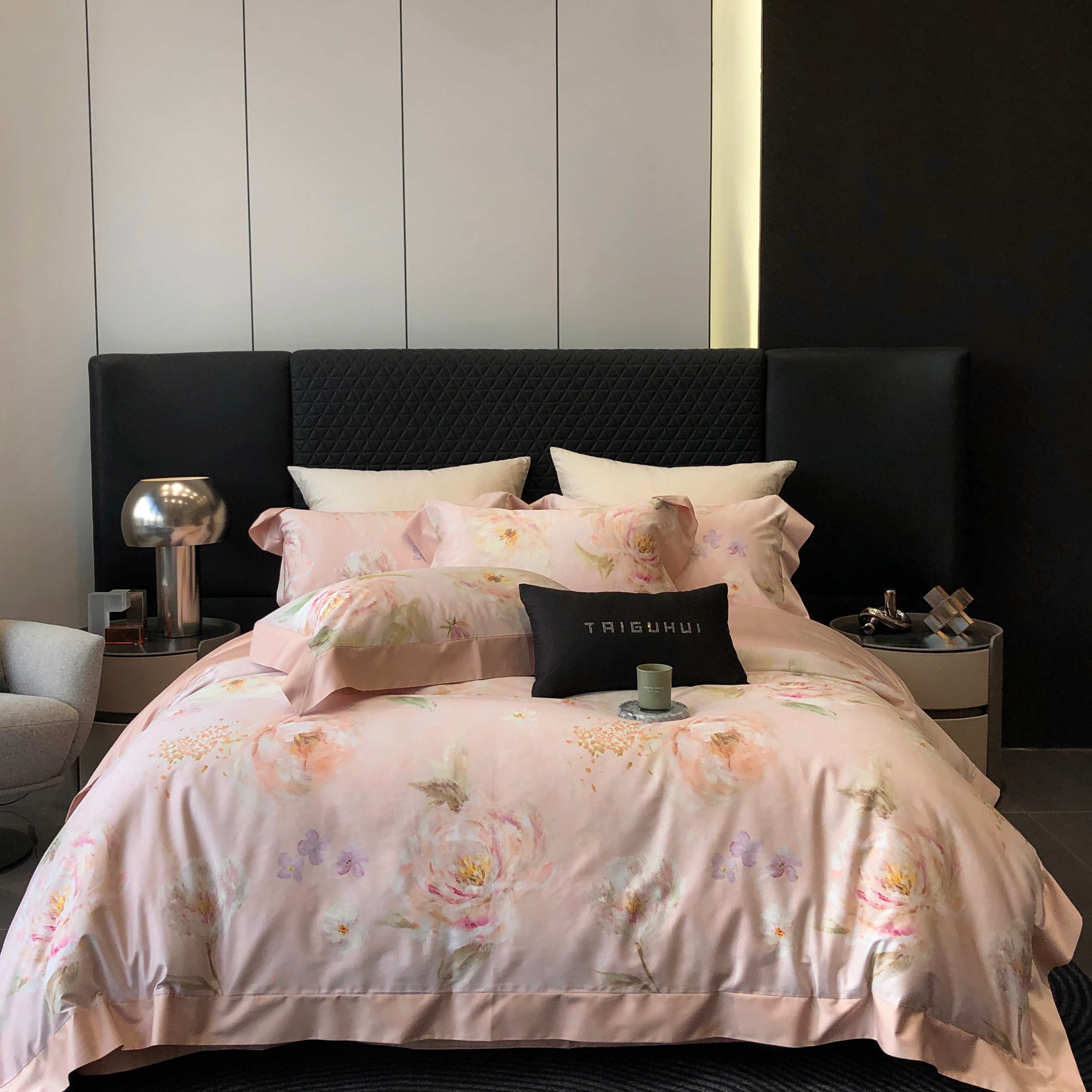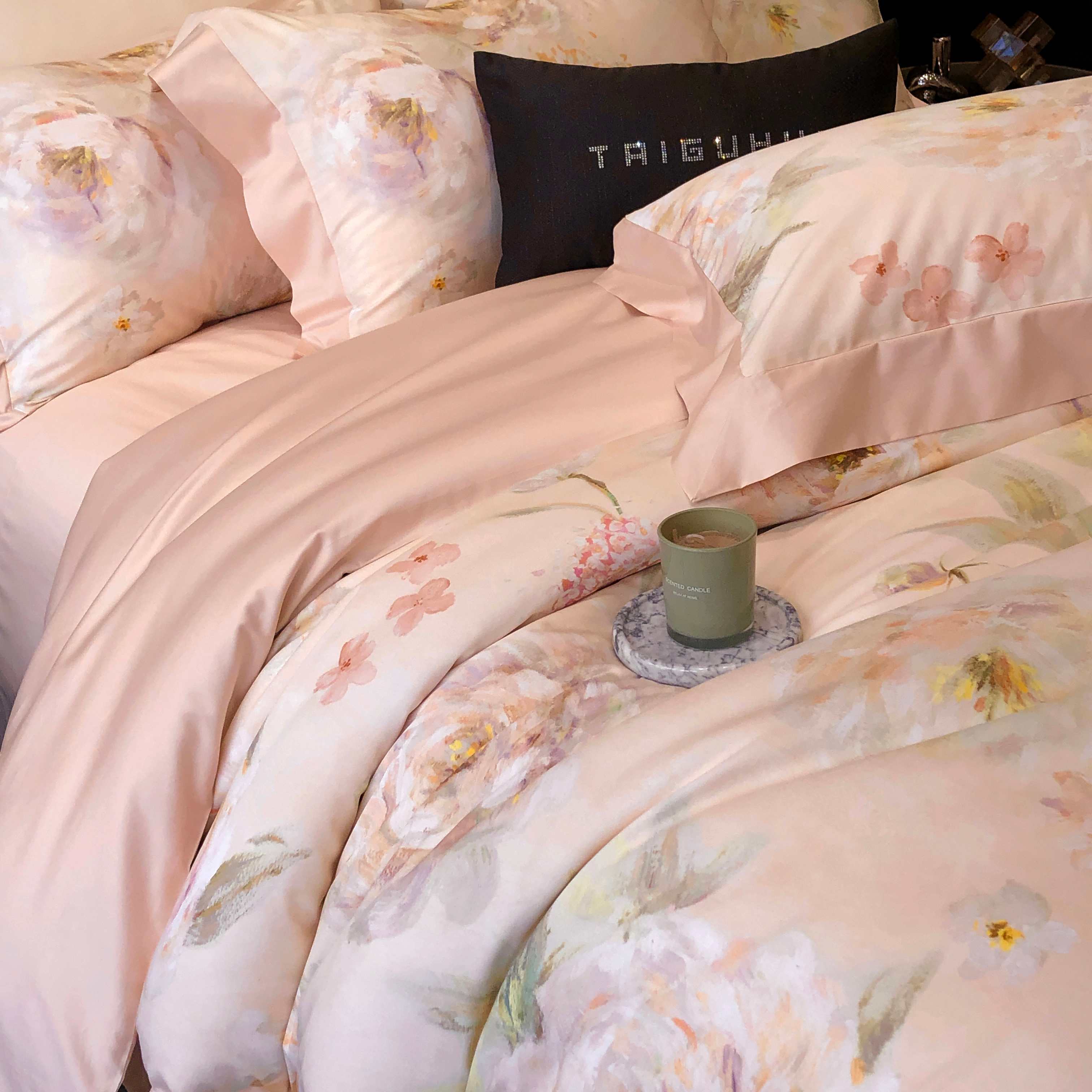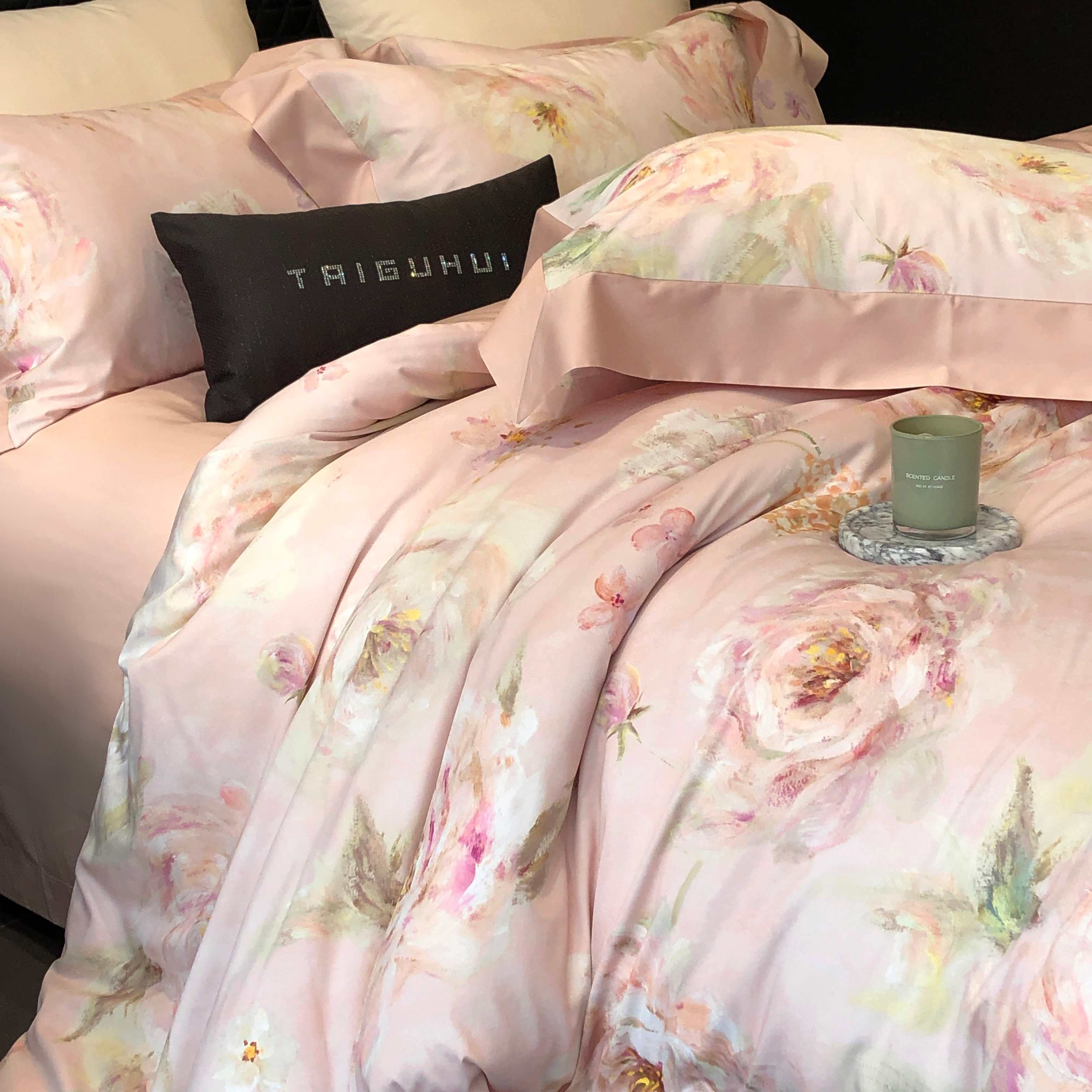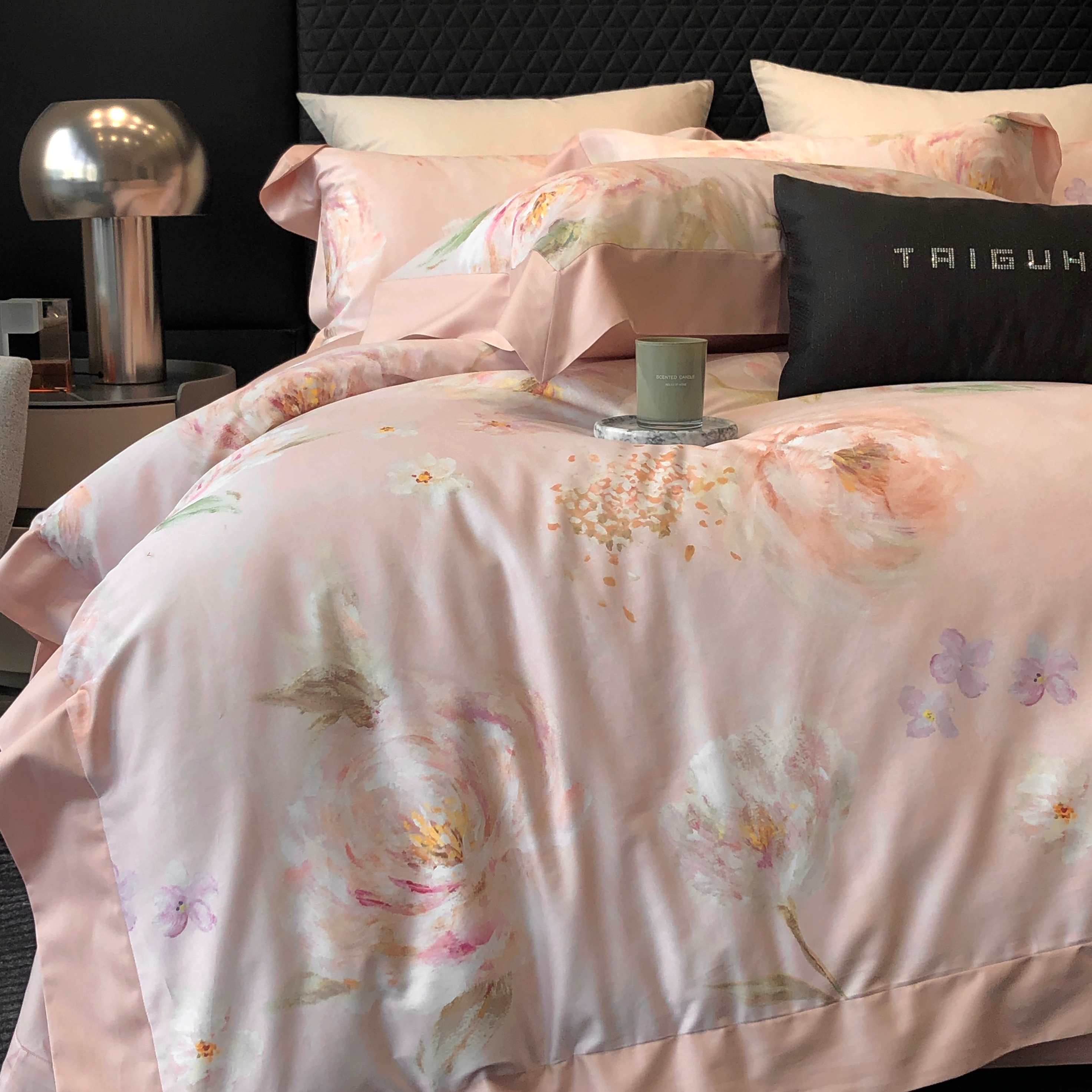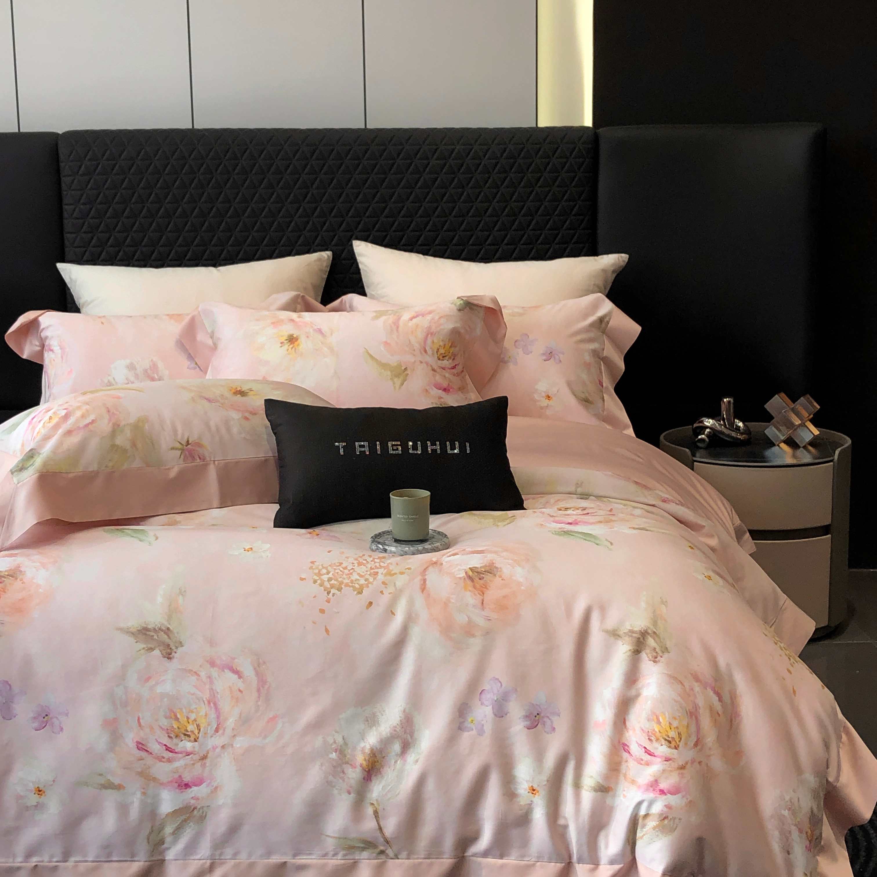 2025年高支高密长绒棉专版活性数码印花系列四件套【券后控价——券后不低于378】 莉安娜-粉