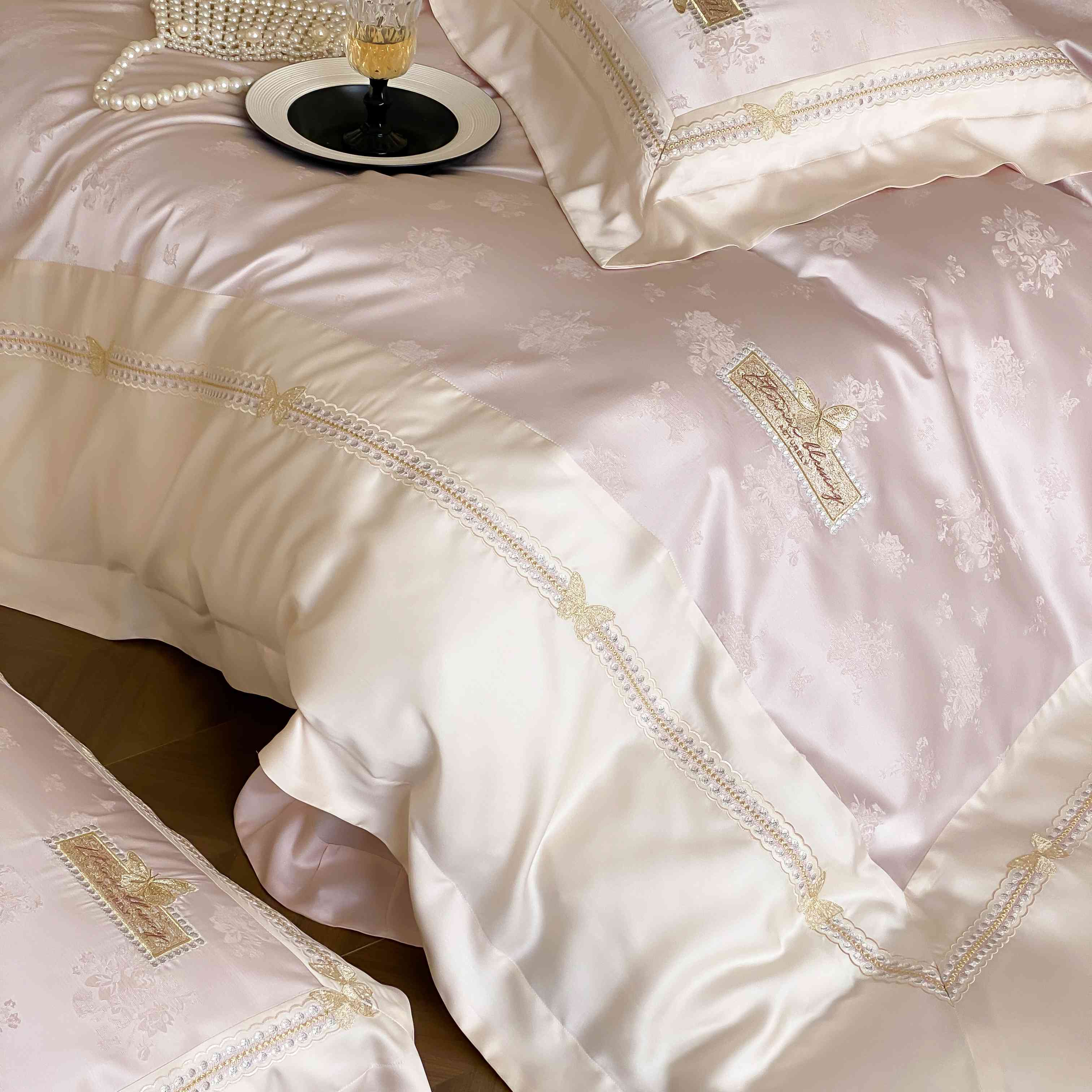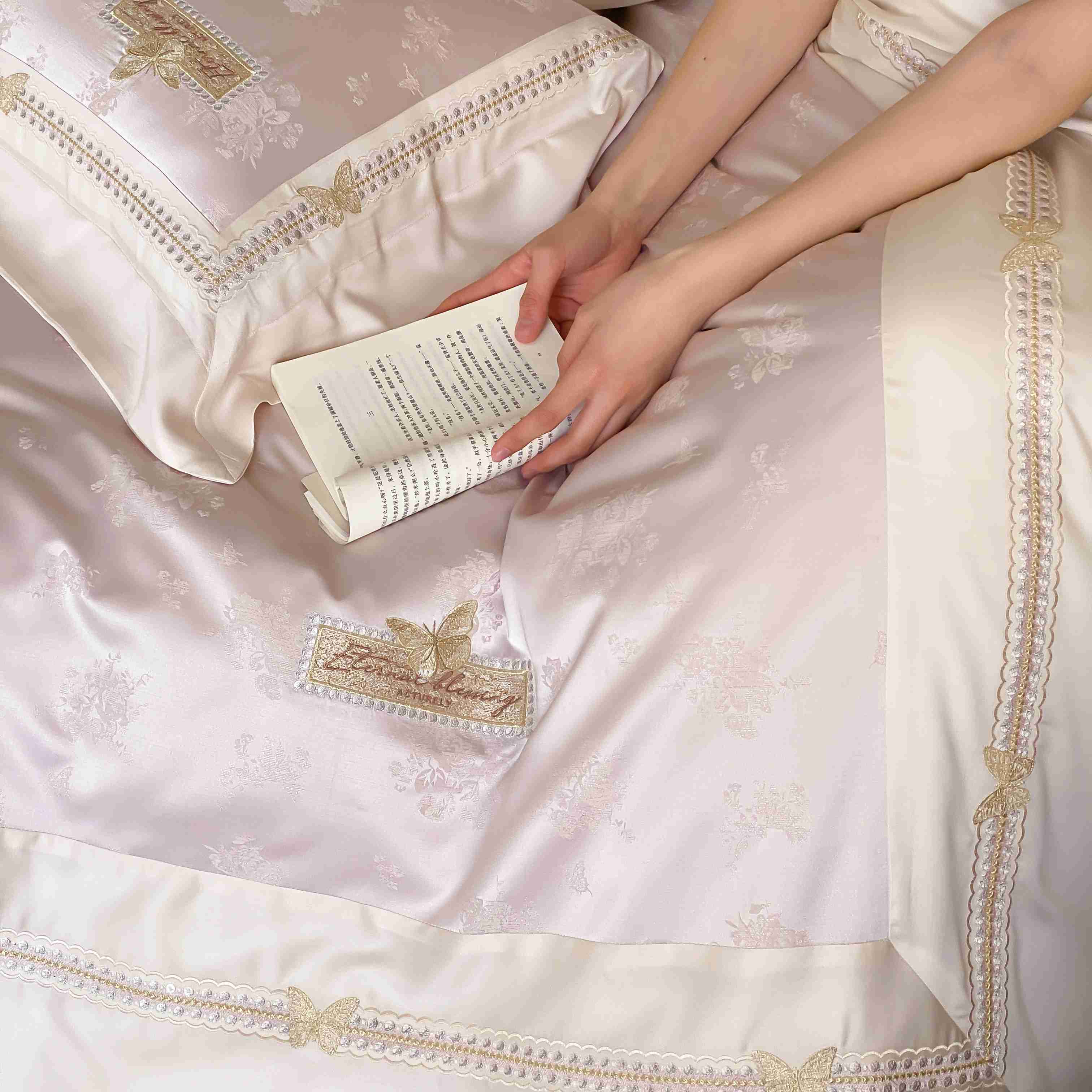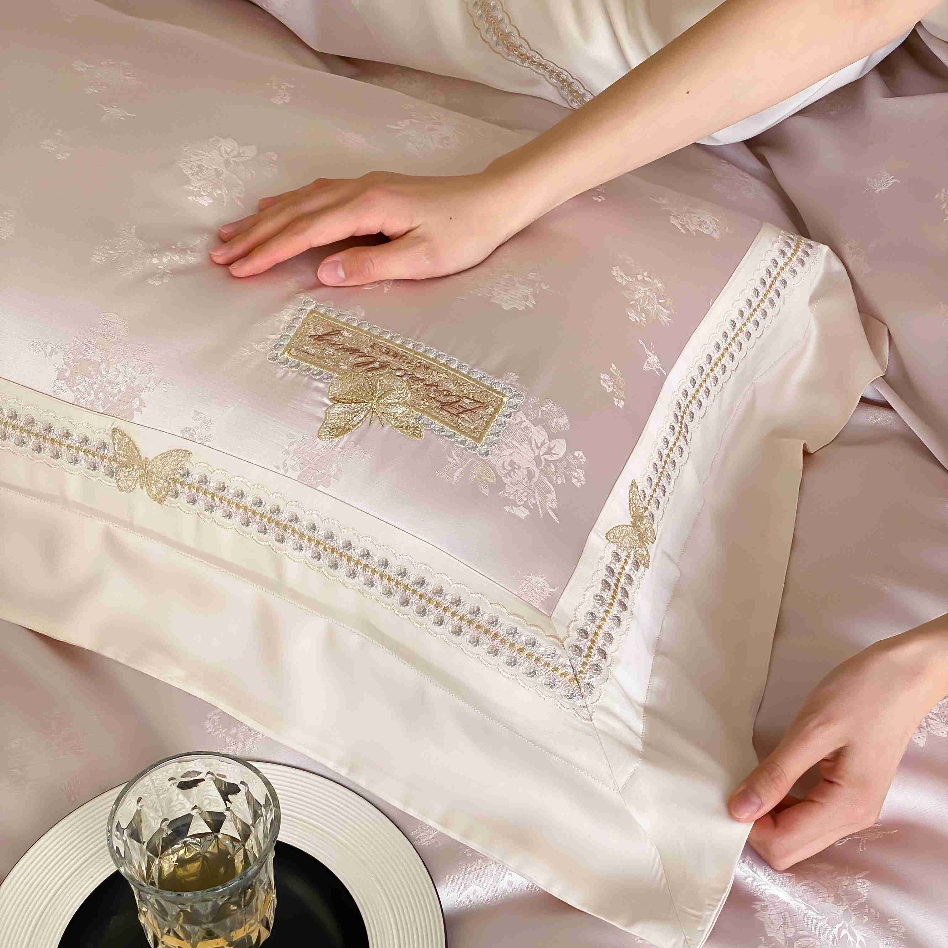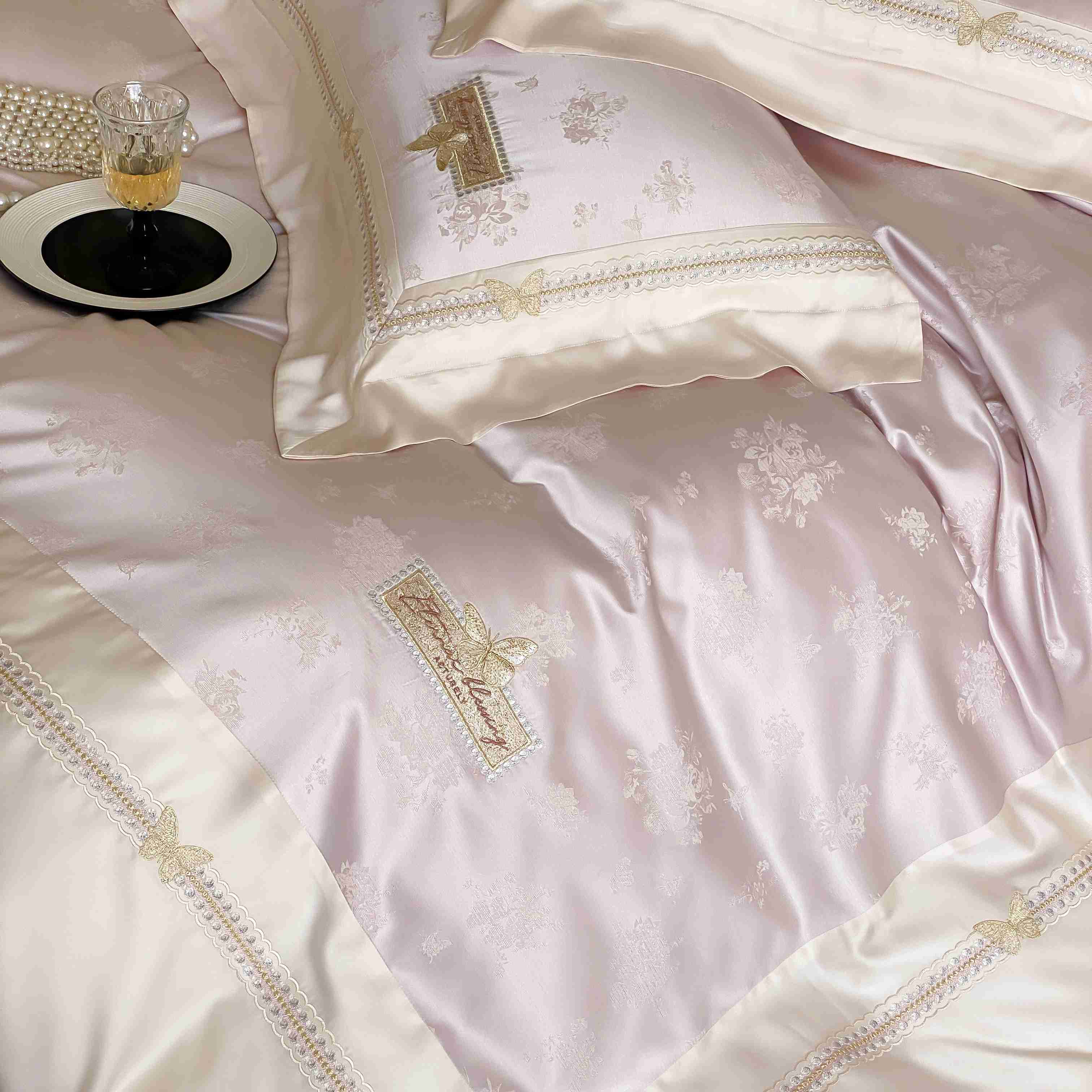 商品名称:(总)太古汇家居 2025新款兰精天丝高精密提花-绣花“花间蝶影”系列