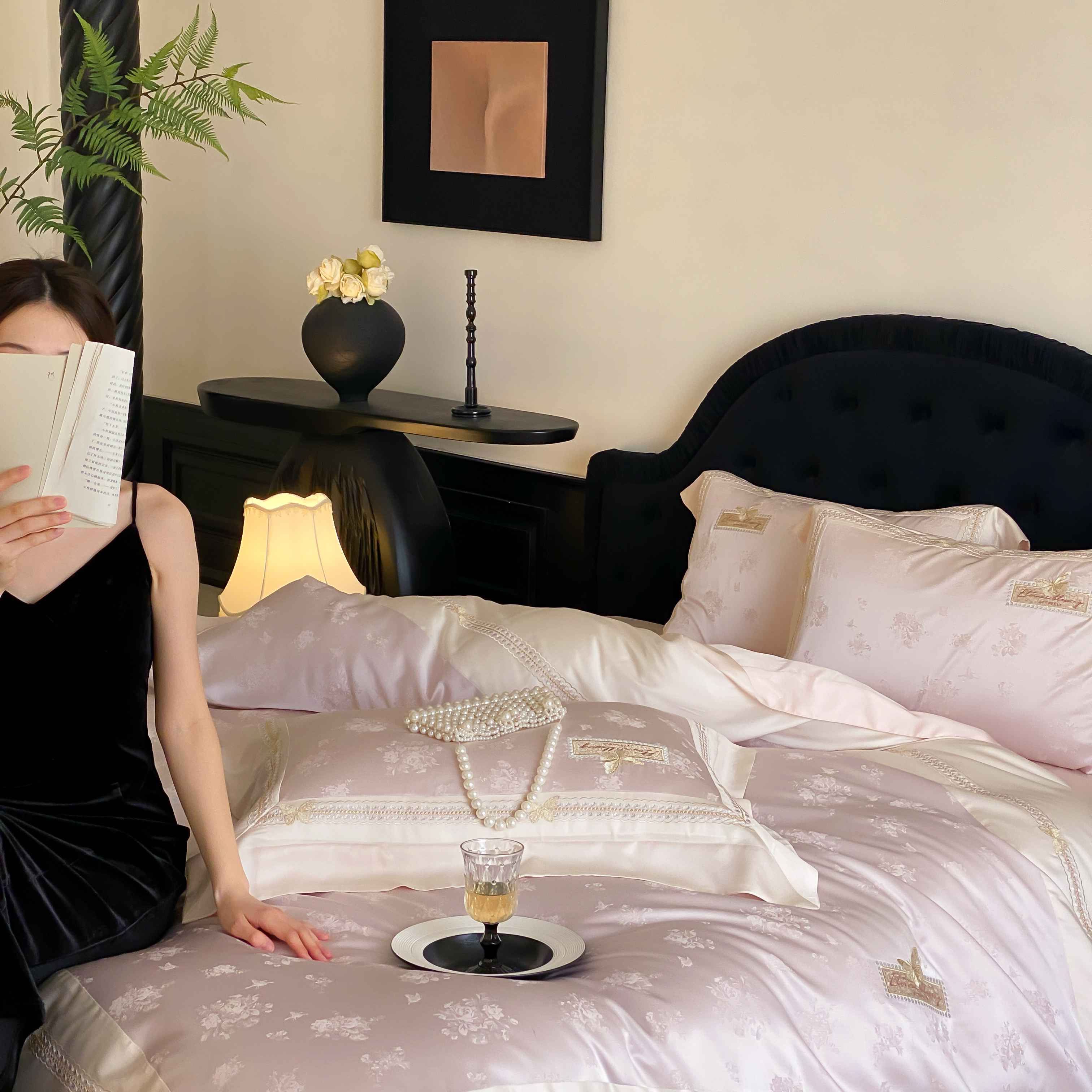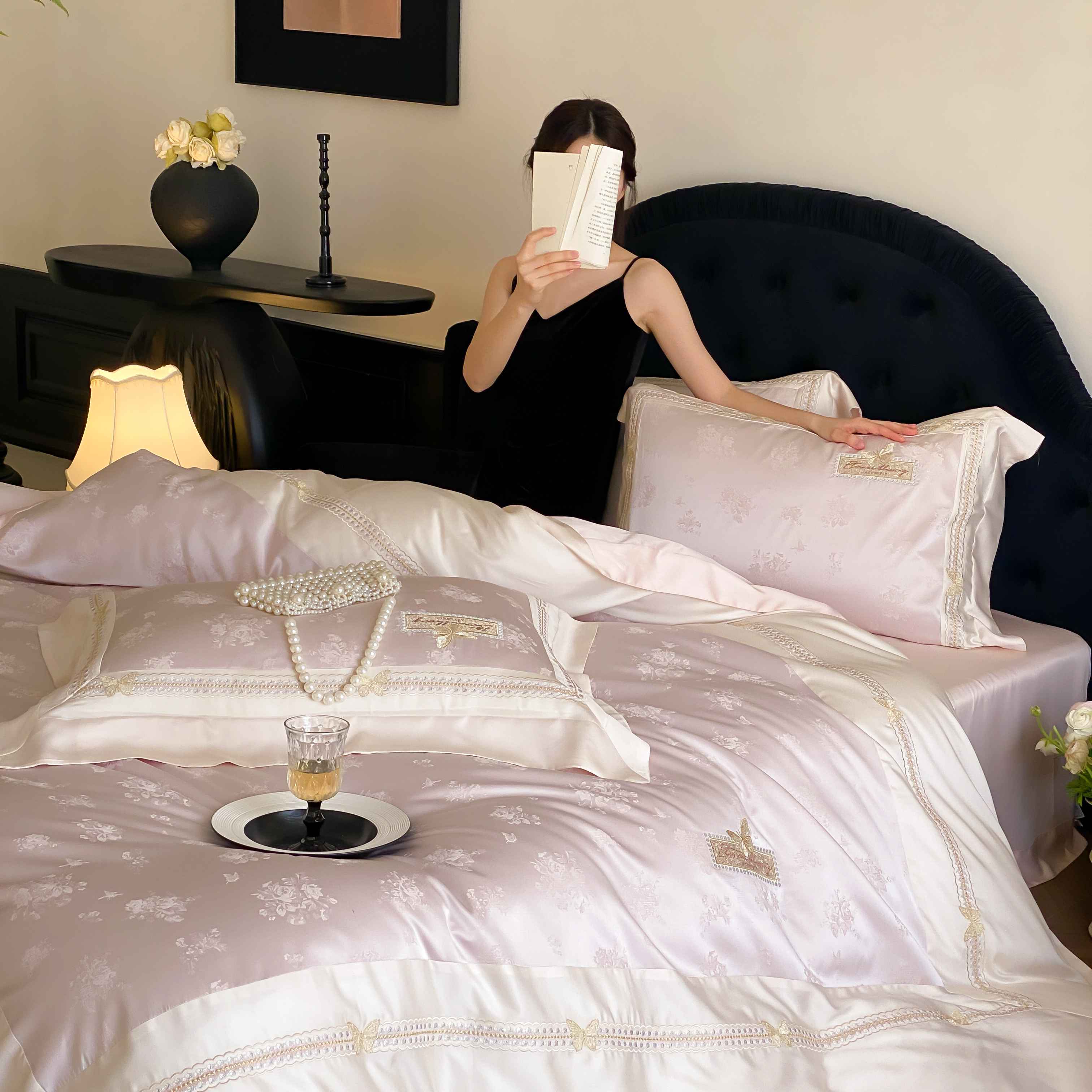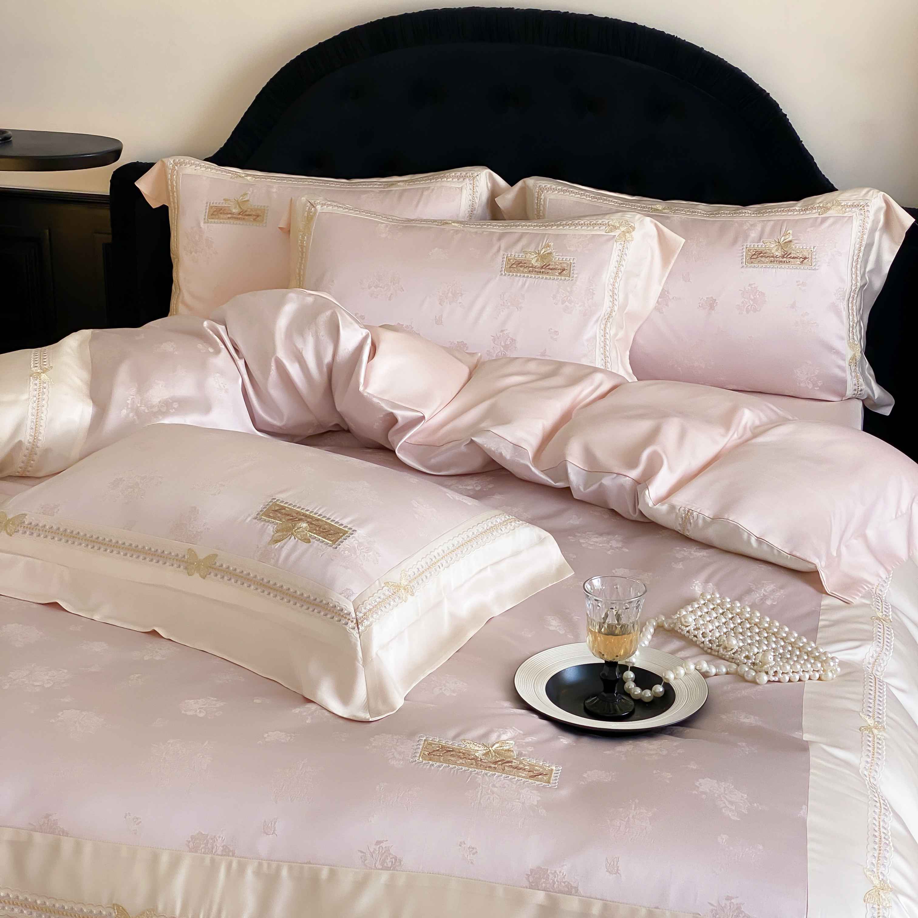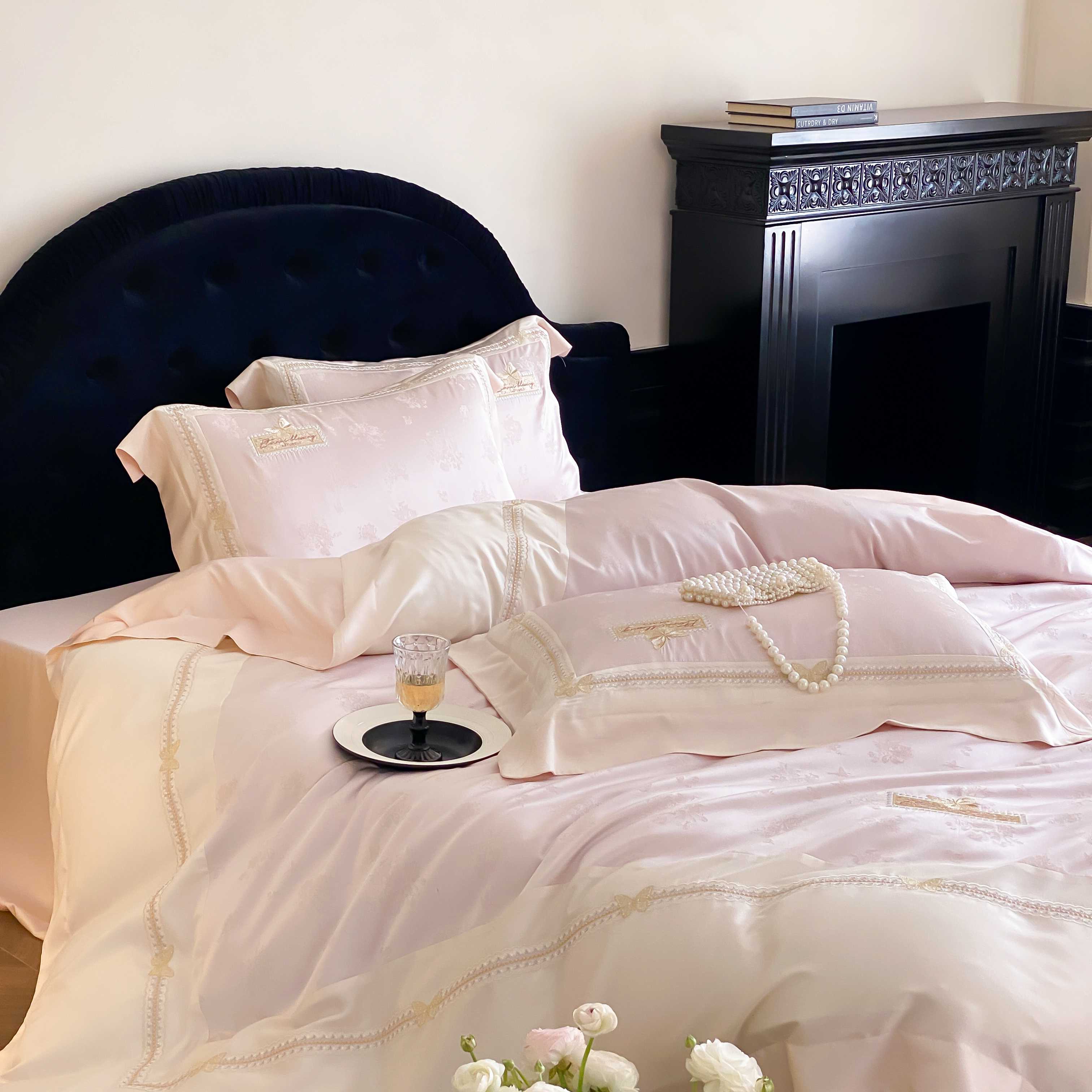 商品名称:(总)太古汇家居 2025新款兰精天丝高精密提花-绣花“花间蝶影”系列