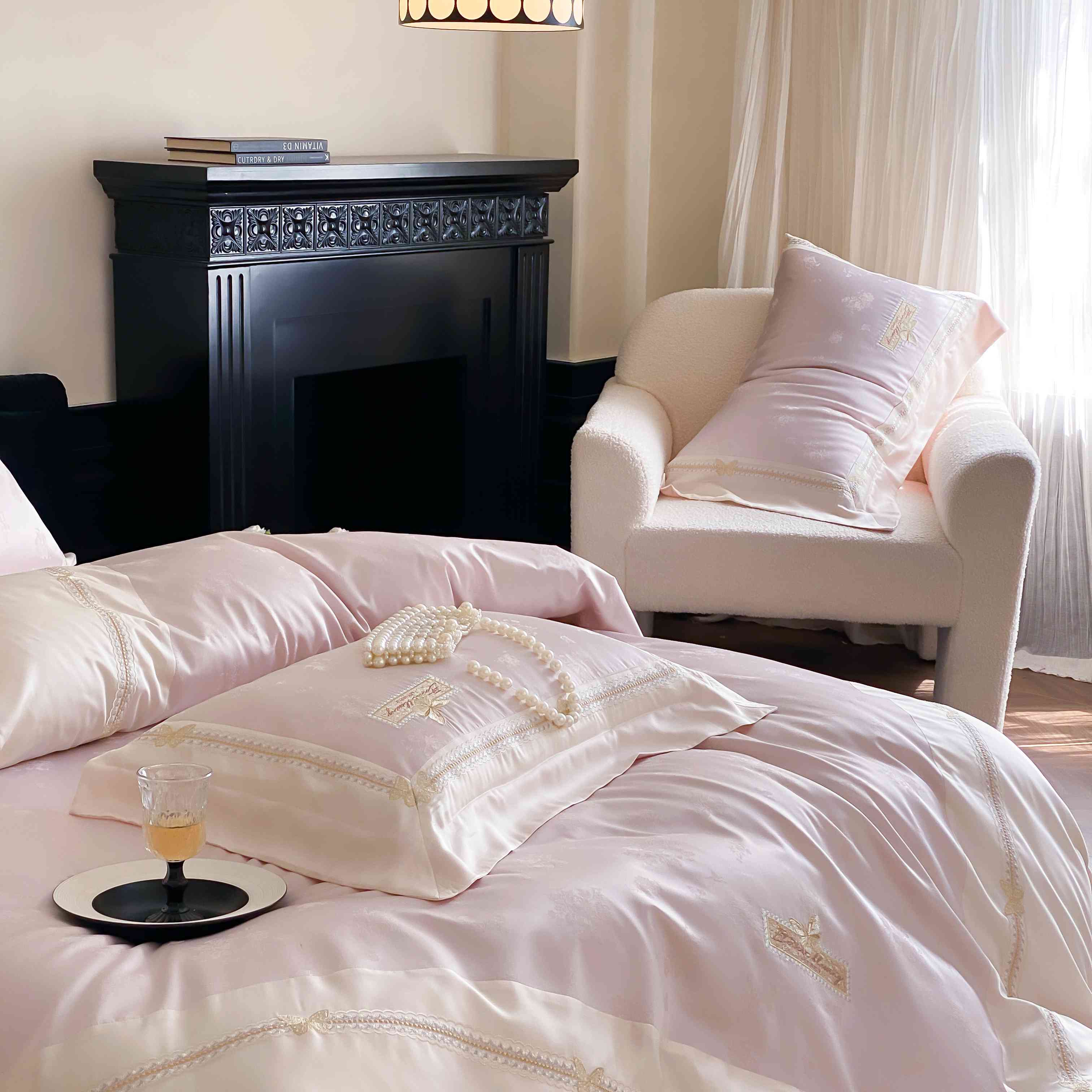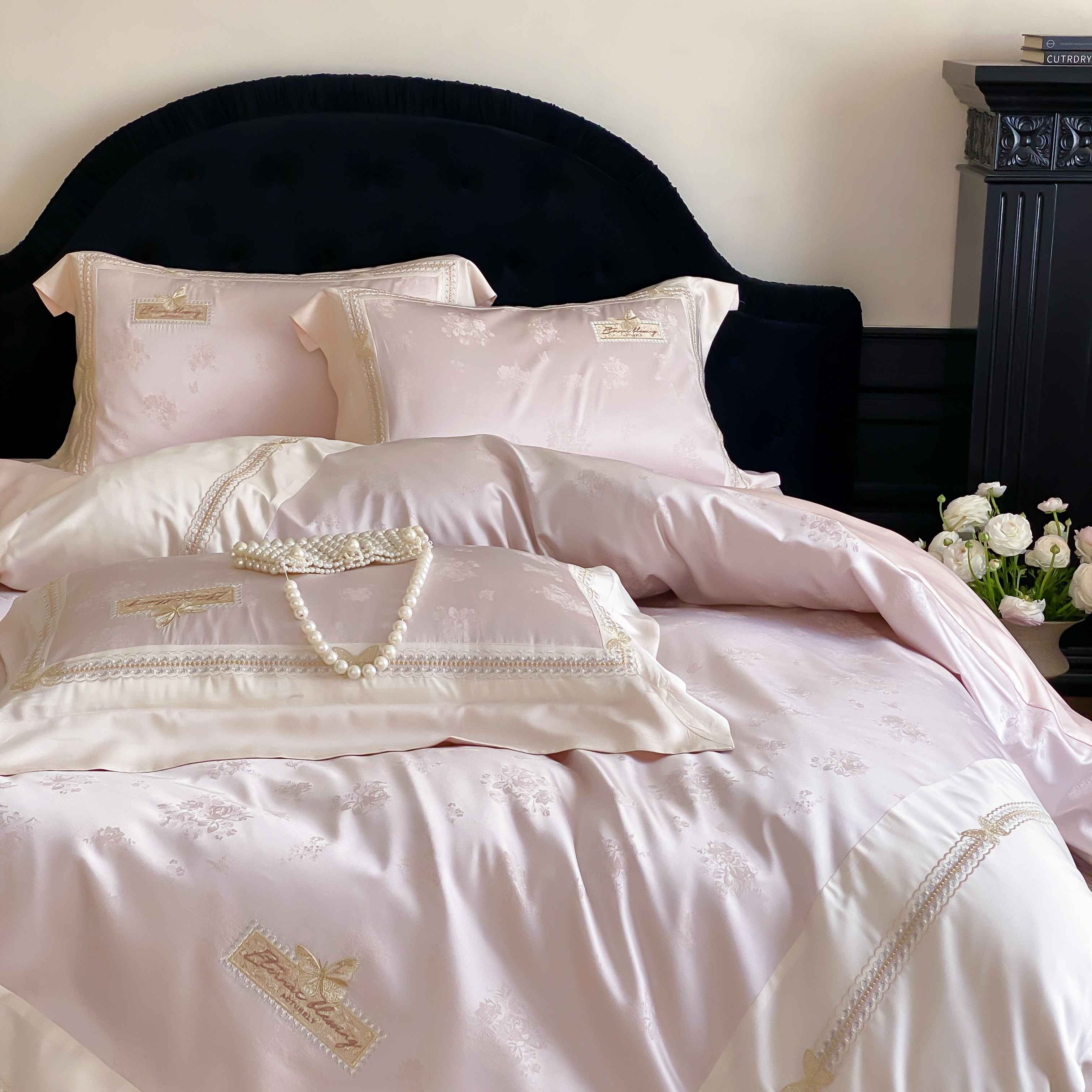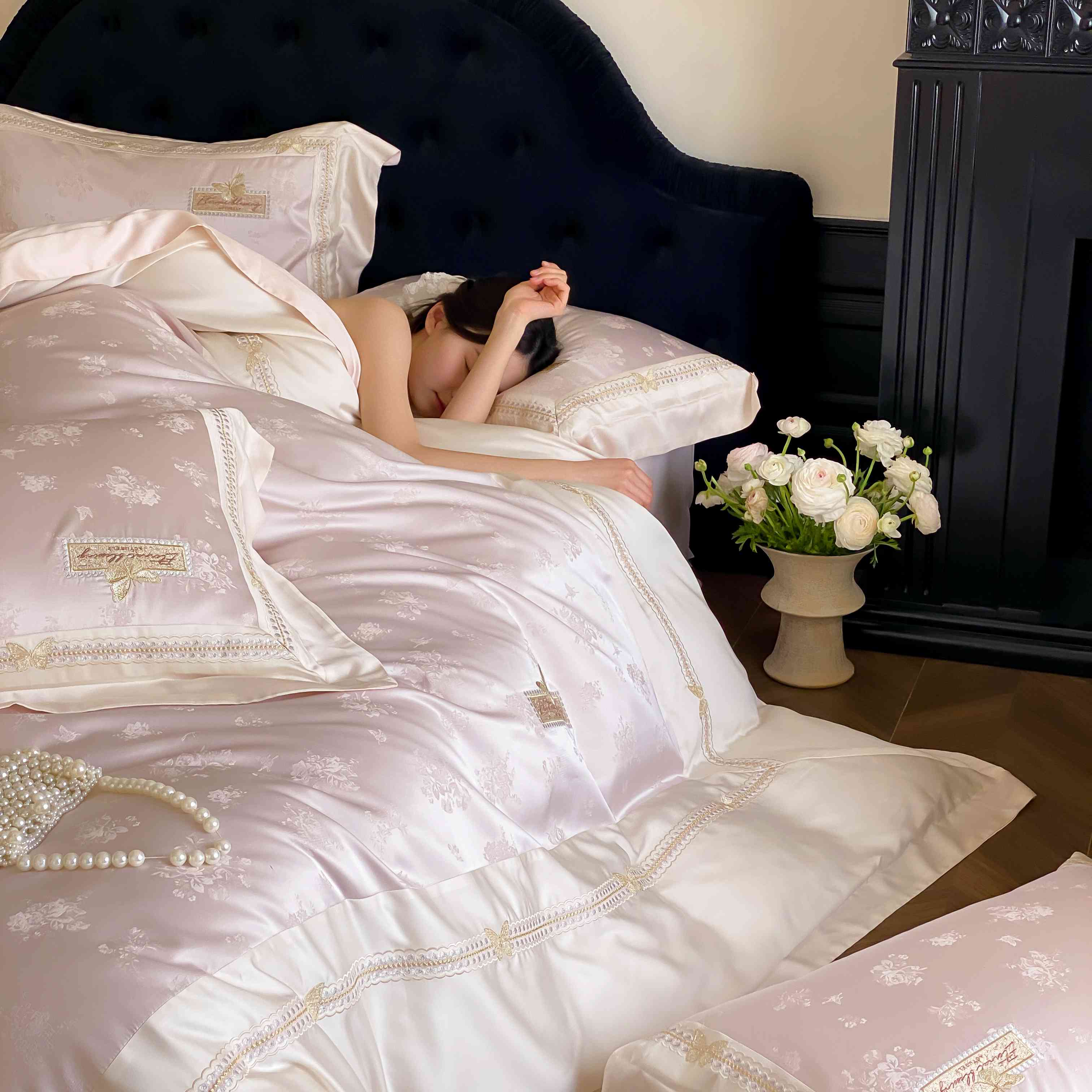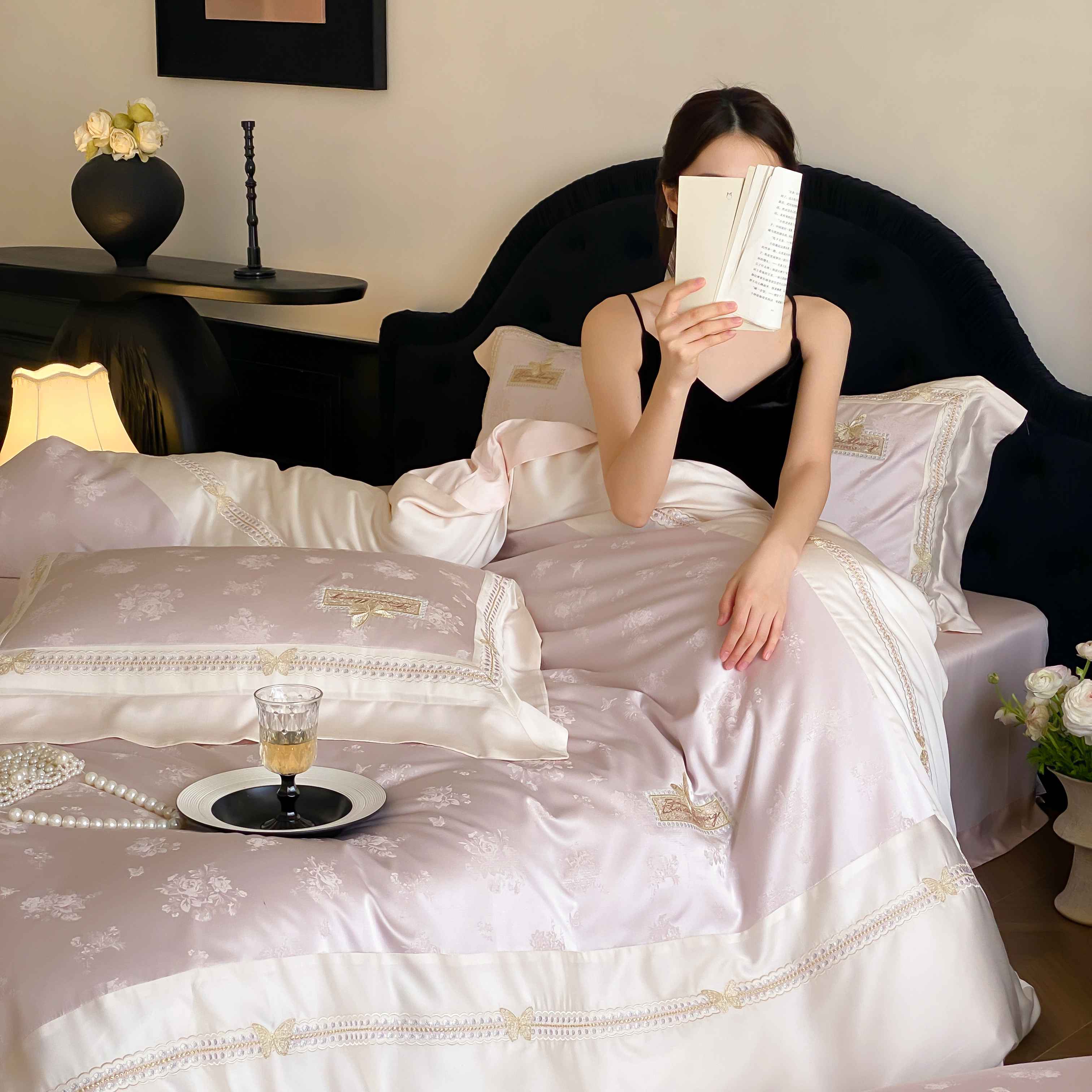 商品名称:(总)太古汇家居 2025新款兰精天丝高精密提花-绣花“花间蝶影”系列