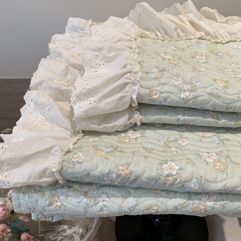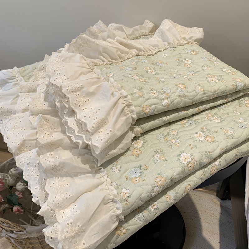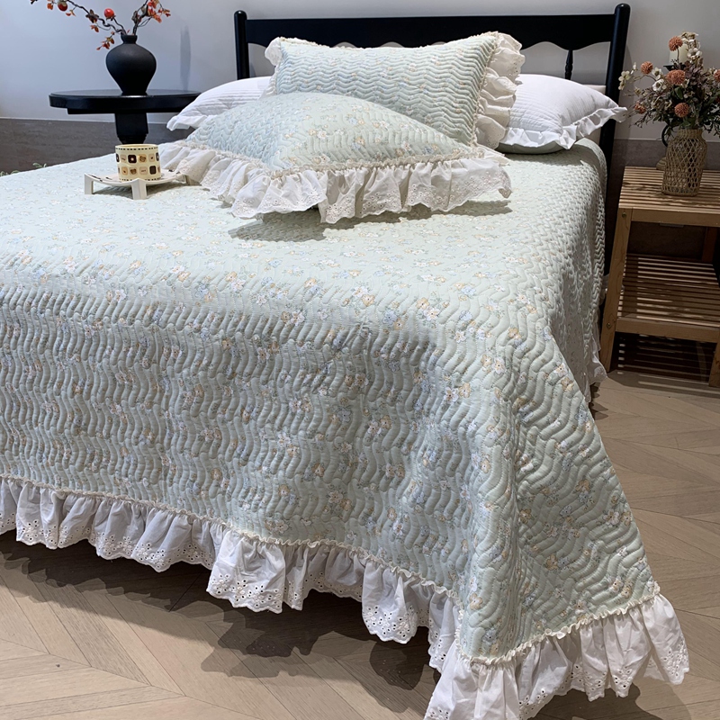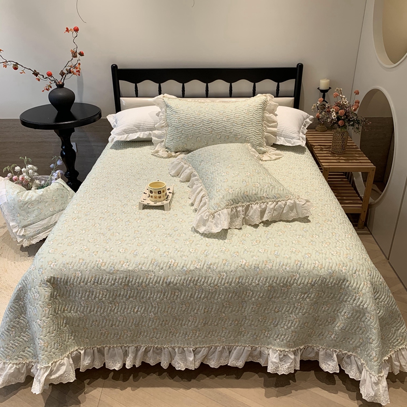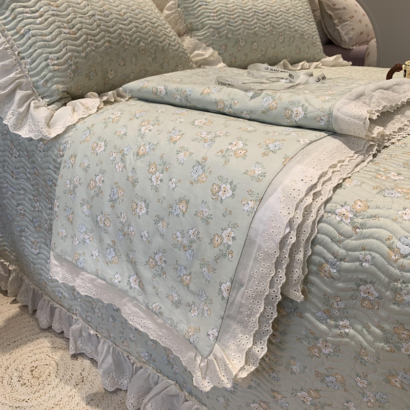 奈萝家纺 2025新款全棉蕾丝花边床盖三件套四件套纯棉花边夏被 花语绿