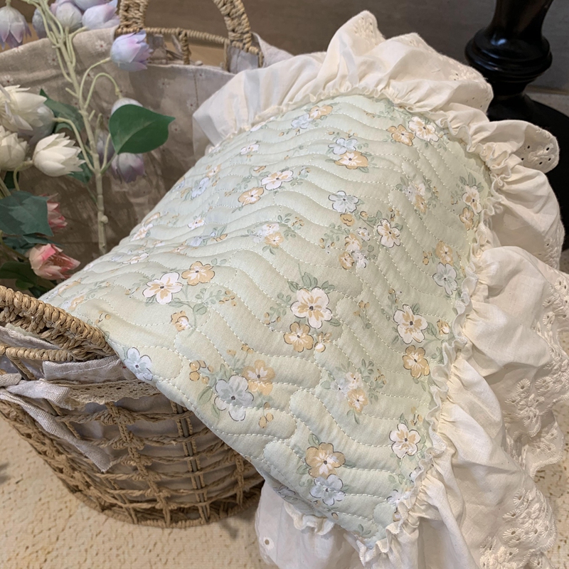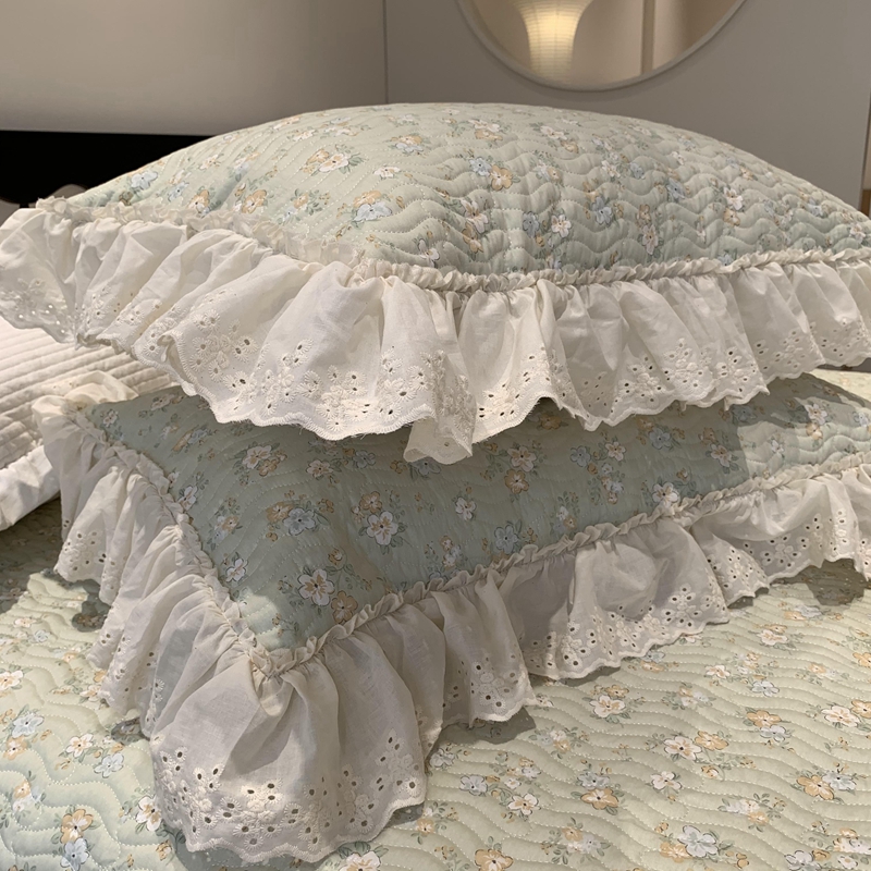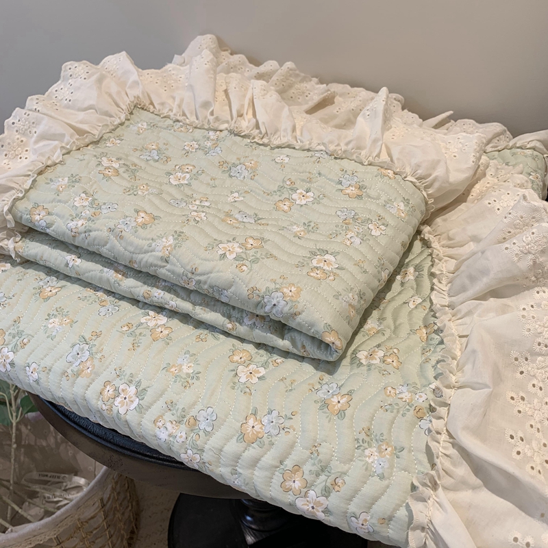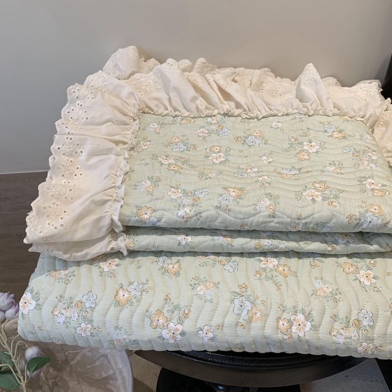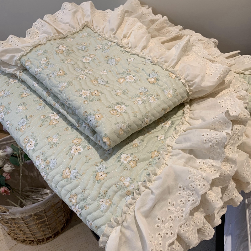 奈萝家纺 2025新款全棉蕾丝花边床盖三件套四件套纯棉花边夏被 花语绿