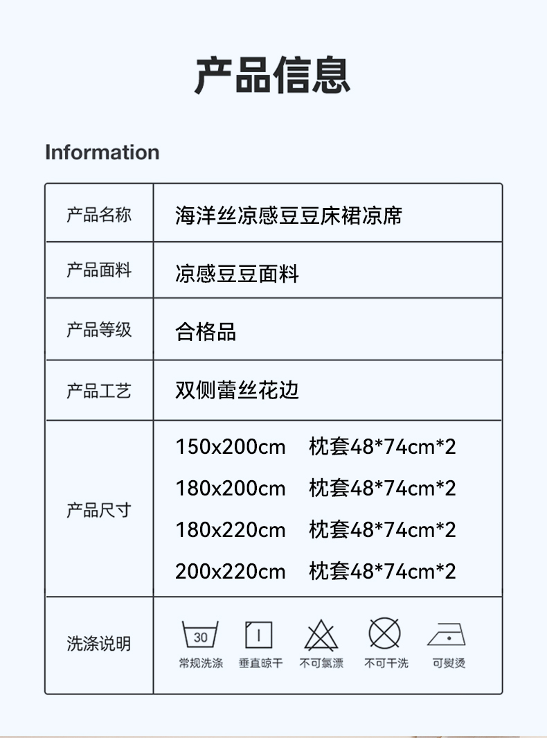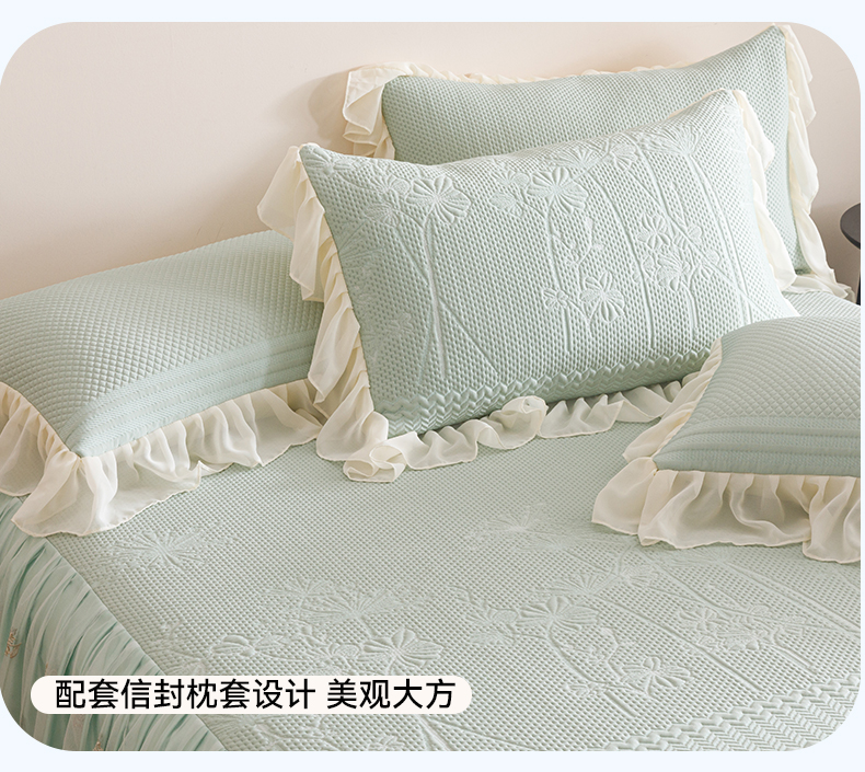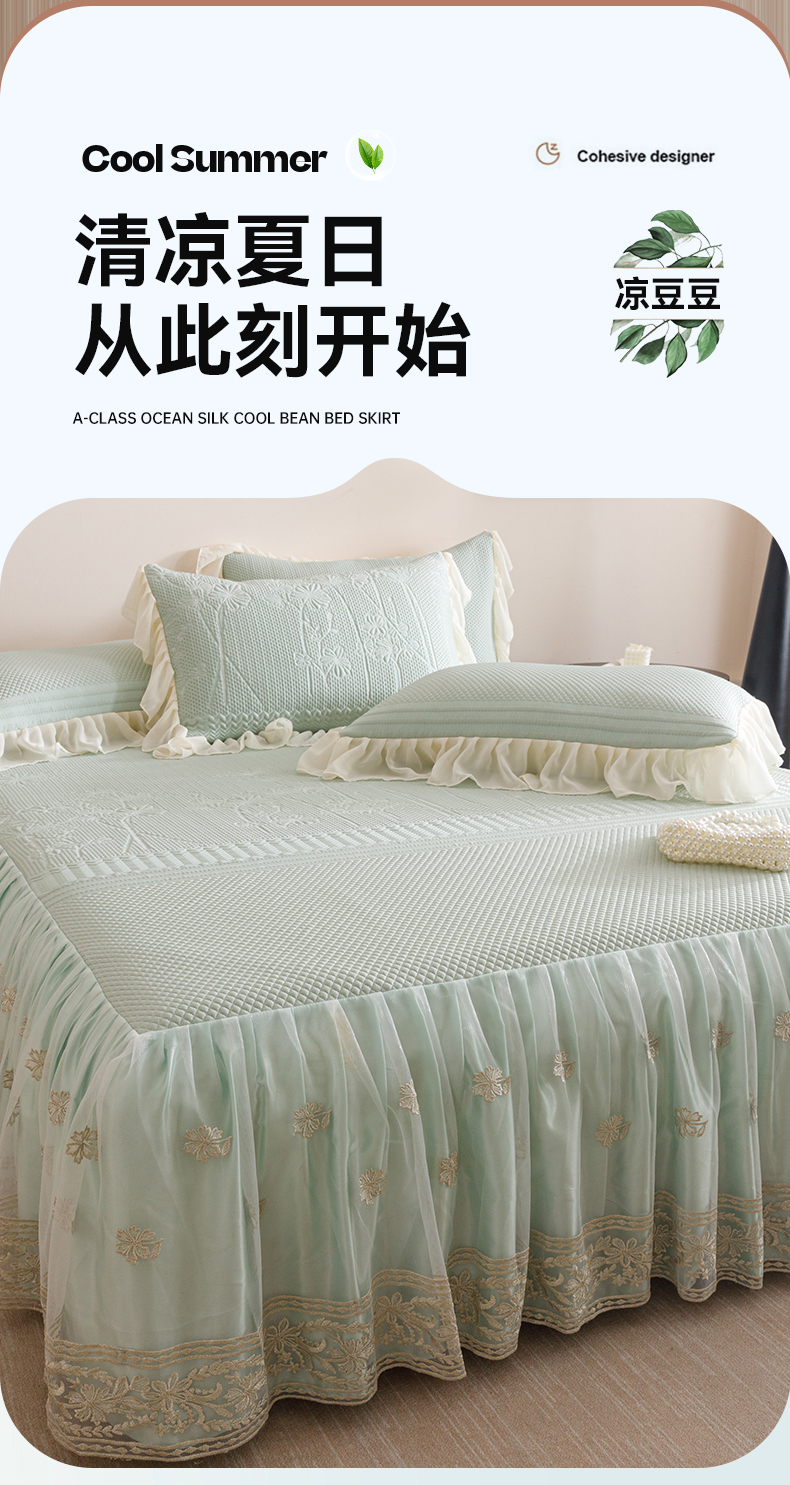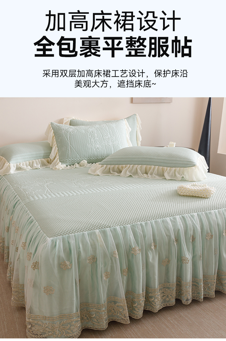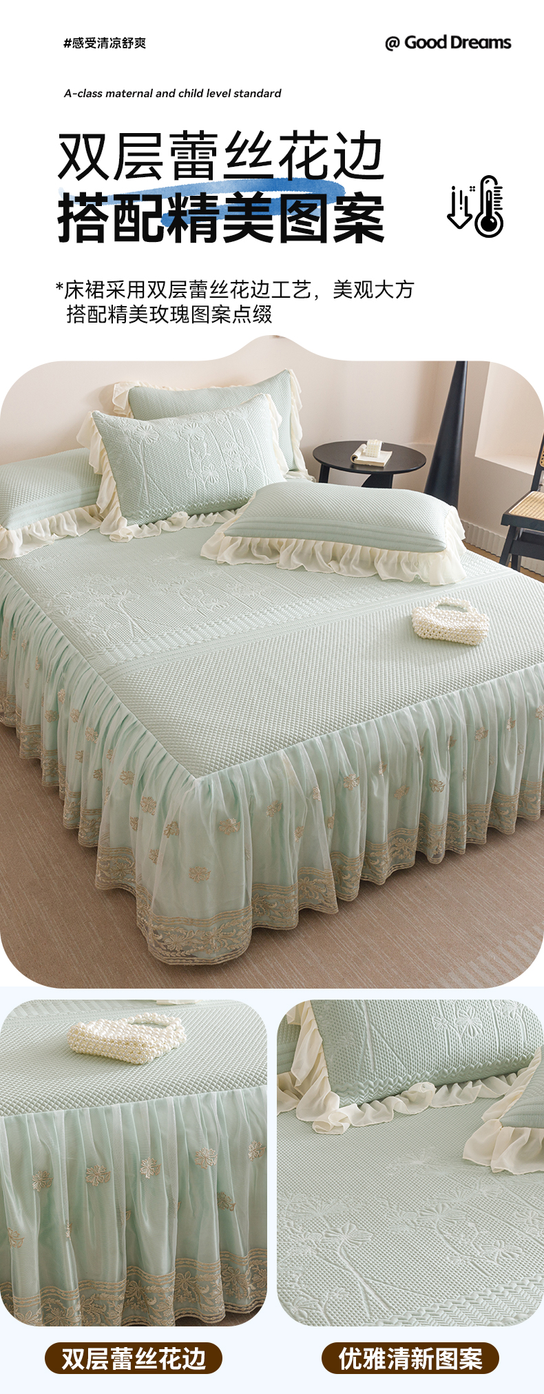 当前位置: 91家纺网 > 商品网购 > 床上用品 > 凉席 > 凉席套件 > 好儿喜家纺 2025新款A类海洋丝凉感豆豆席席子凉席床裙三件套--赫本系列 赫本-风信子浅绿