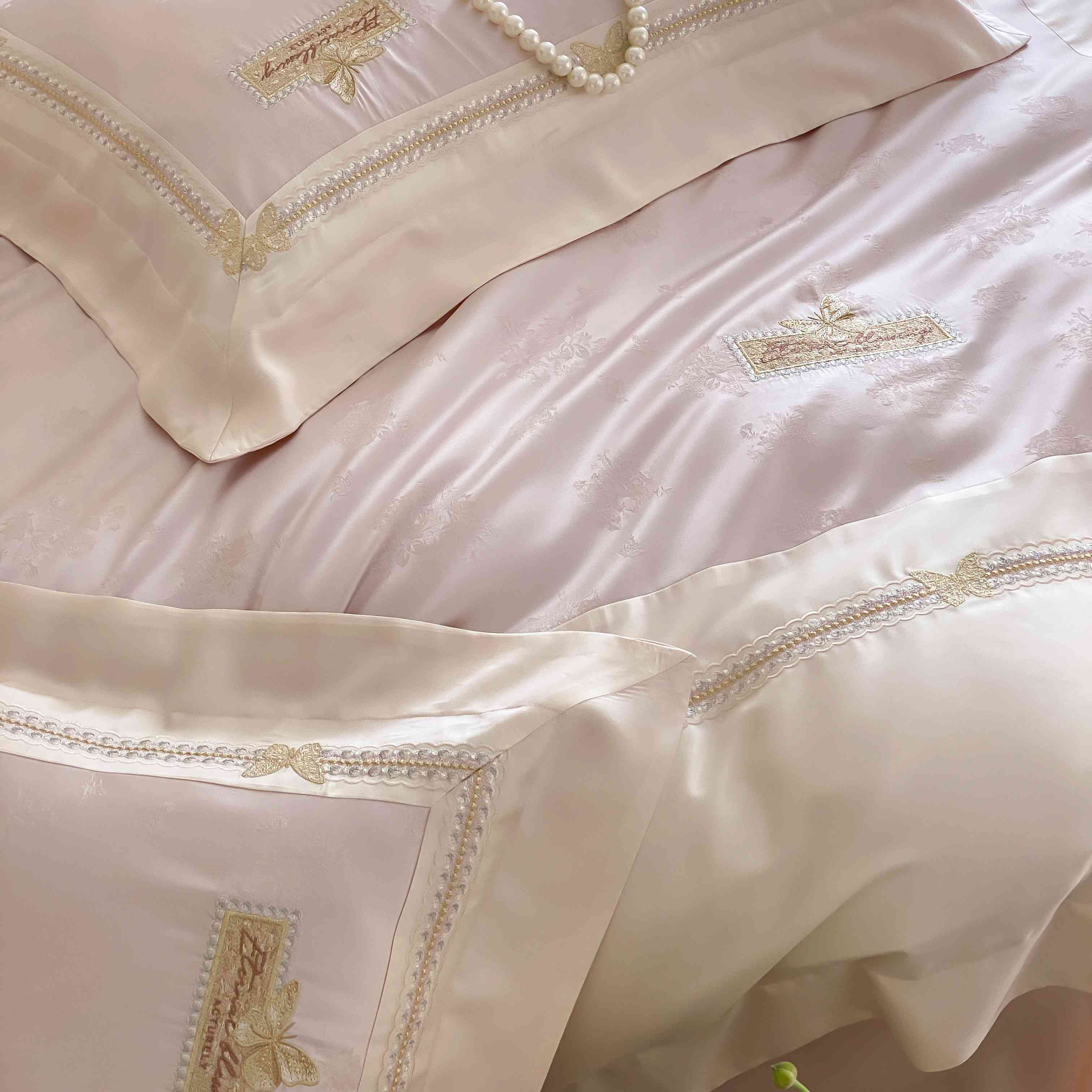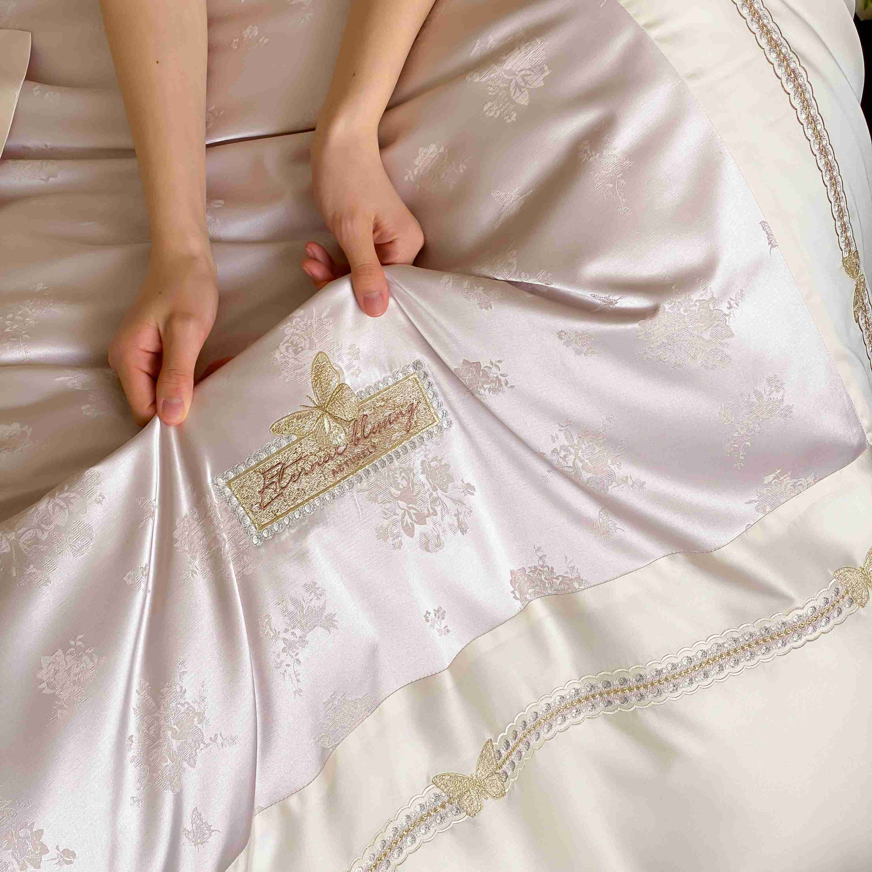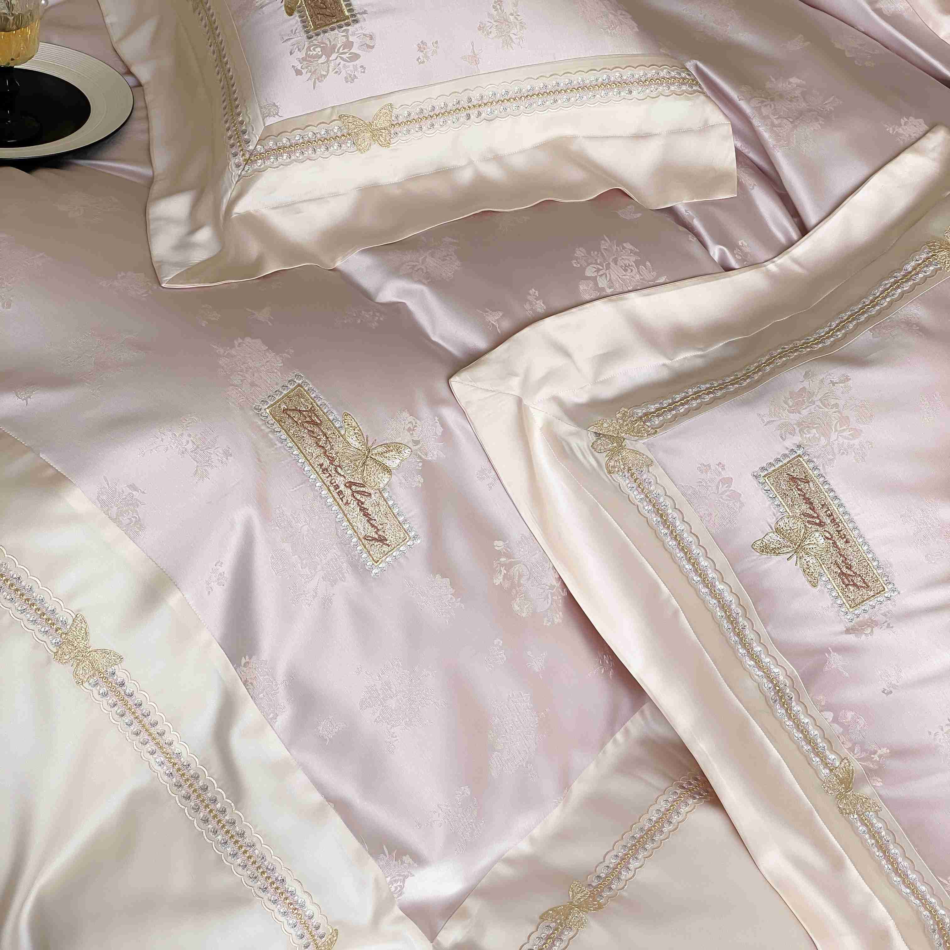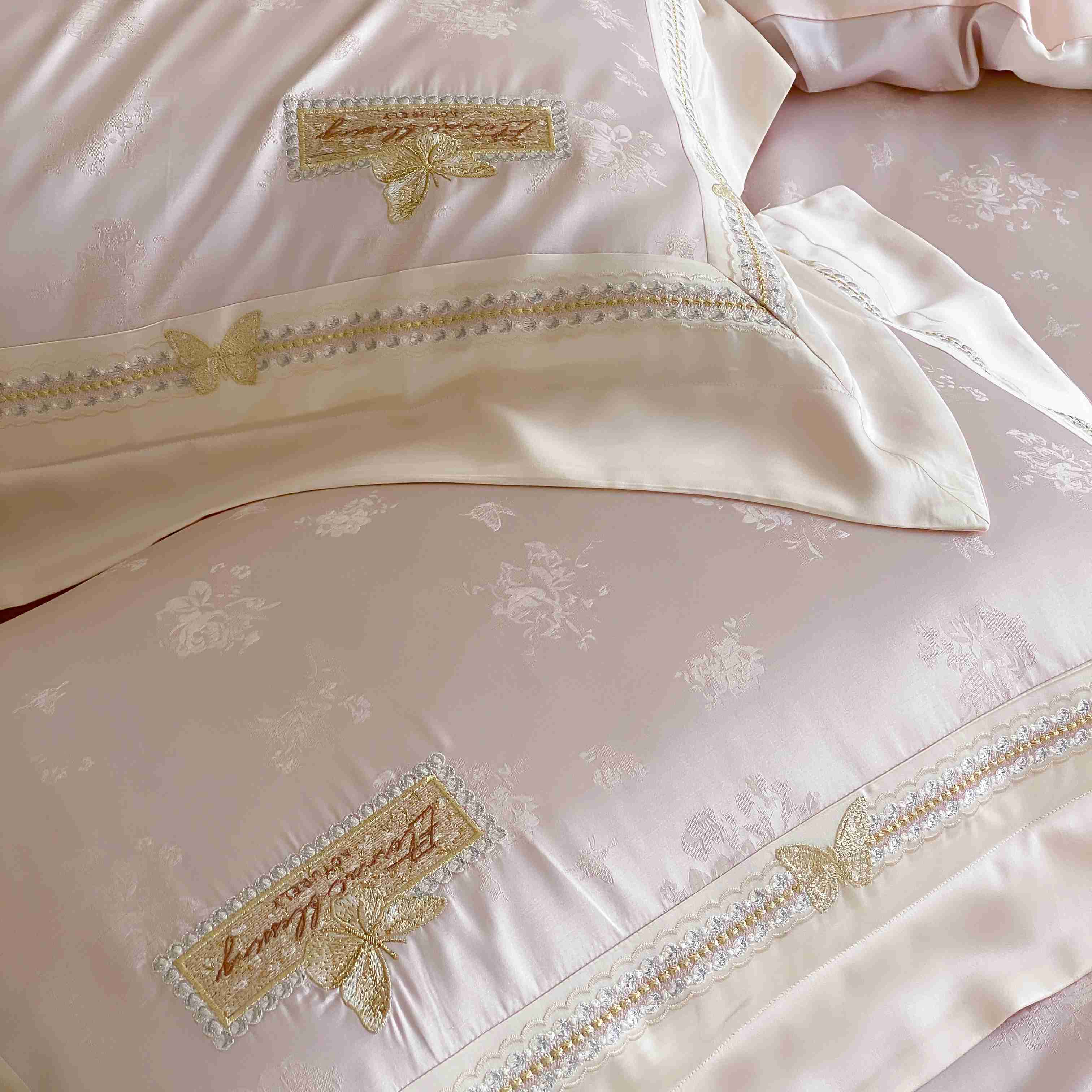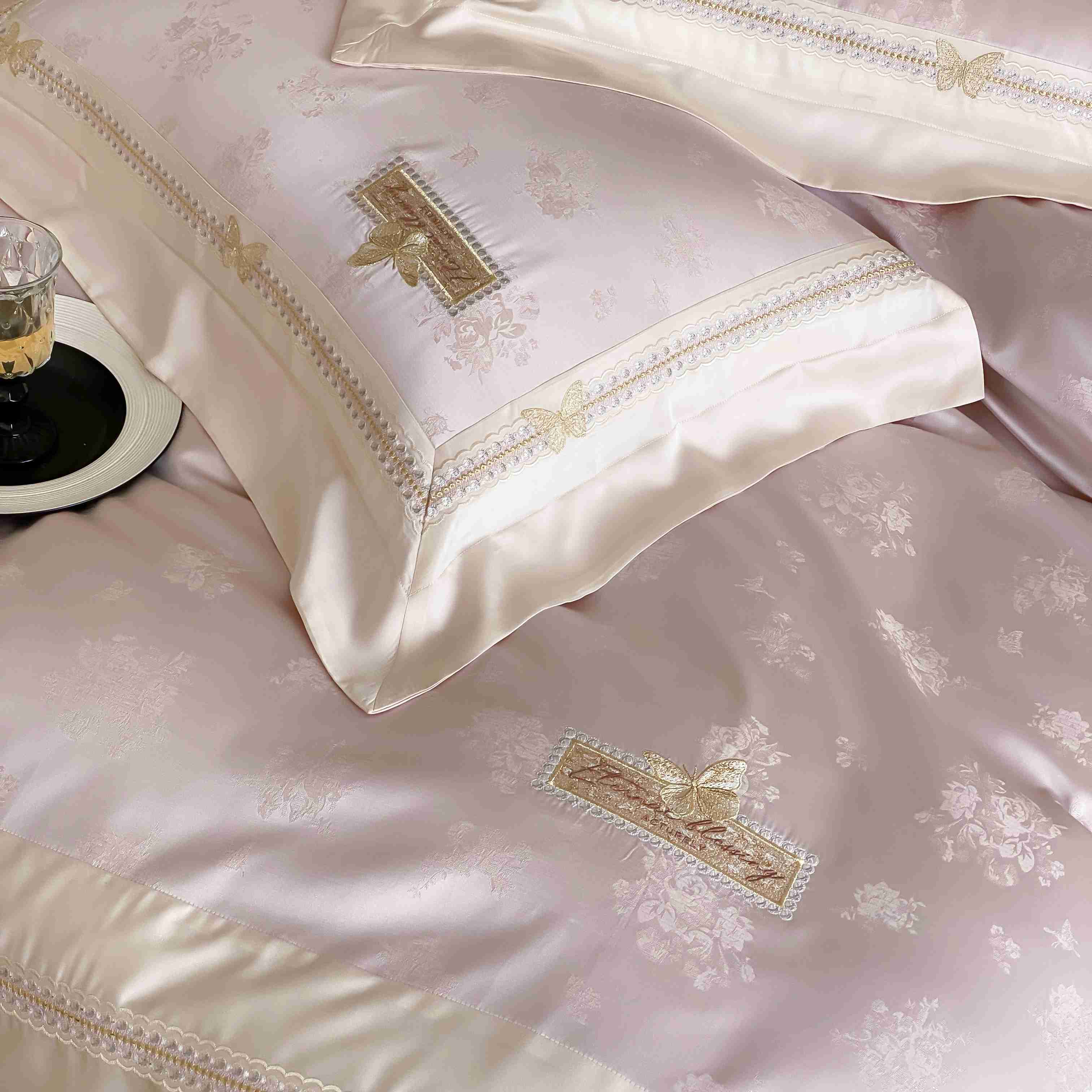 商品名称:太古汇家居 2025新款天丝高精密提花+绣花“花间蝶影”系列四件套 花间蝶影-粉色