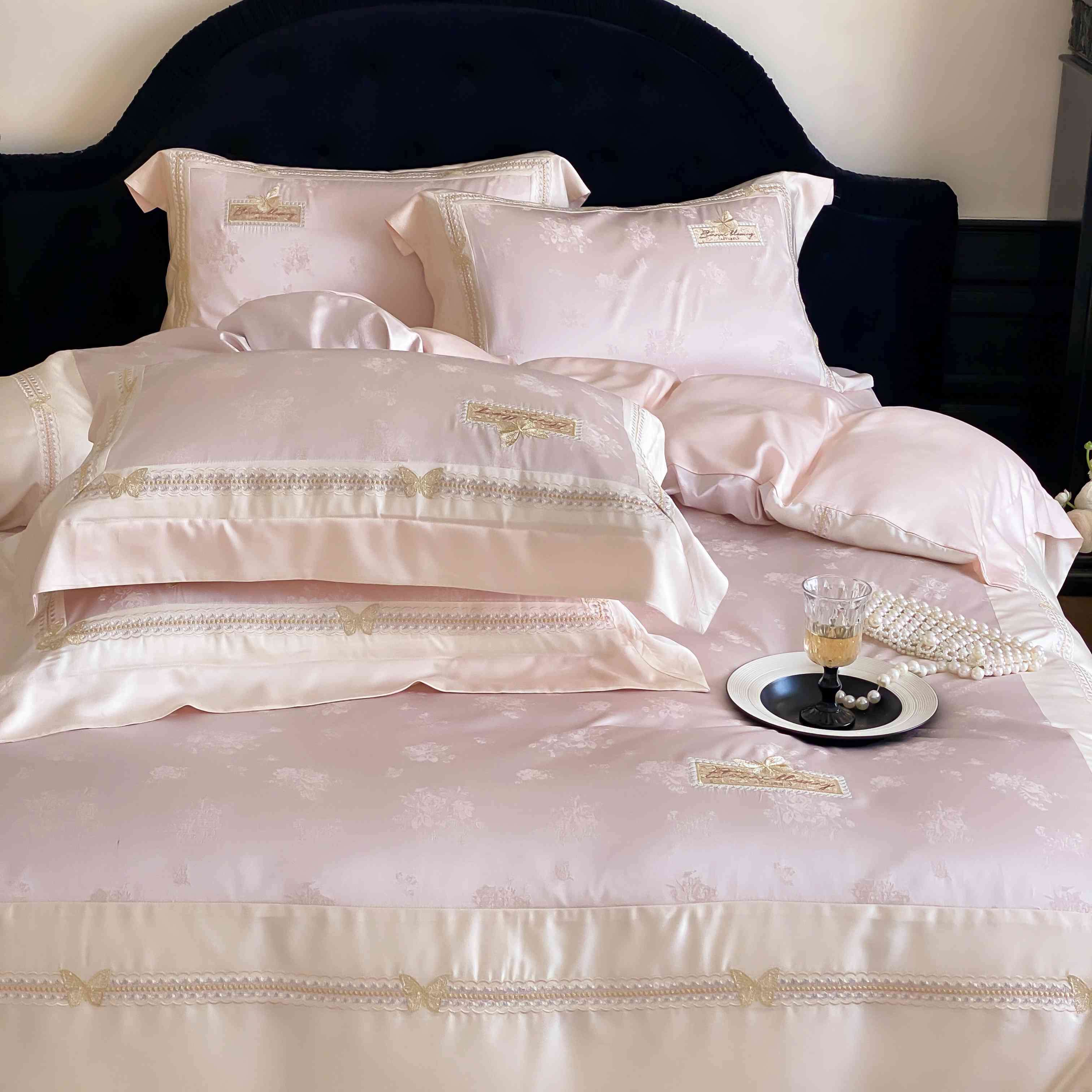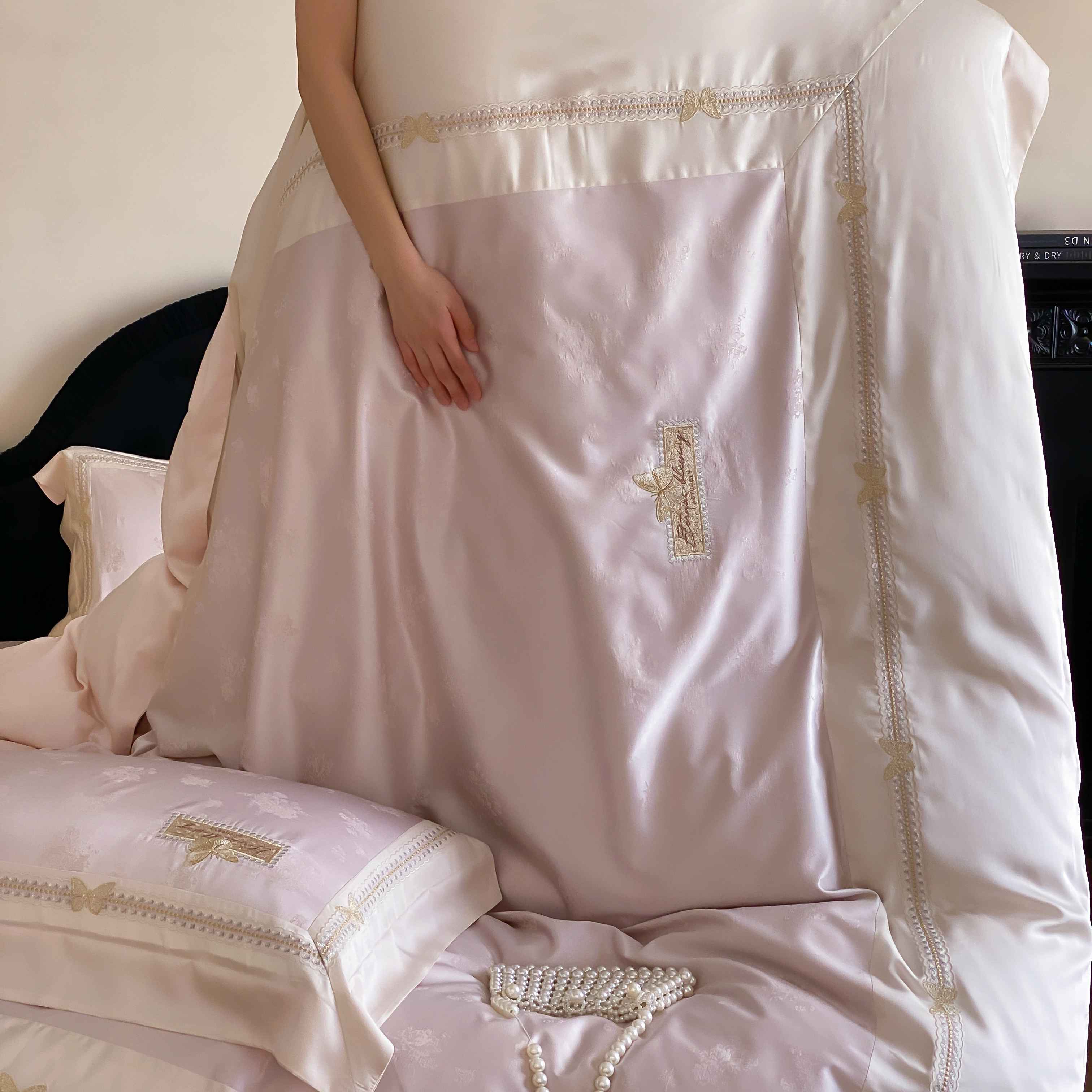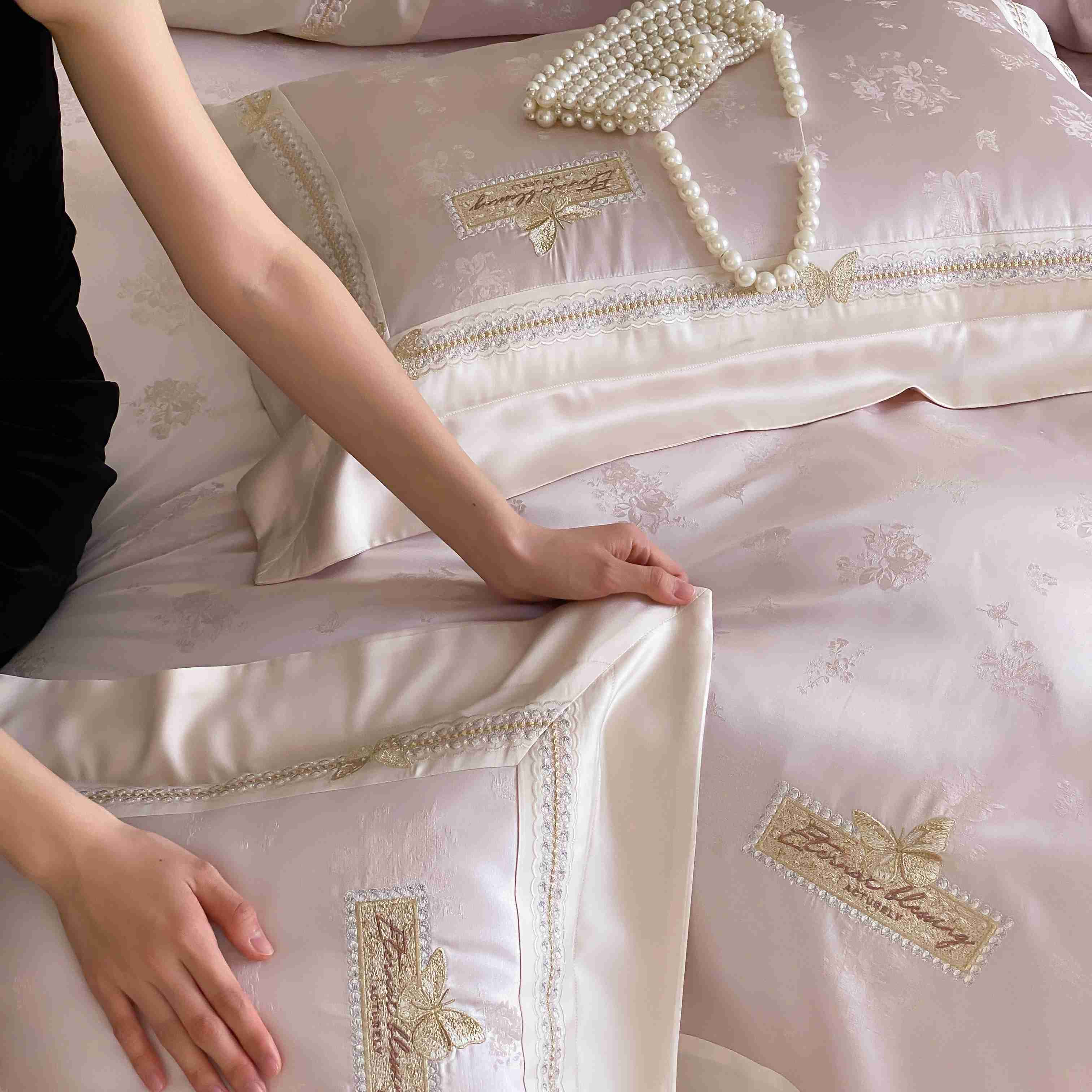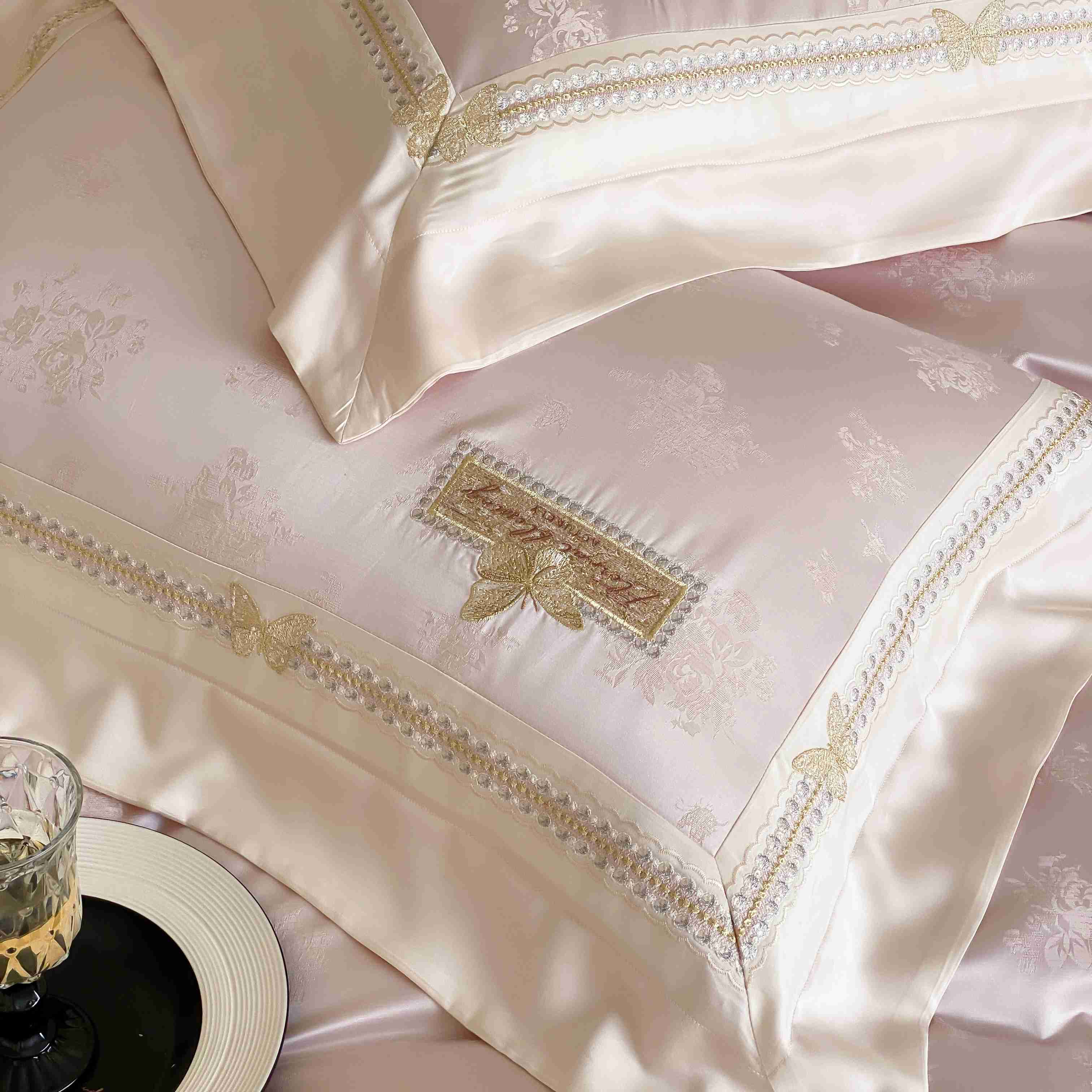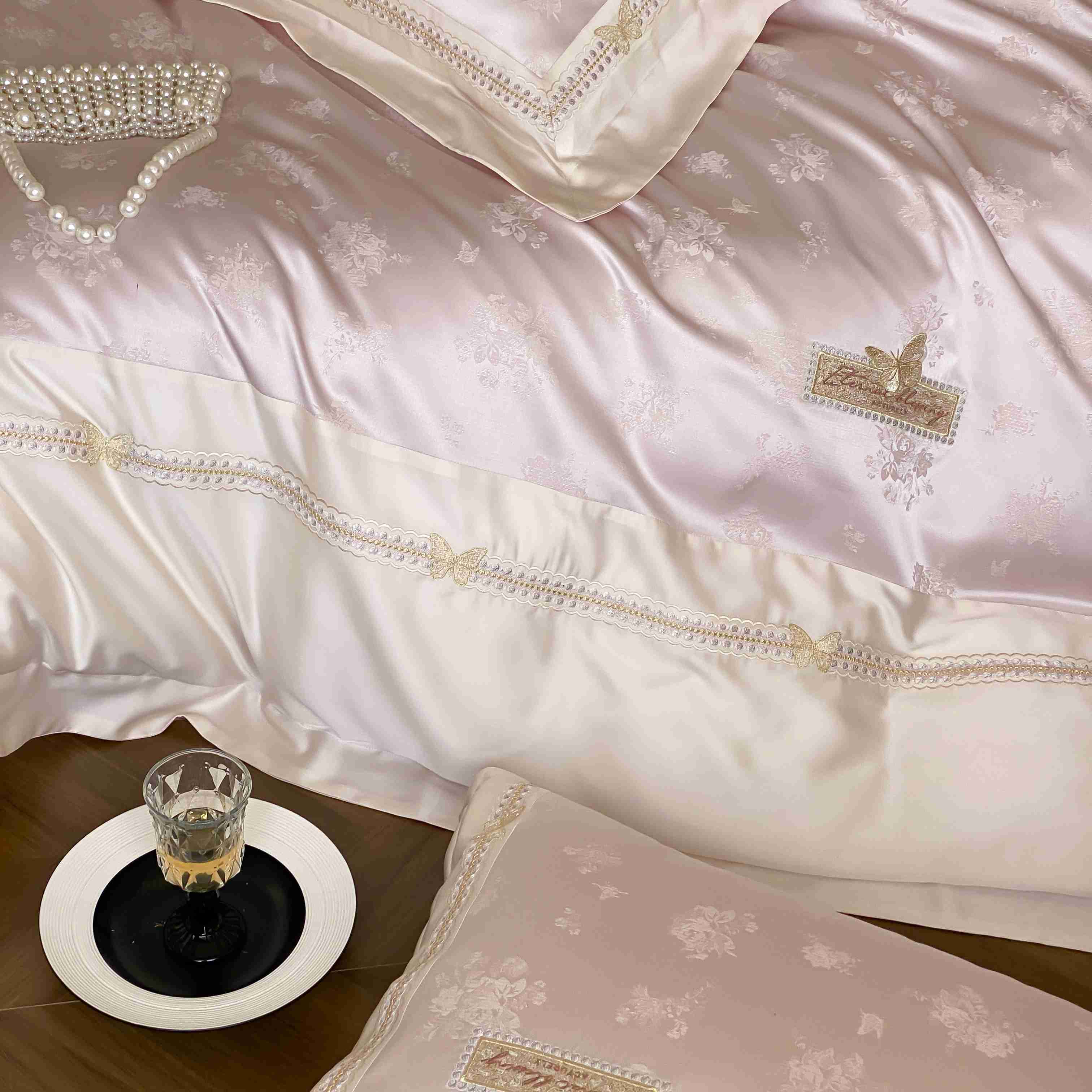 商品名称:太古汇家居 2025新款天丝高精密提花+绣花“花间蝶影”系列四件套 花间蝶影-粉色