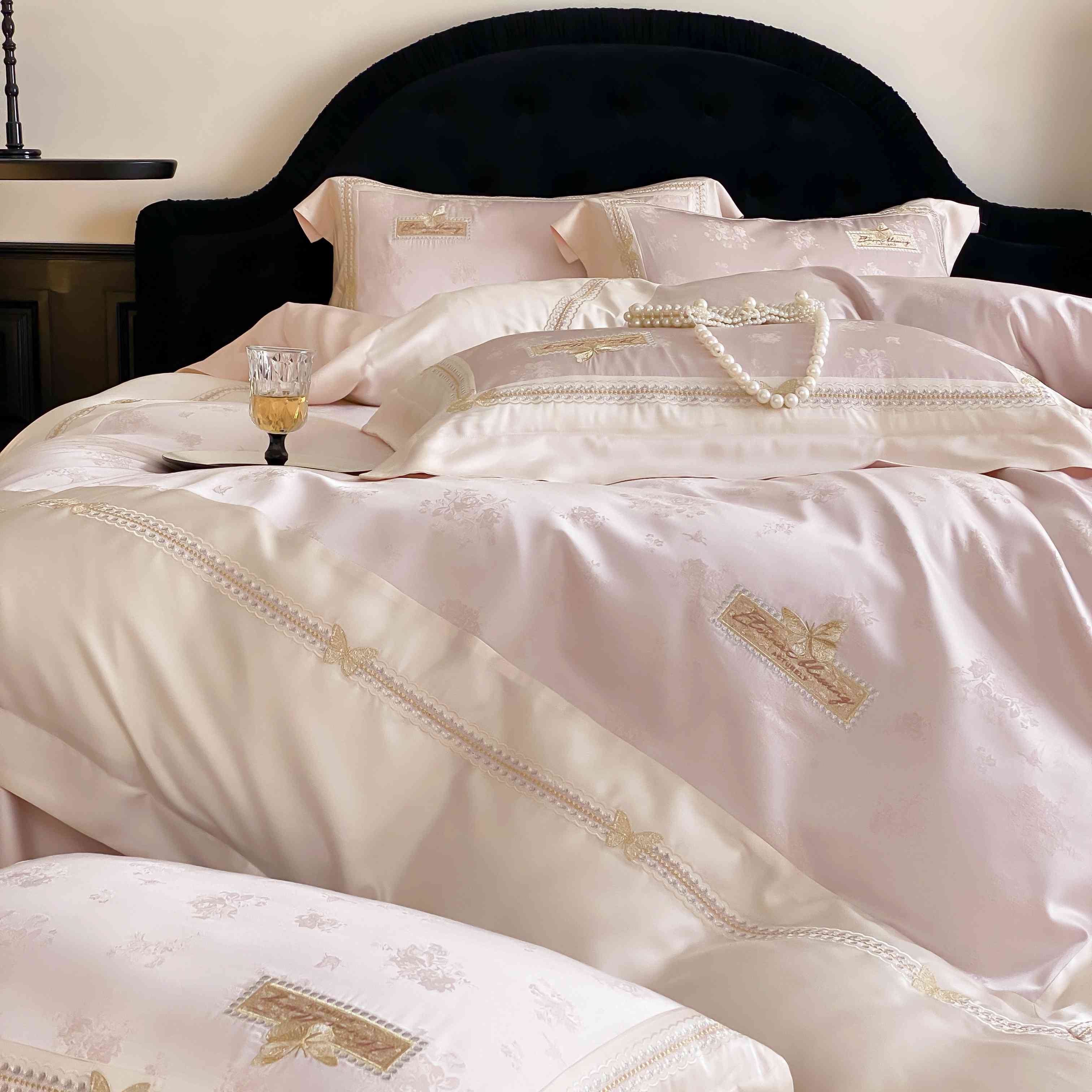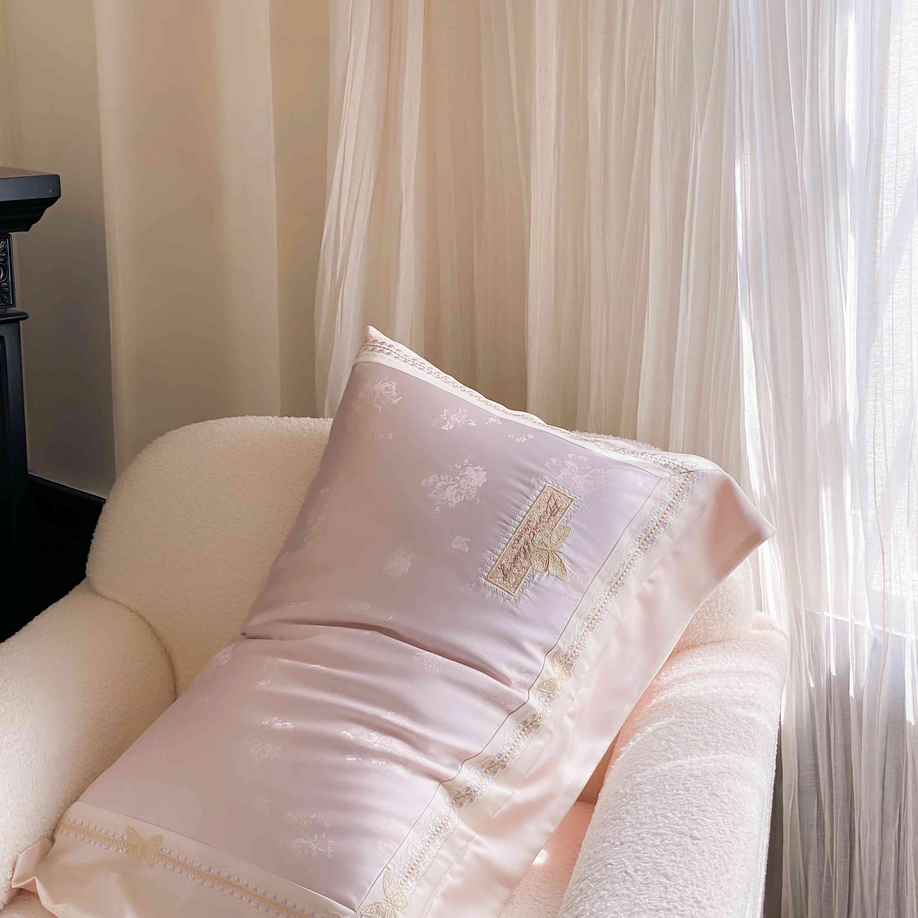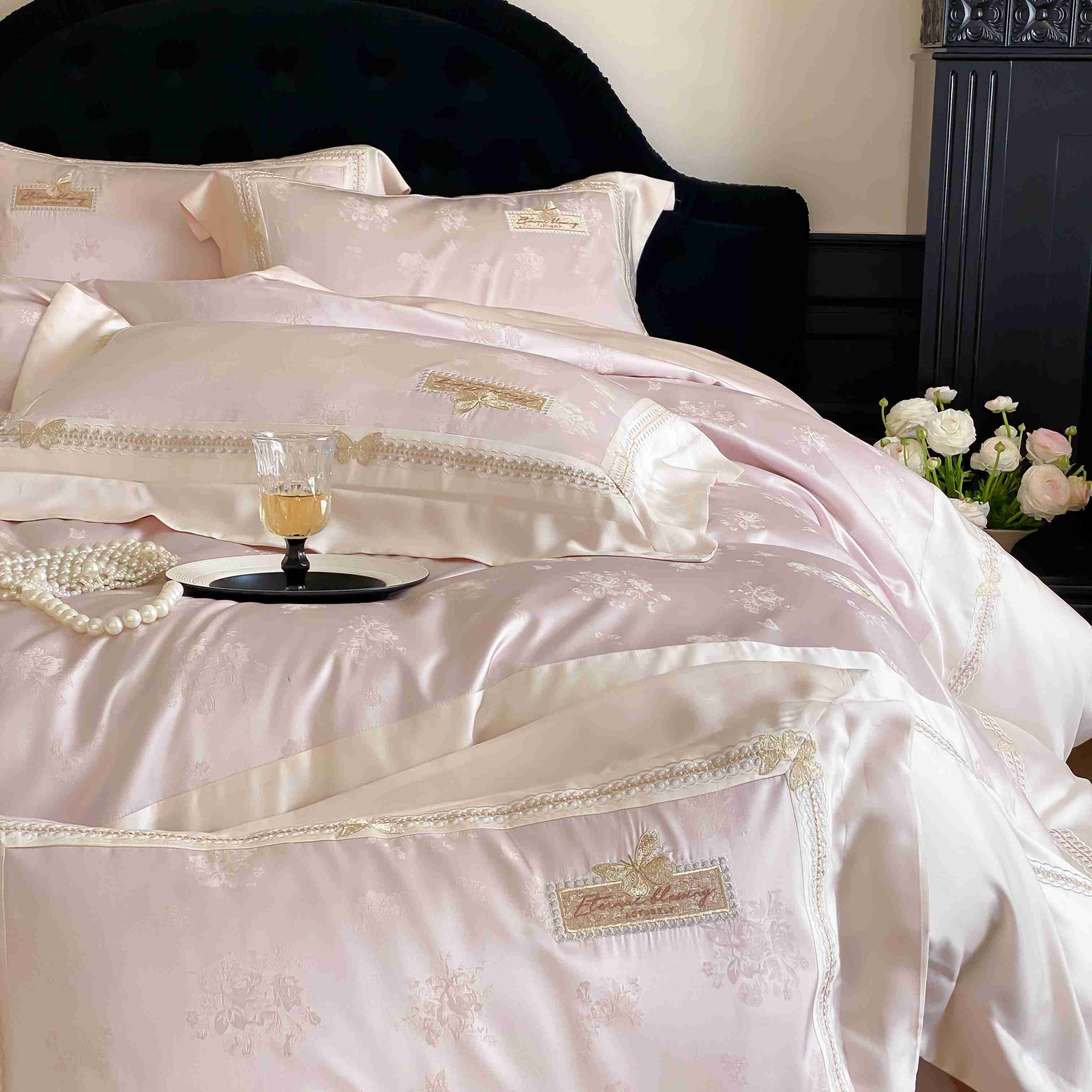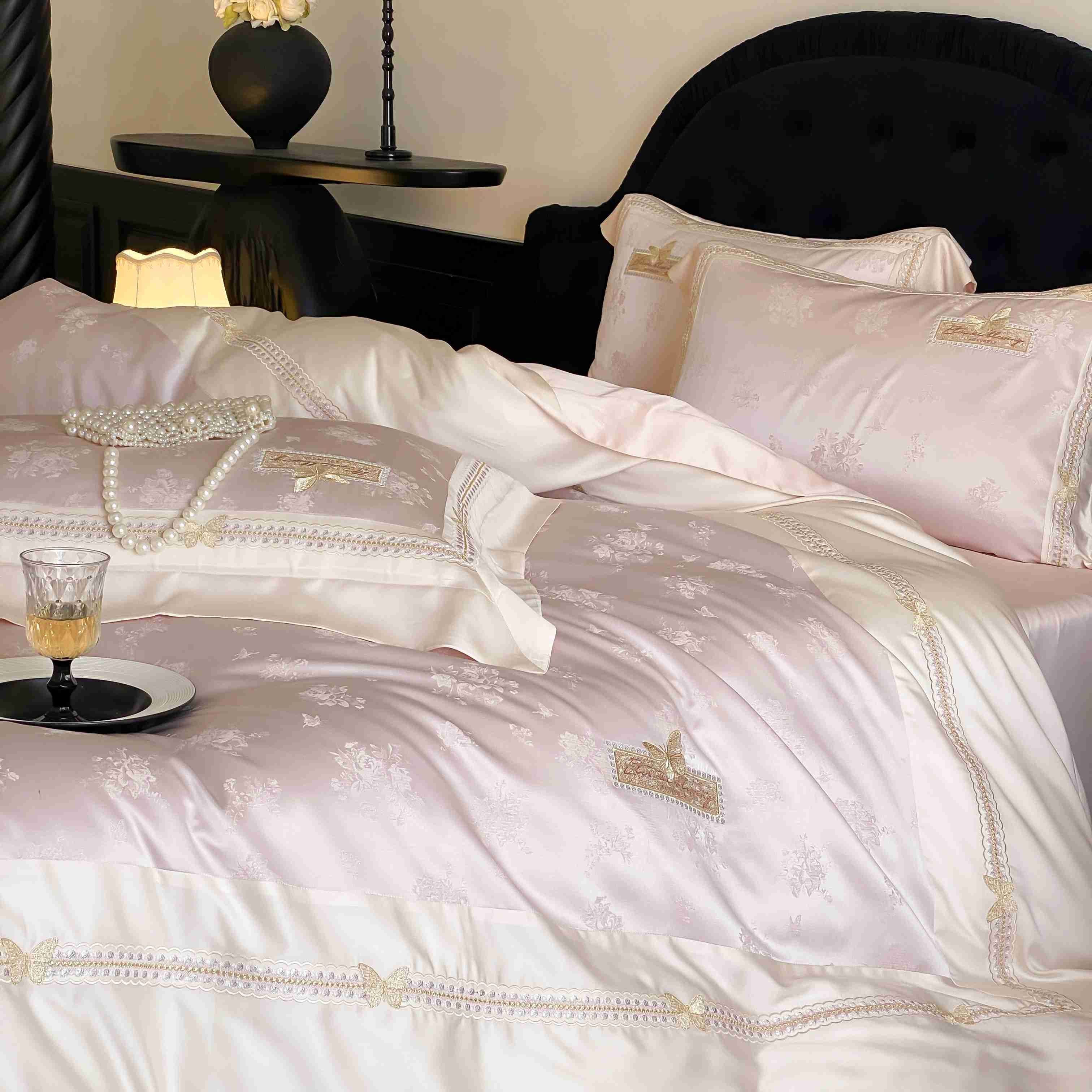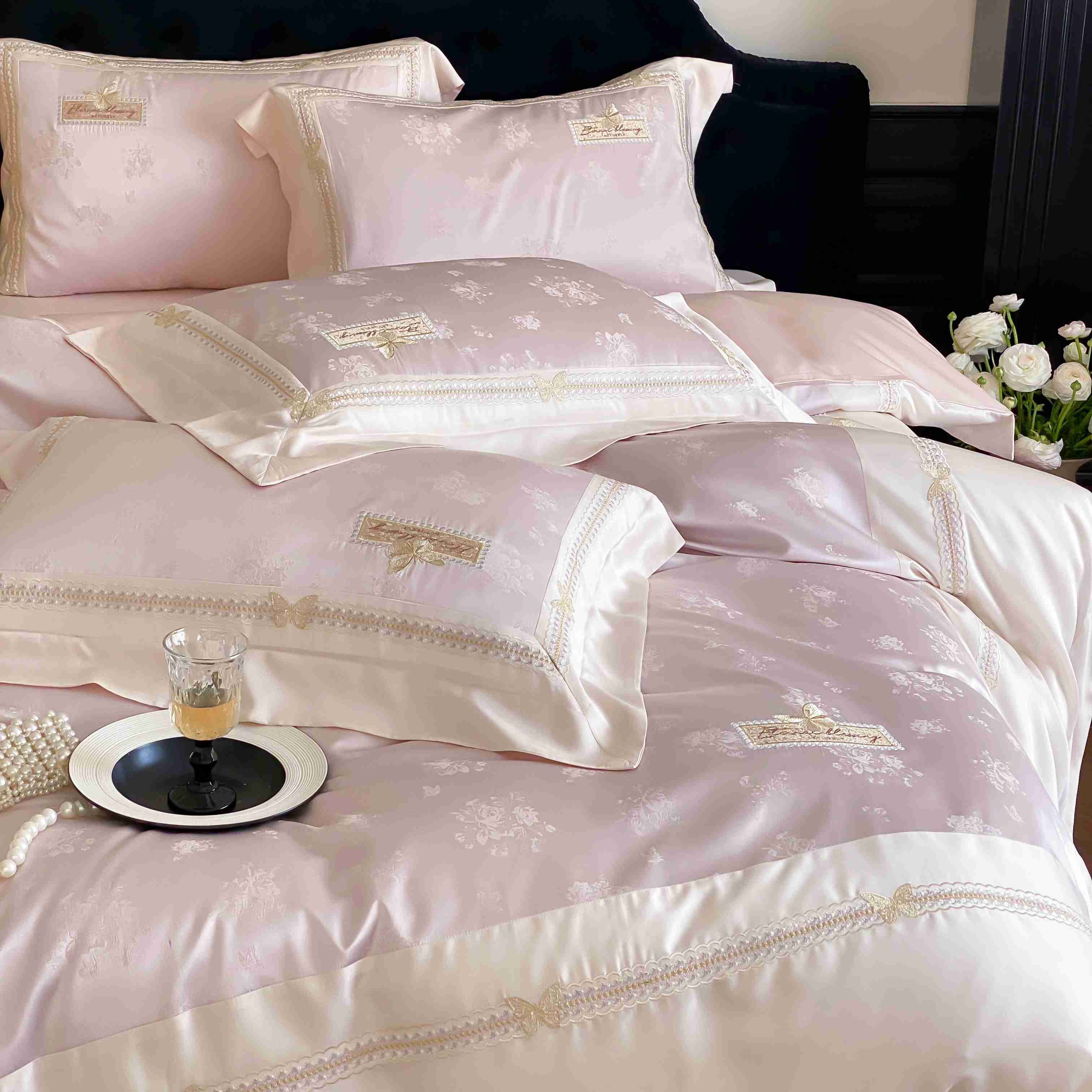 商品名称:太古汇家居 2025新款天丝高精密提花+绣花“花间蝶影”系列四件套 花间蝶影-粉色