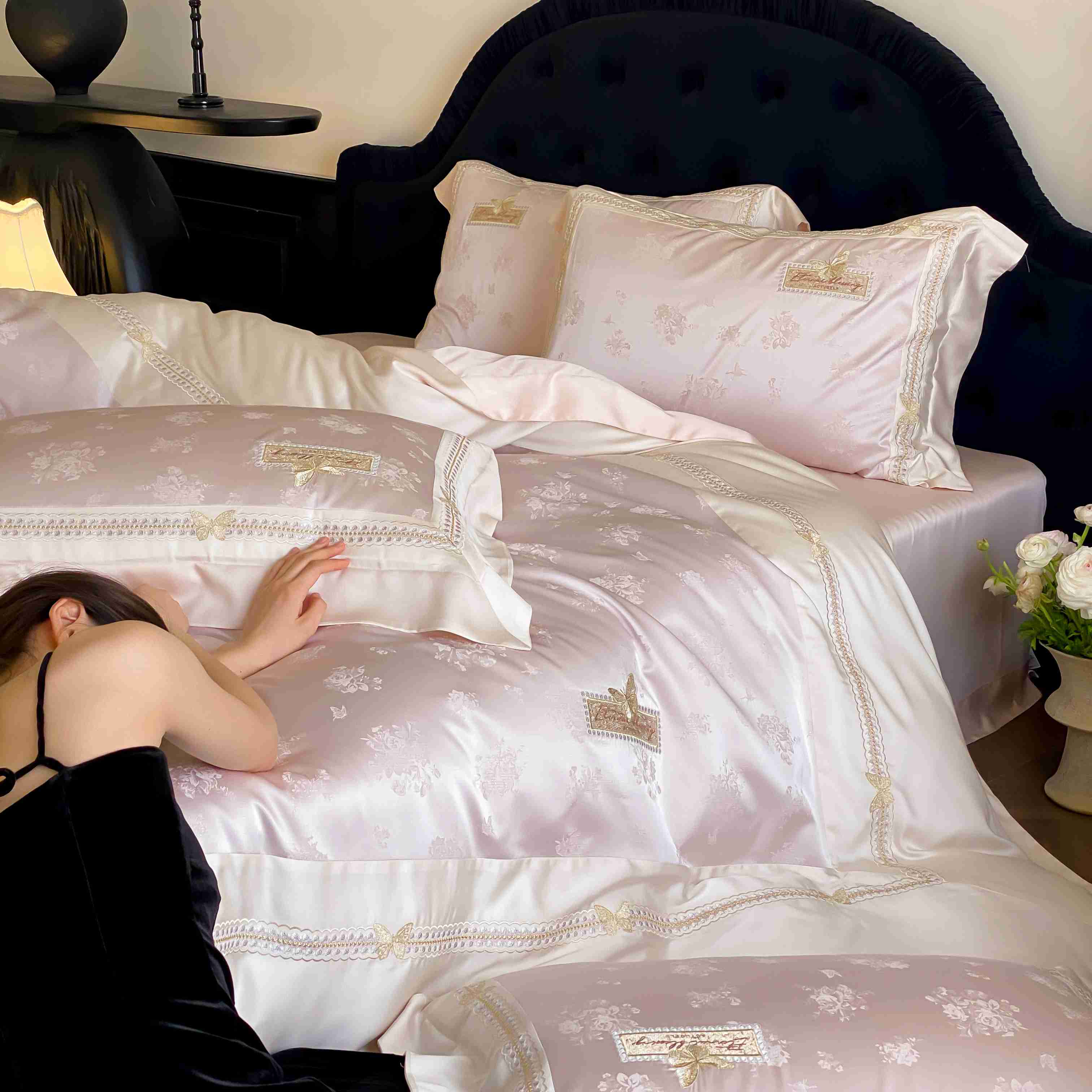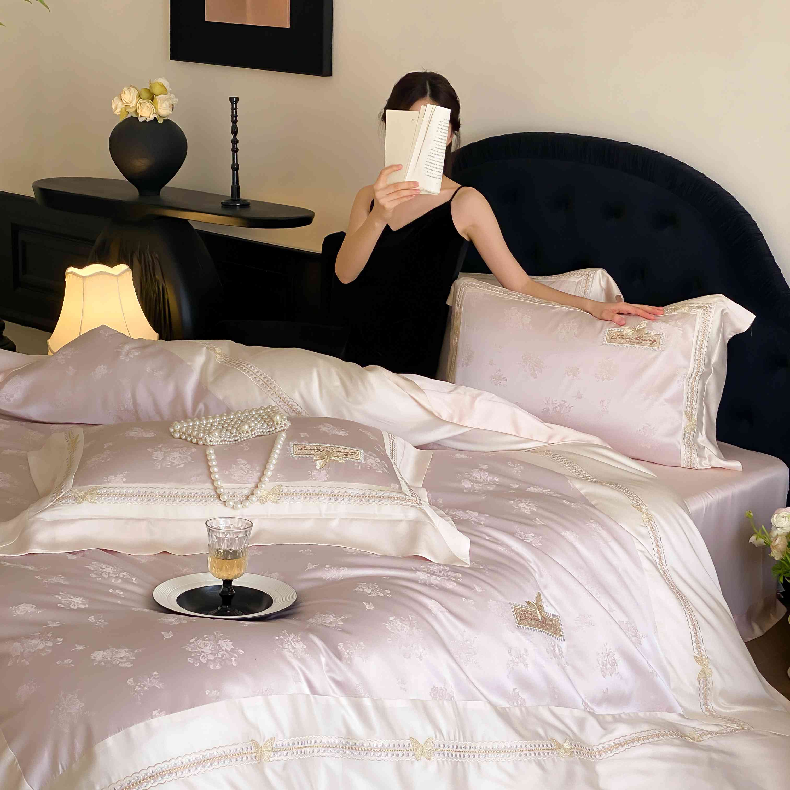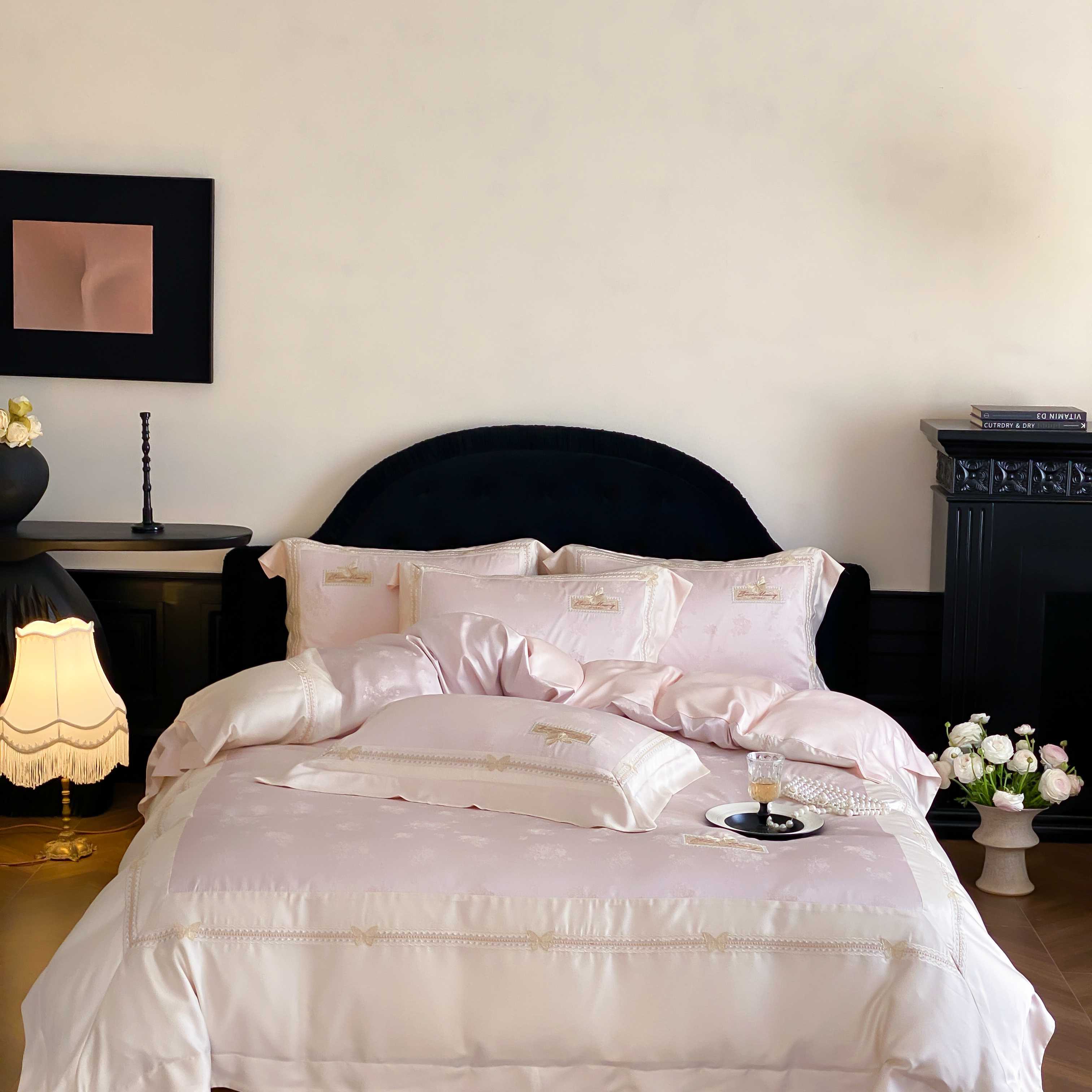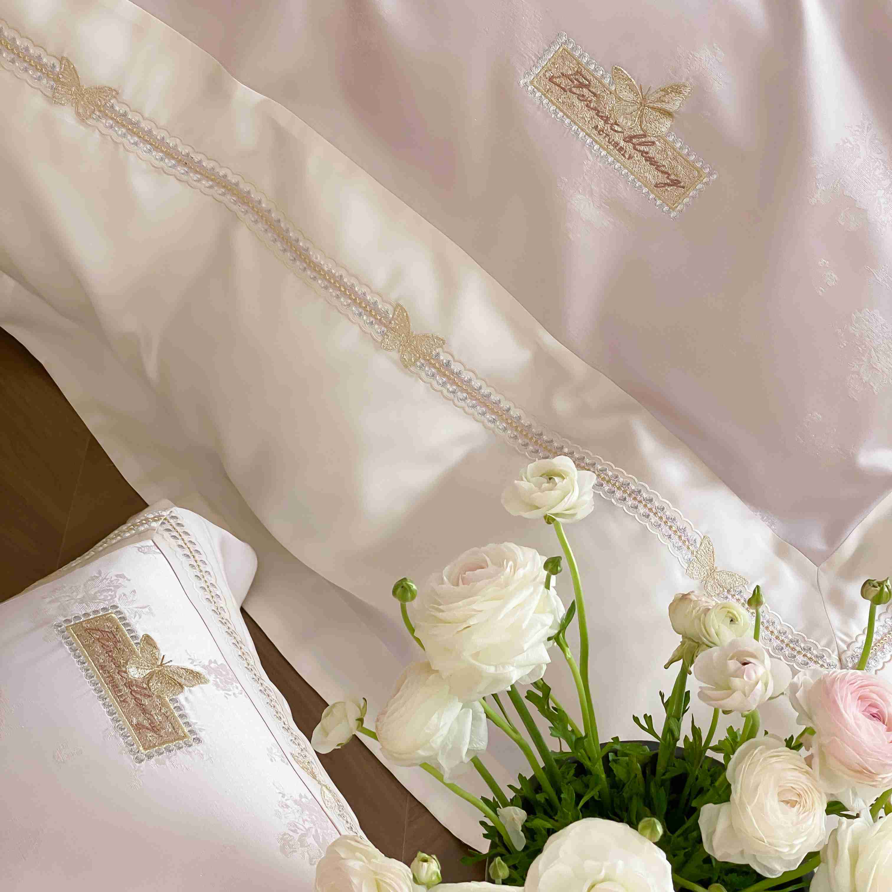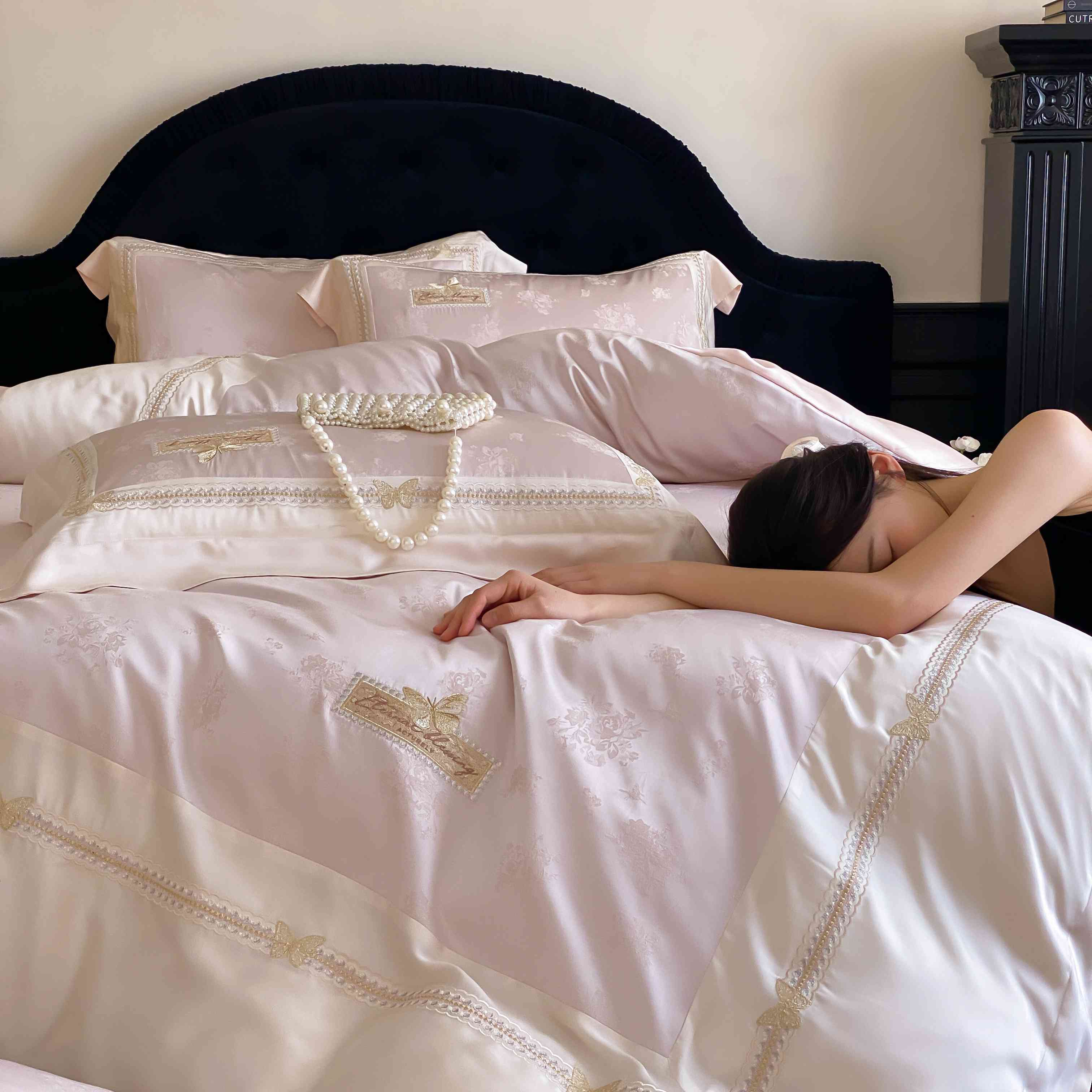 商品名称:太古汇家居 2025新款天丝高精密提花+绣花“花间蝶影”系列四件套 花间蝶影-粉色
