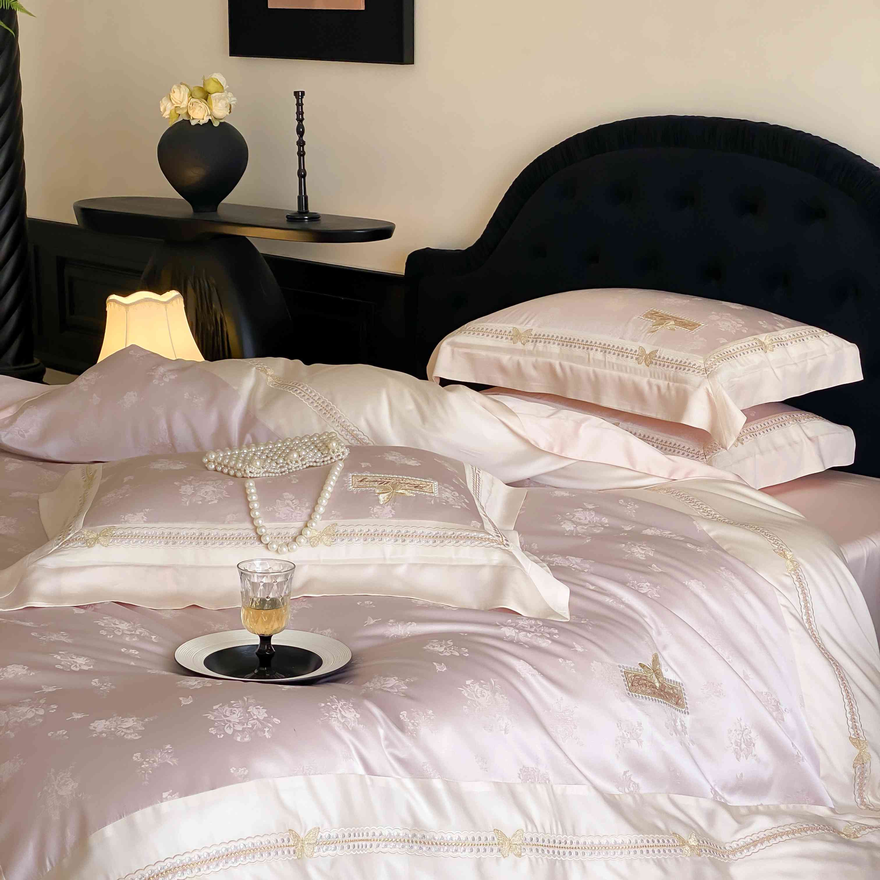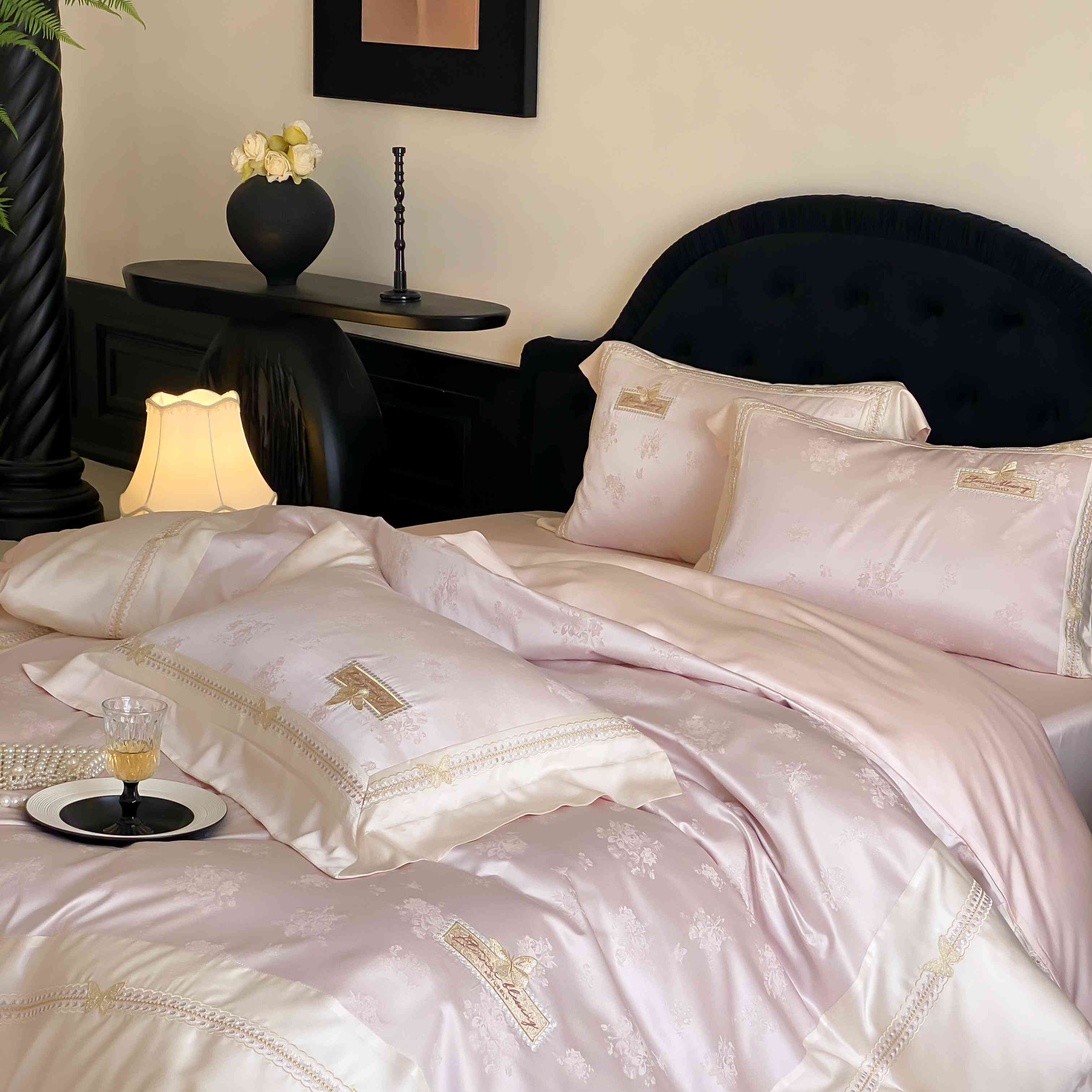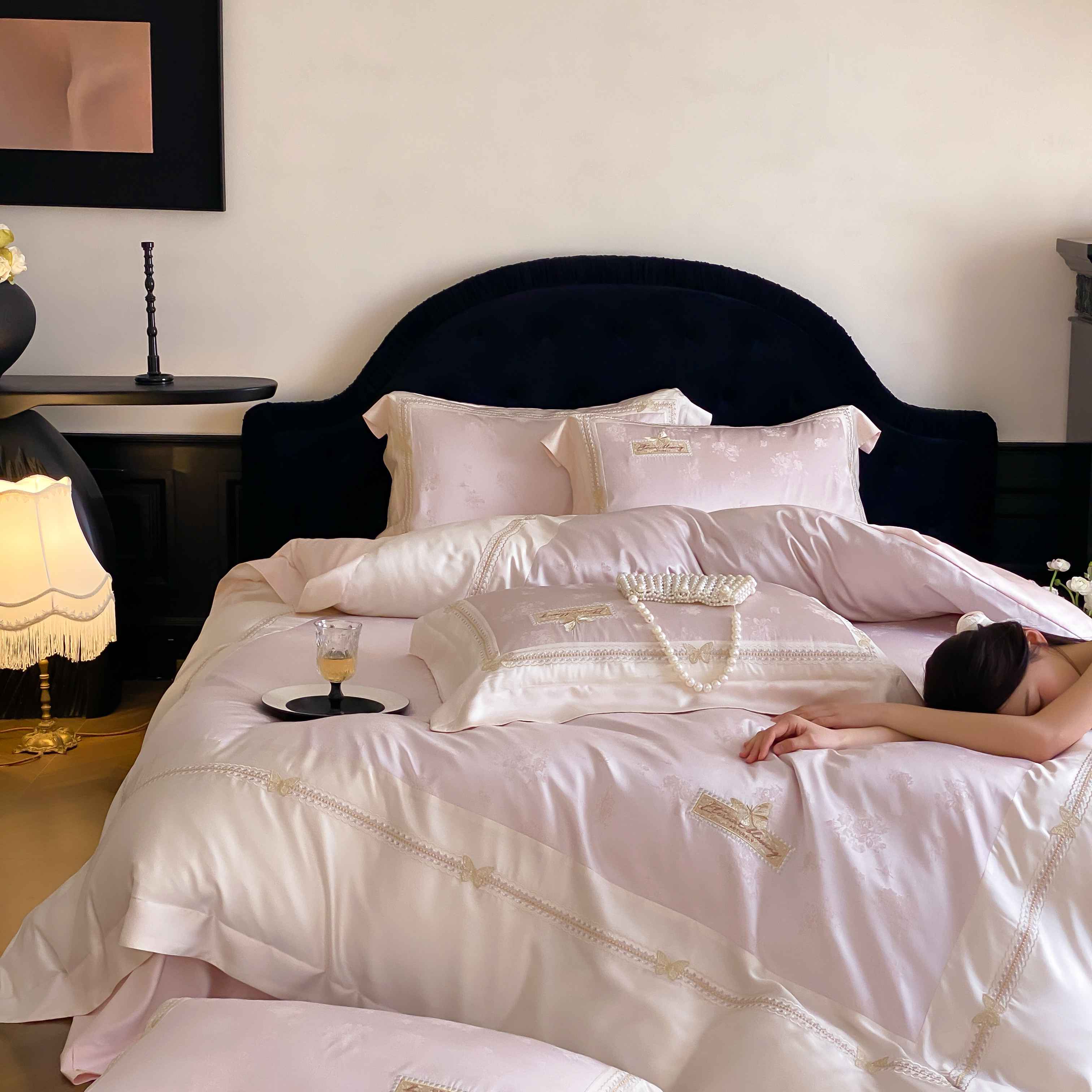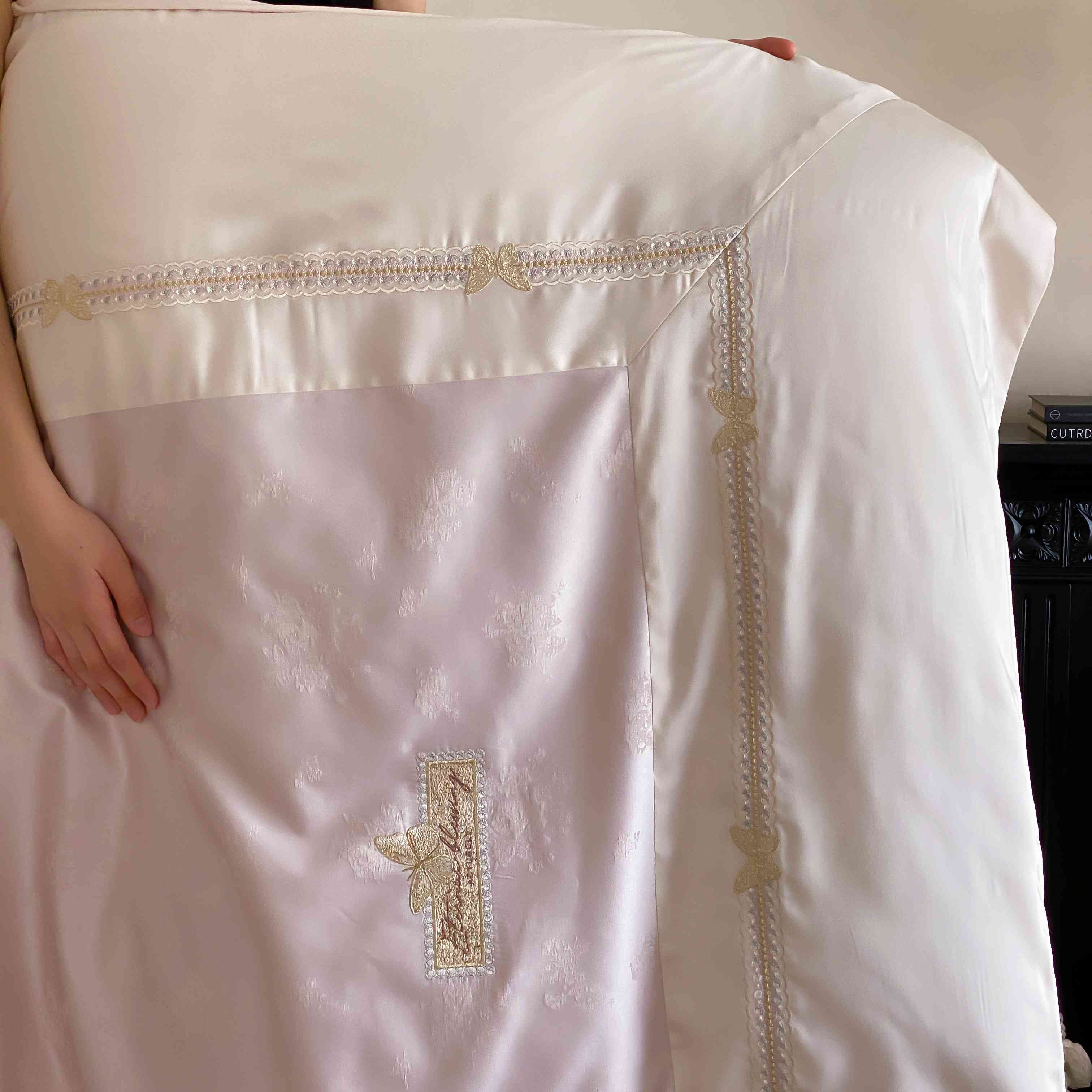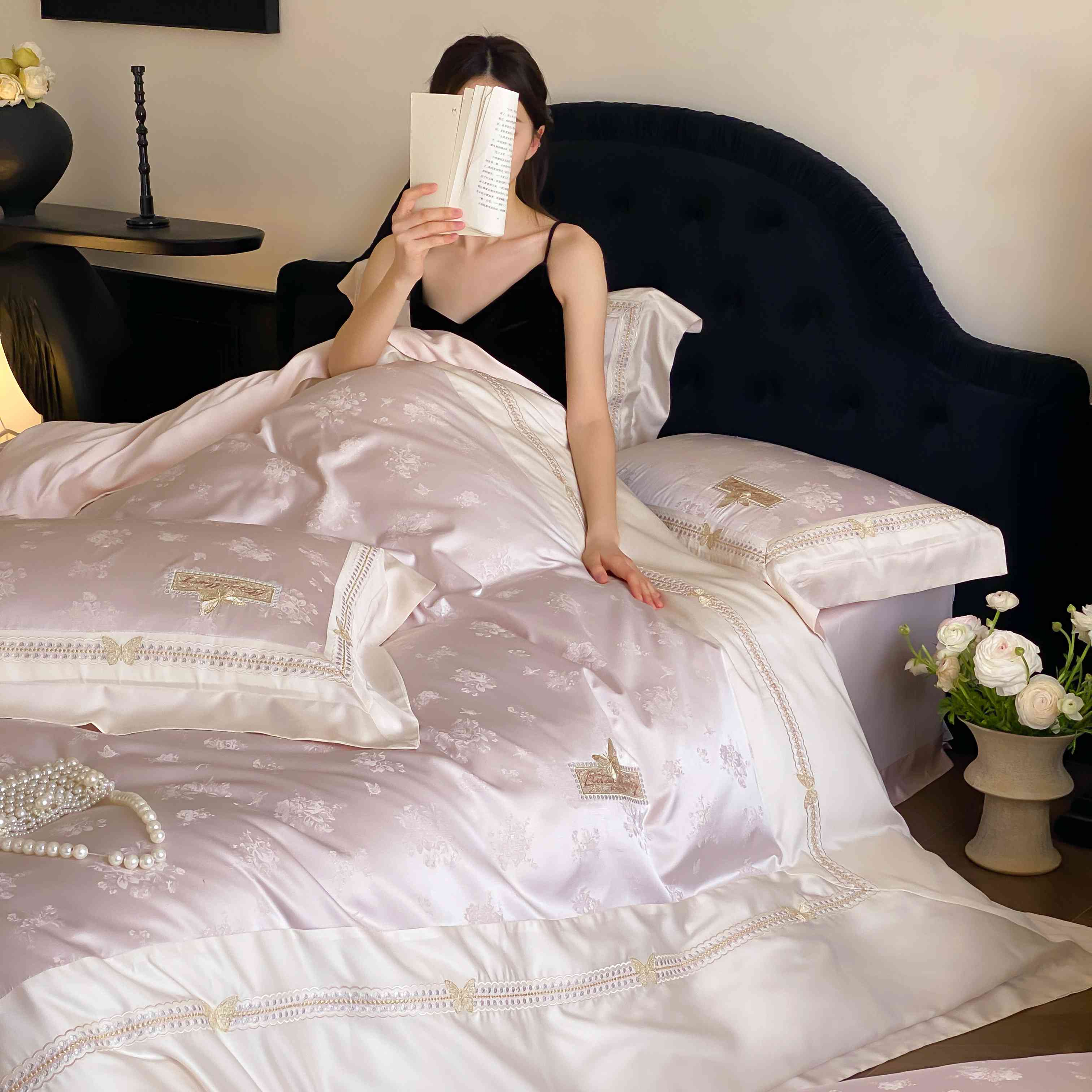 商品名称:太古汇家居 2025新款天丝高精密提花+绣花“花间蝶影”系列四件套 花间蝶影-粉色