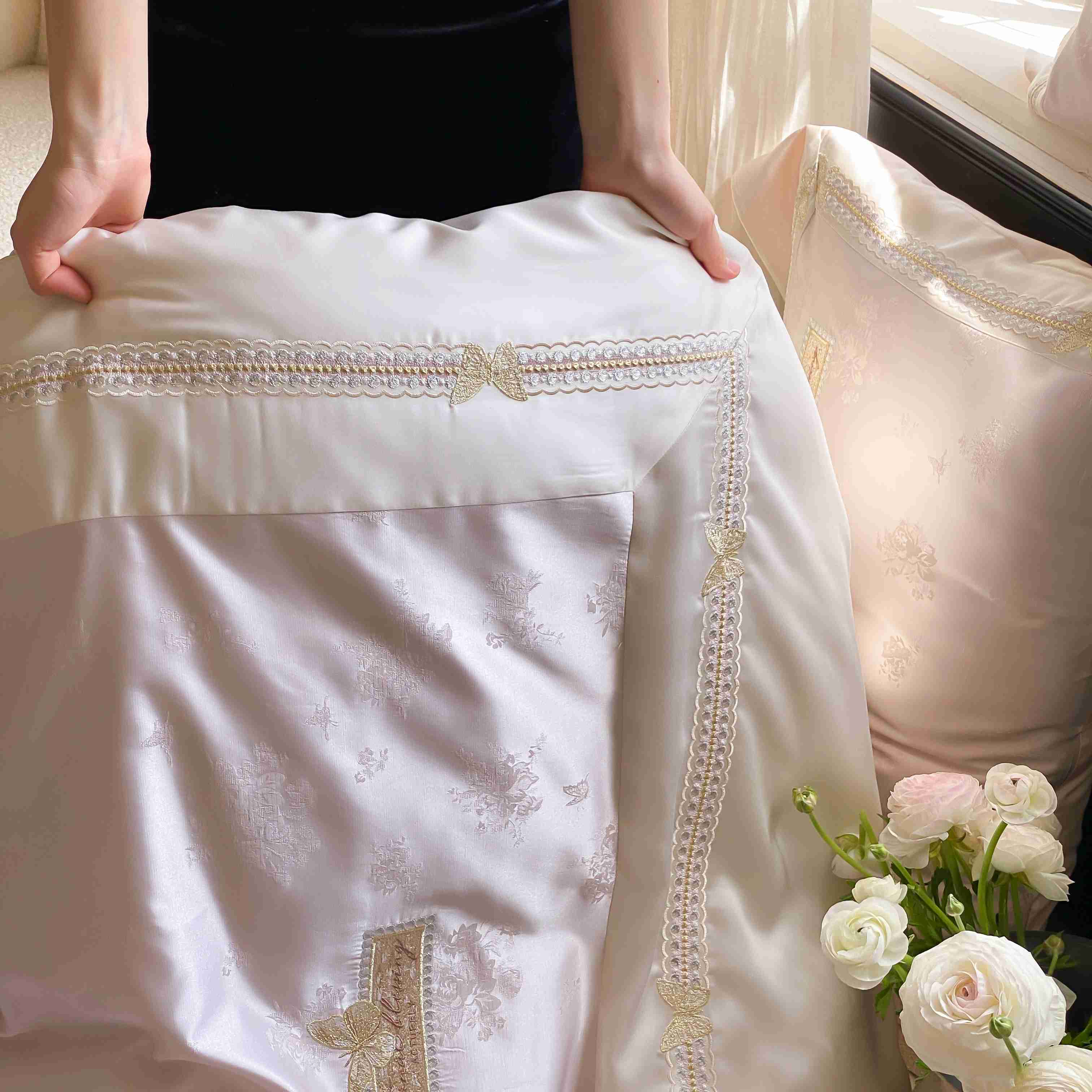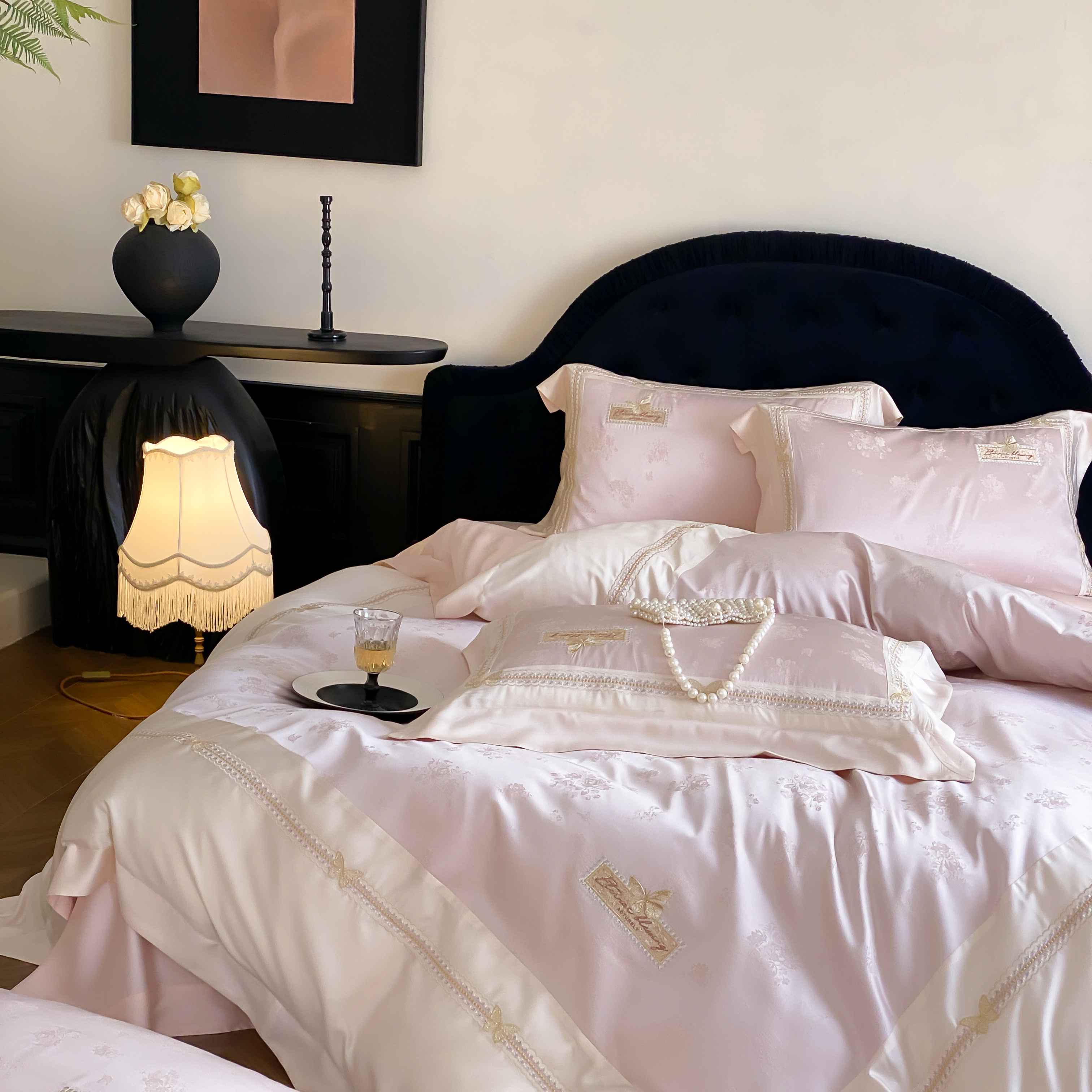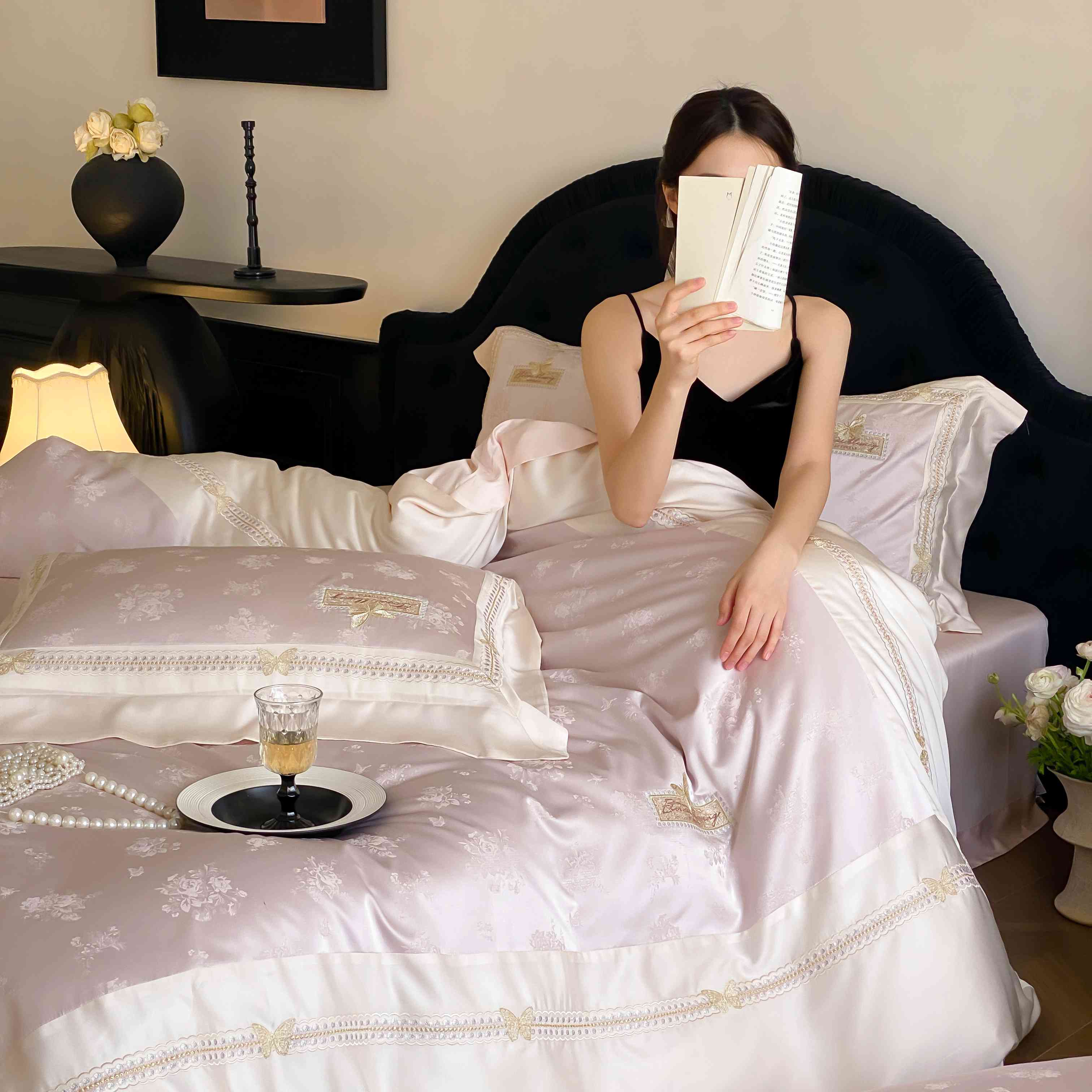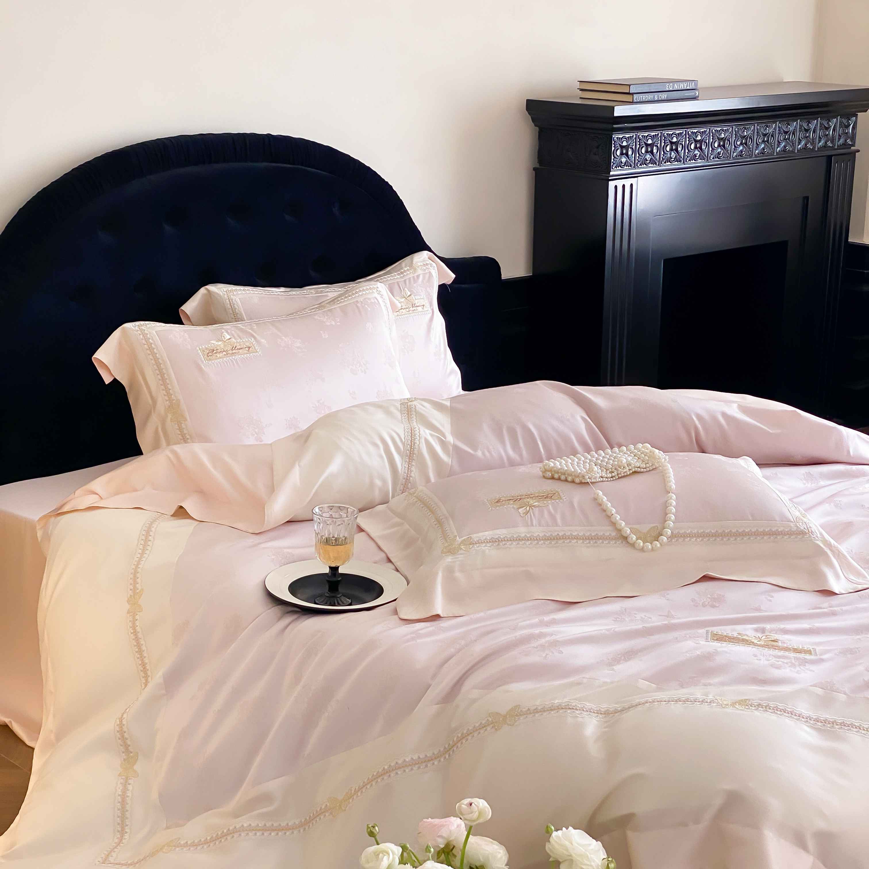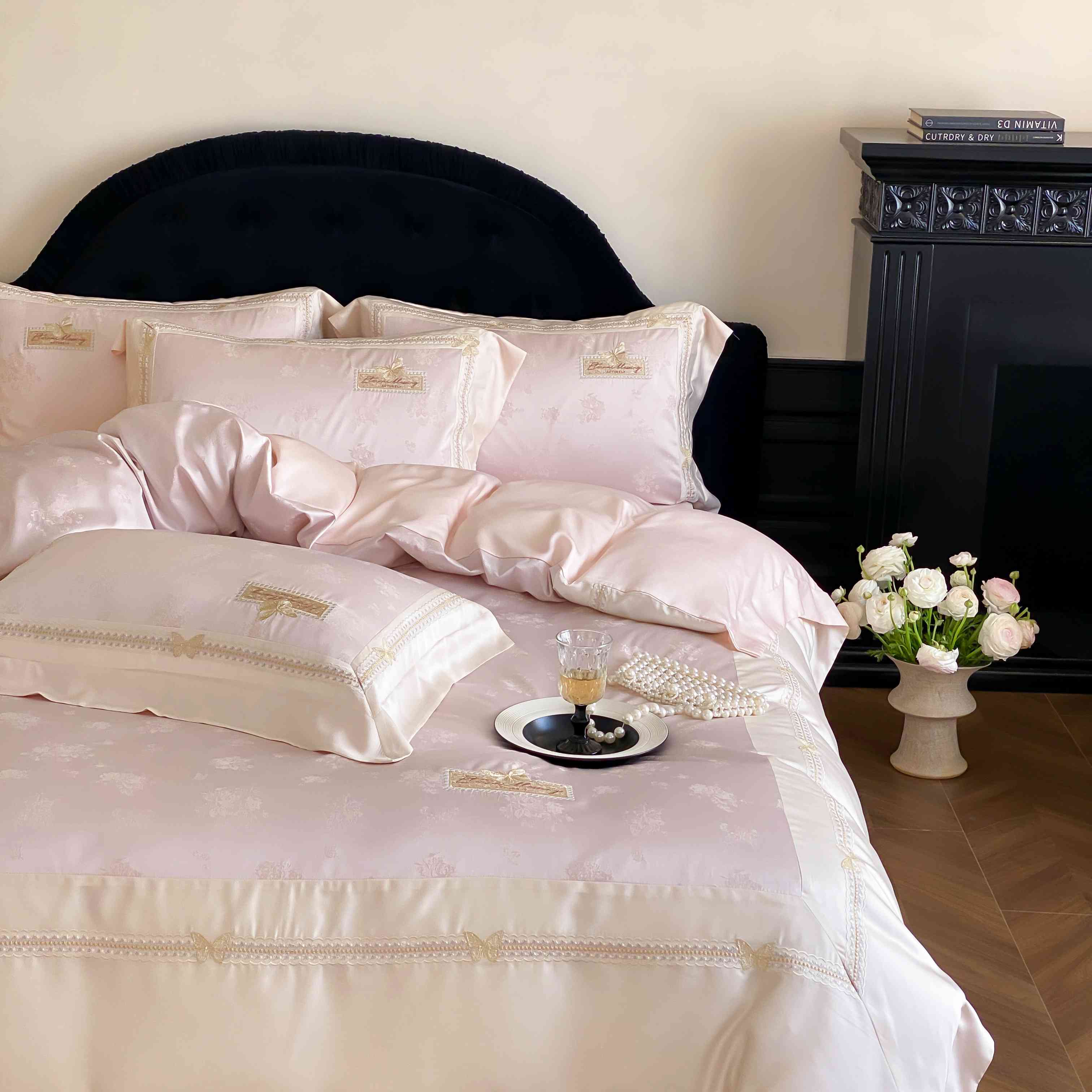 商品名称:太古汇家居 2025新款天丝高精密提花+绣花“花间蝶影”系列四件套 花间蝶影-粉色