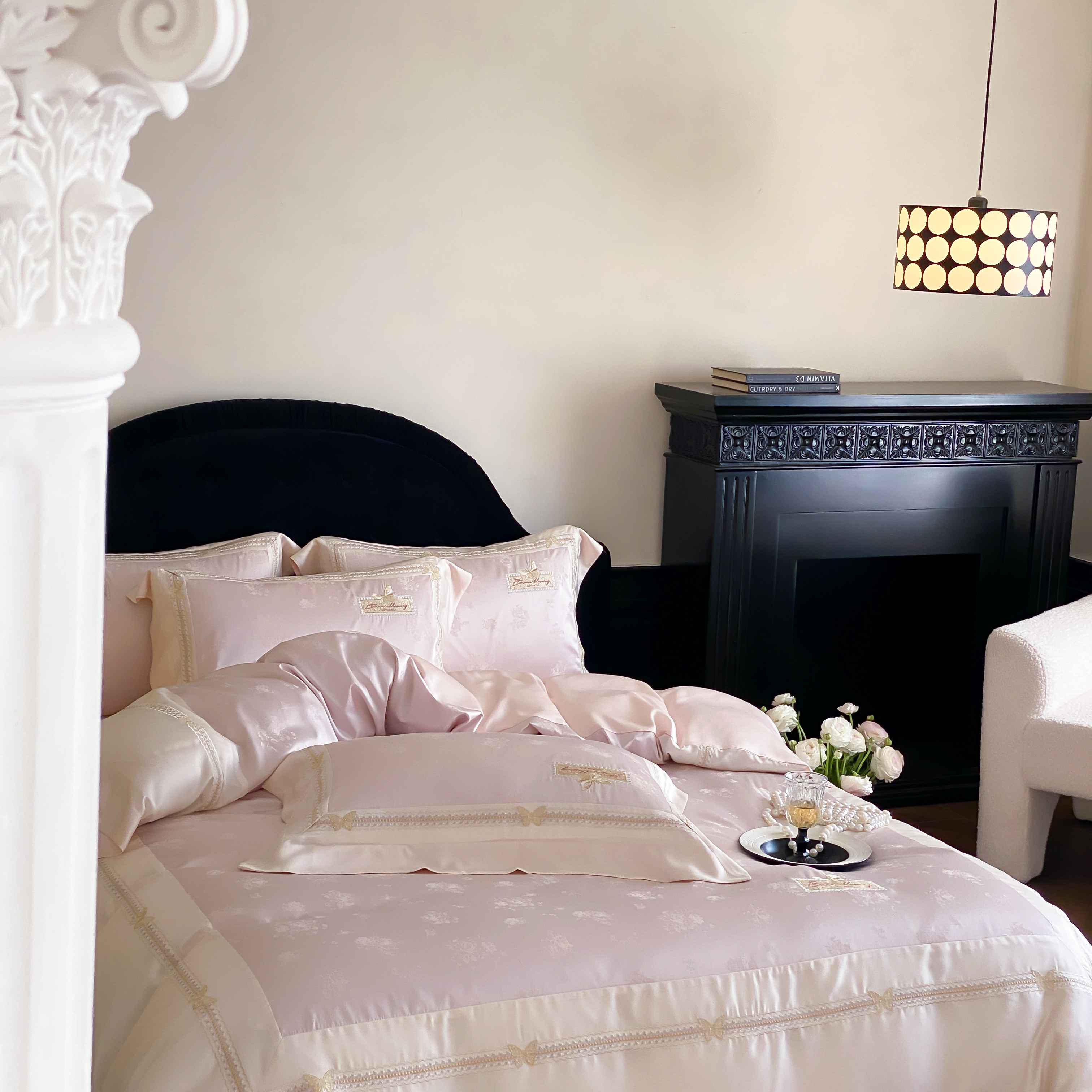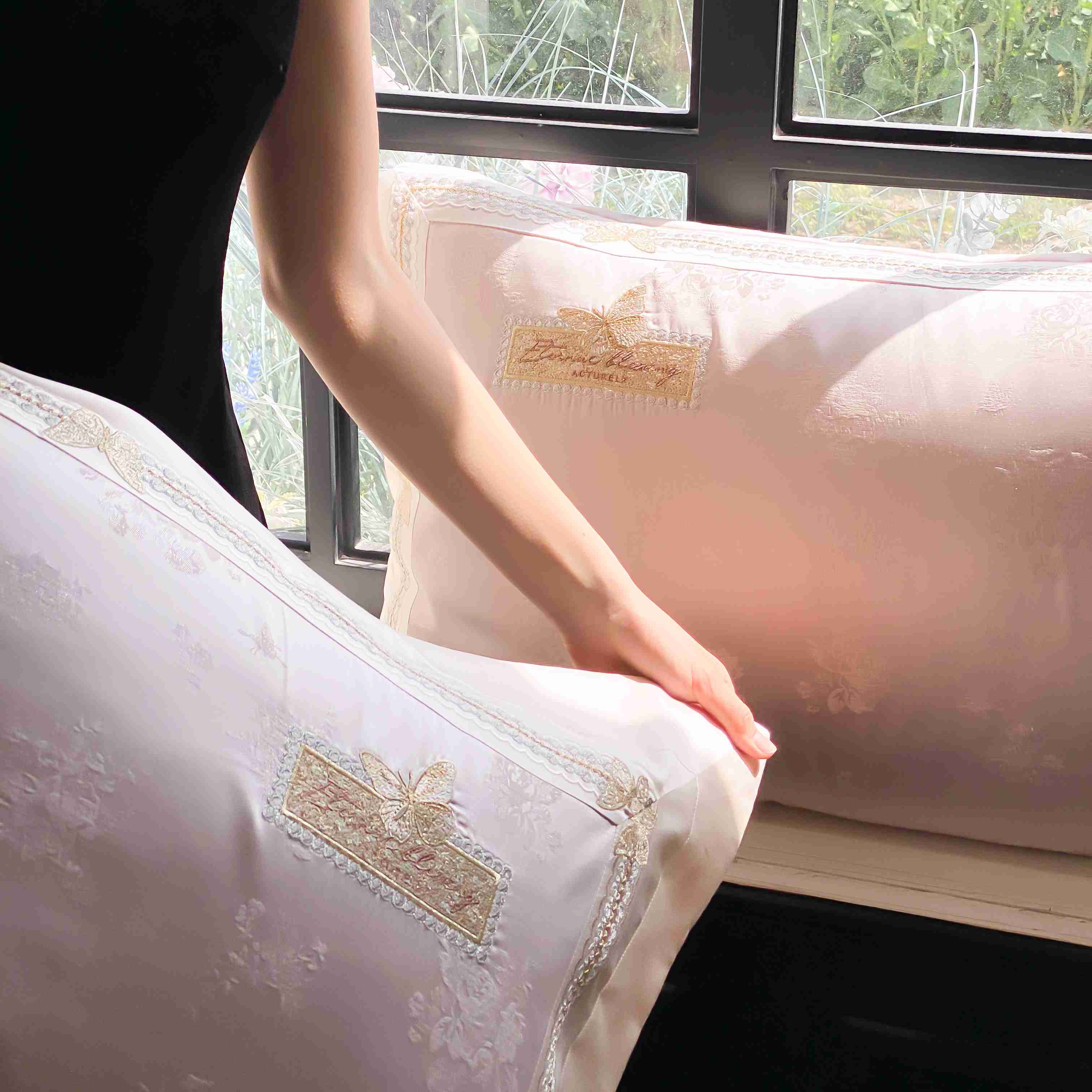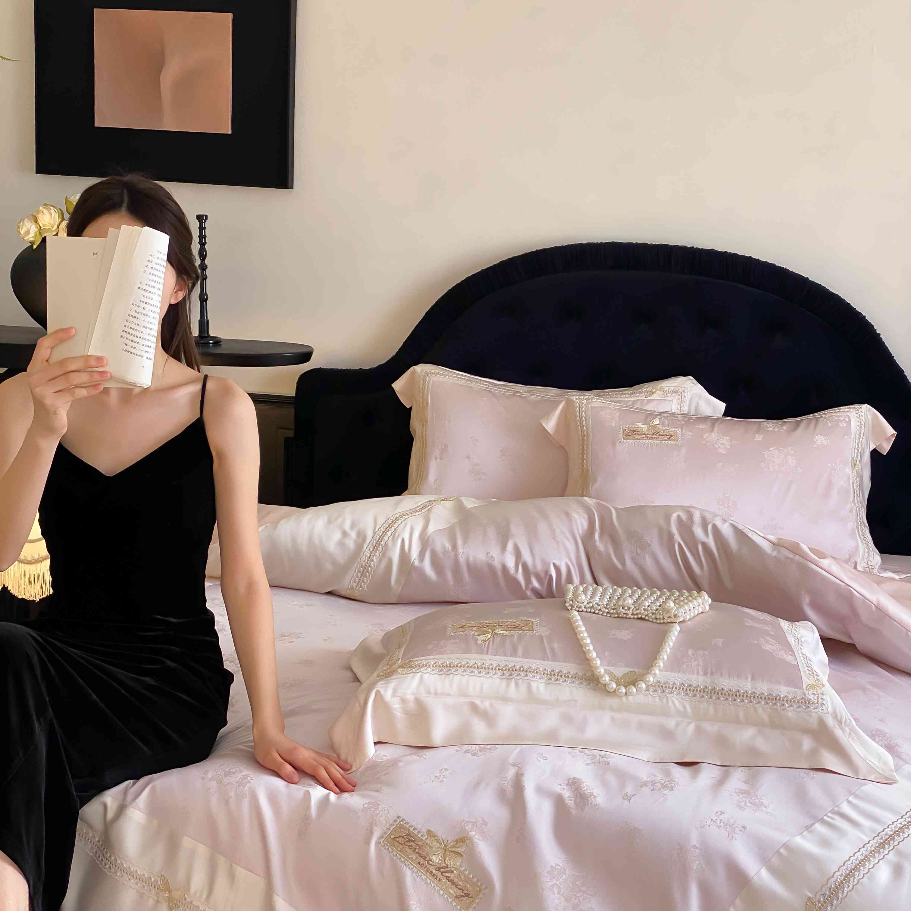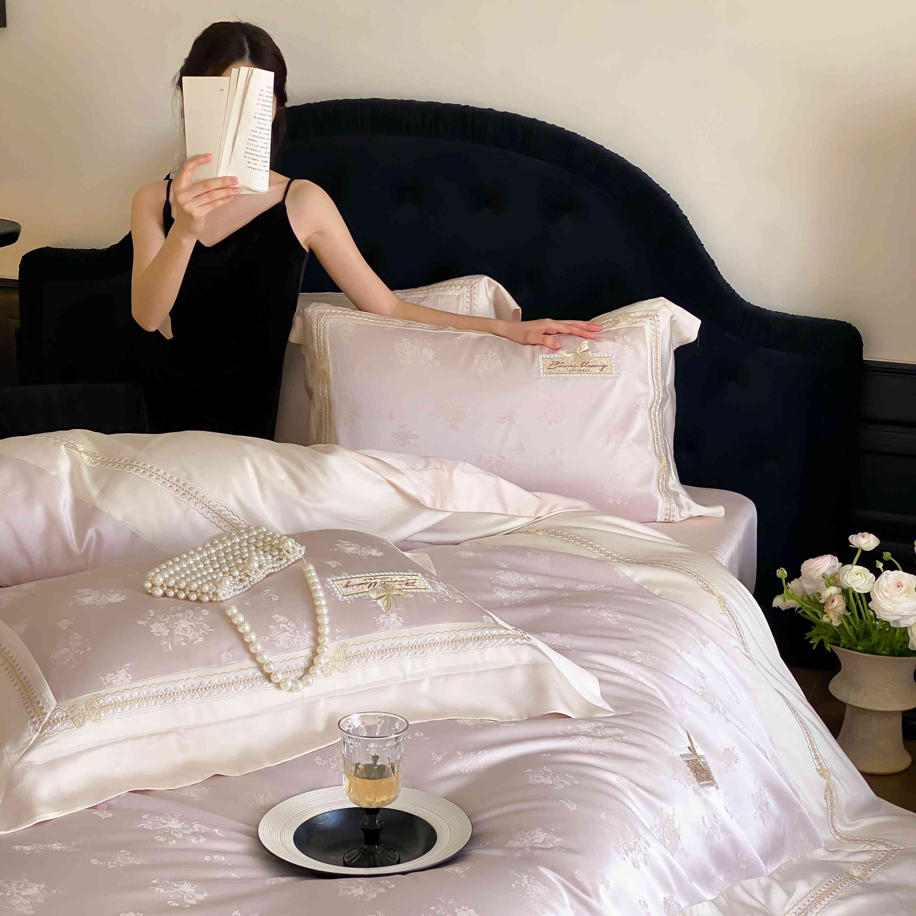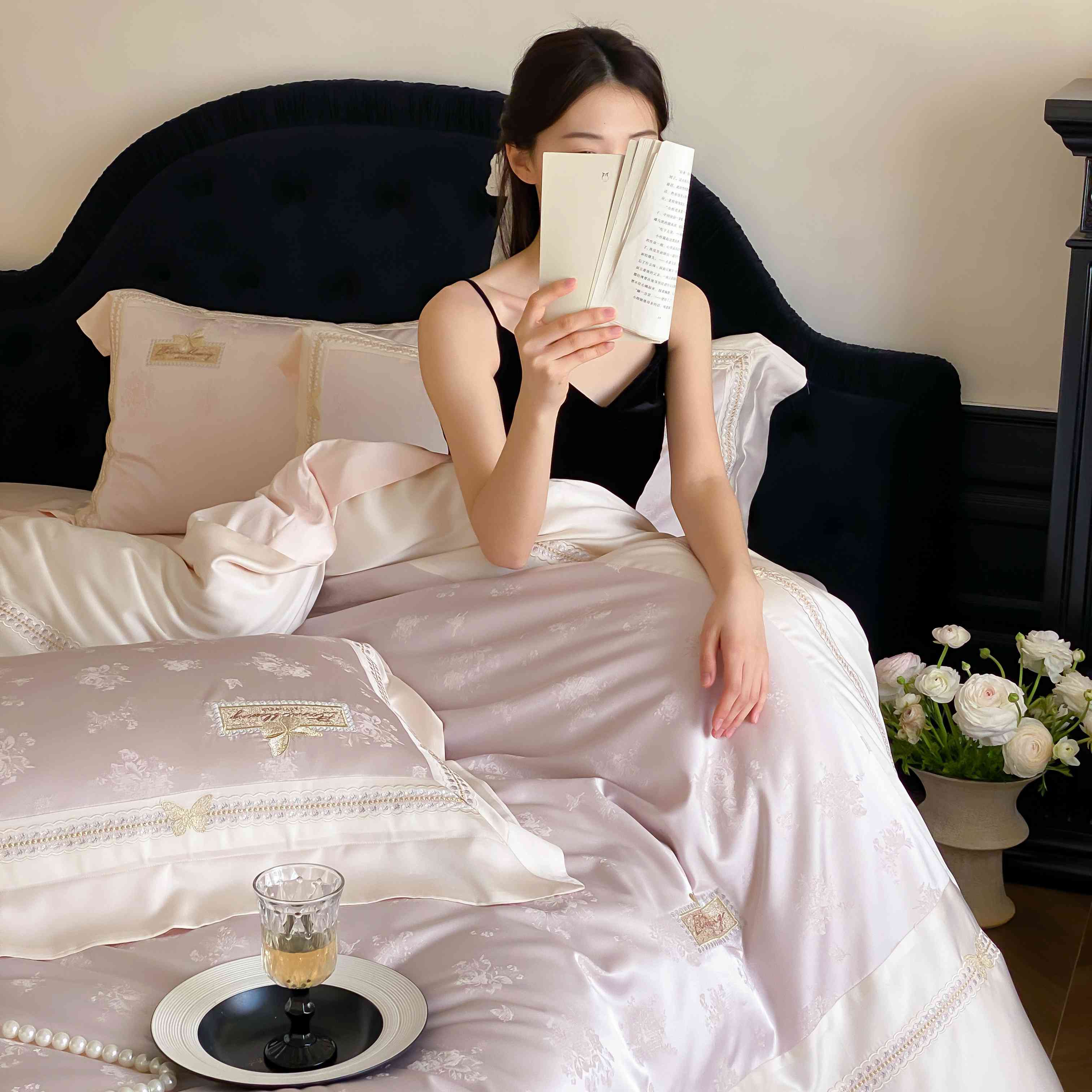 商品名称:太古汇家居 2025新款天丝高精密提花+绣花“花间蝶影”系列四件套 花间蝶影-粉色
