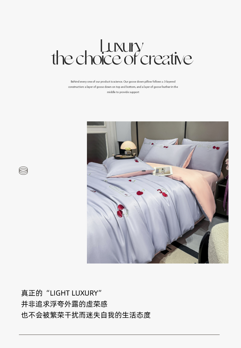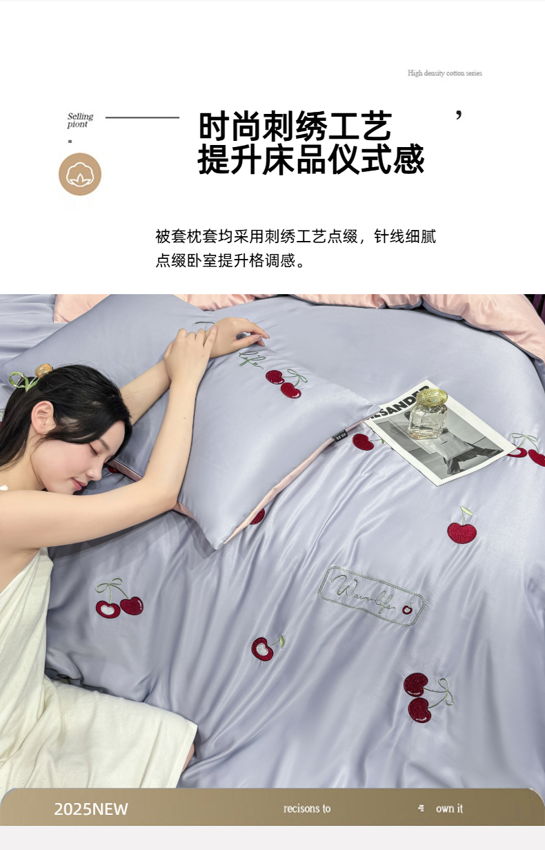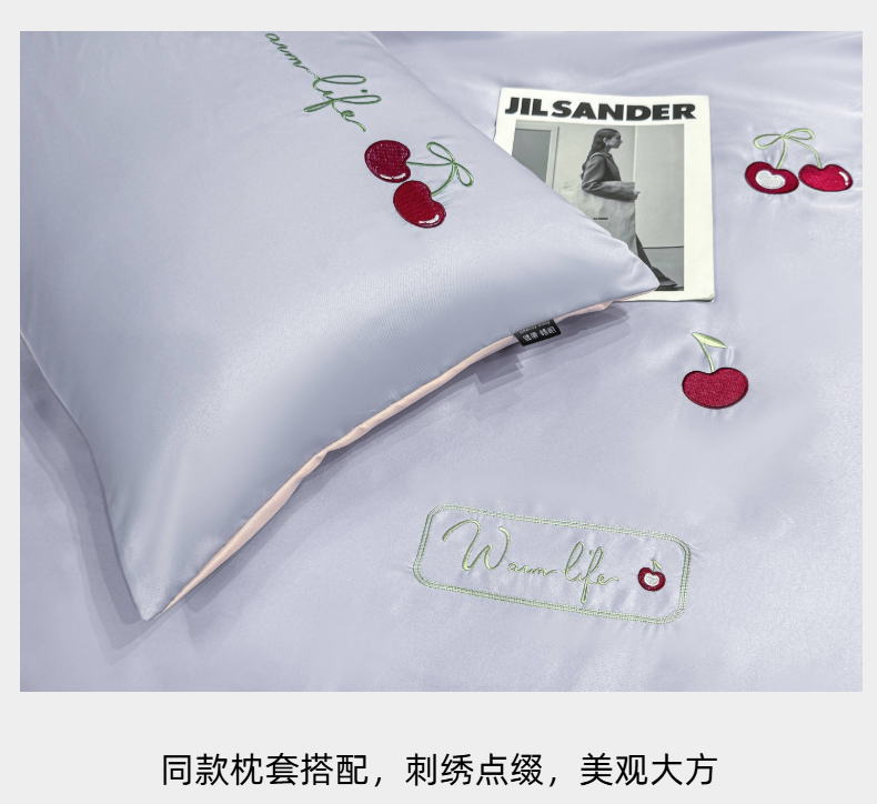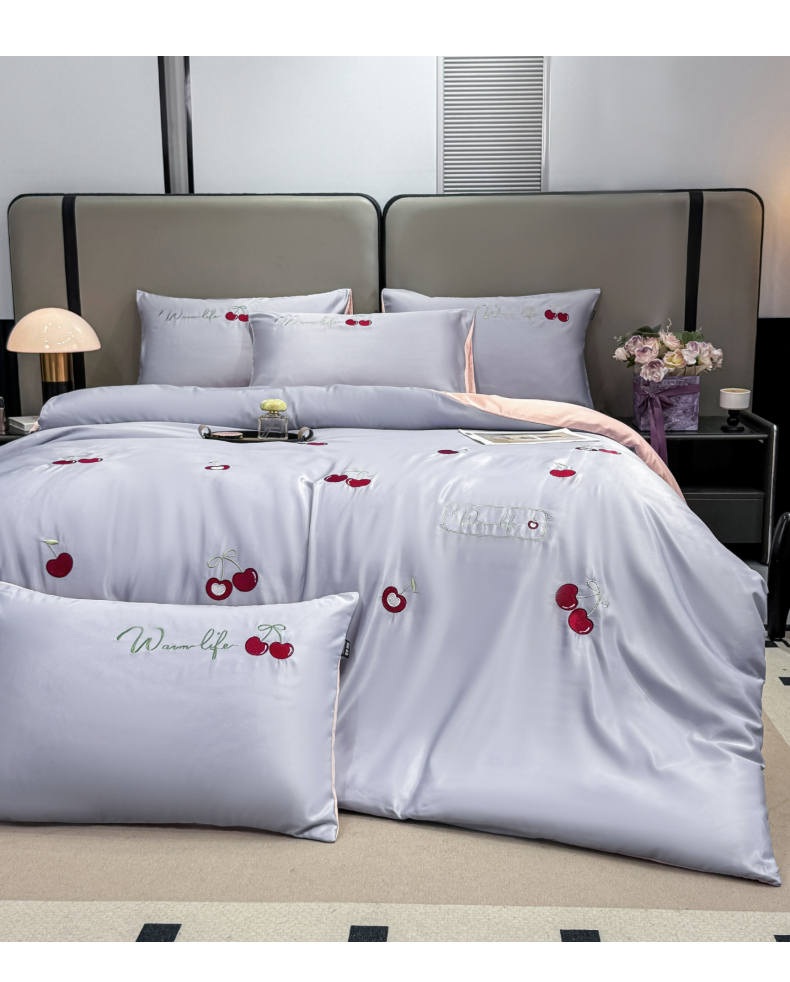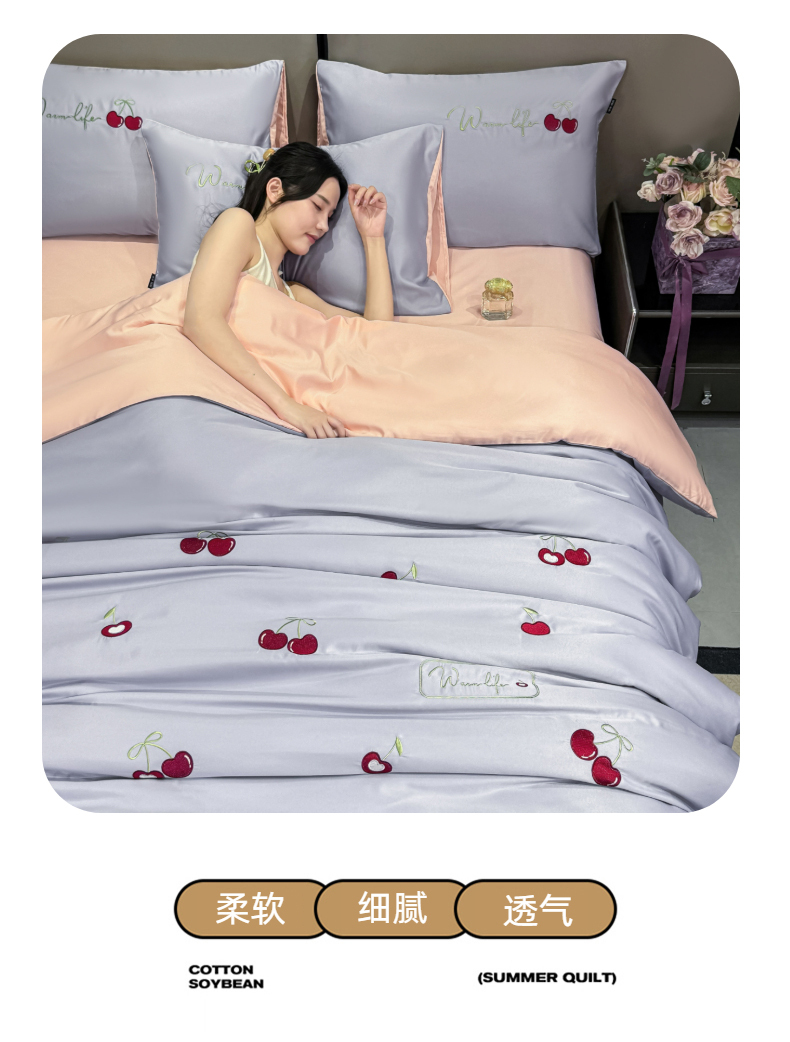 当前位置: 91家纺网 > 商品网购 > 床品套件 > 四件套 > 水洗真丝四件套 > 乐沐家纺 2025春夏新款水洗真丝绣花冰丝四件套 樱桃-星黛紫