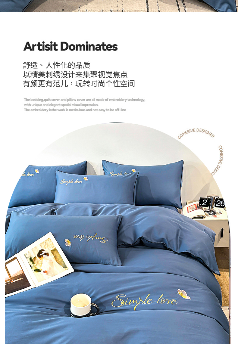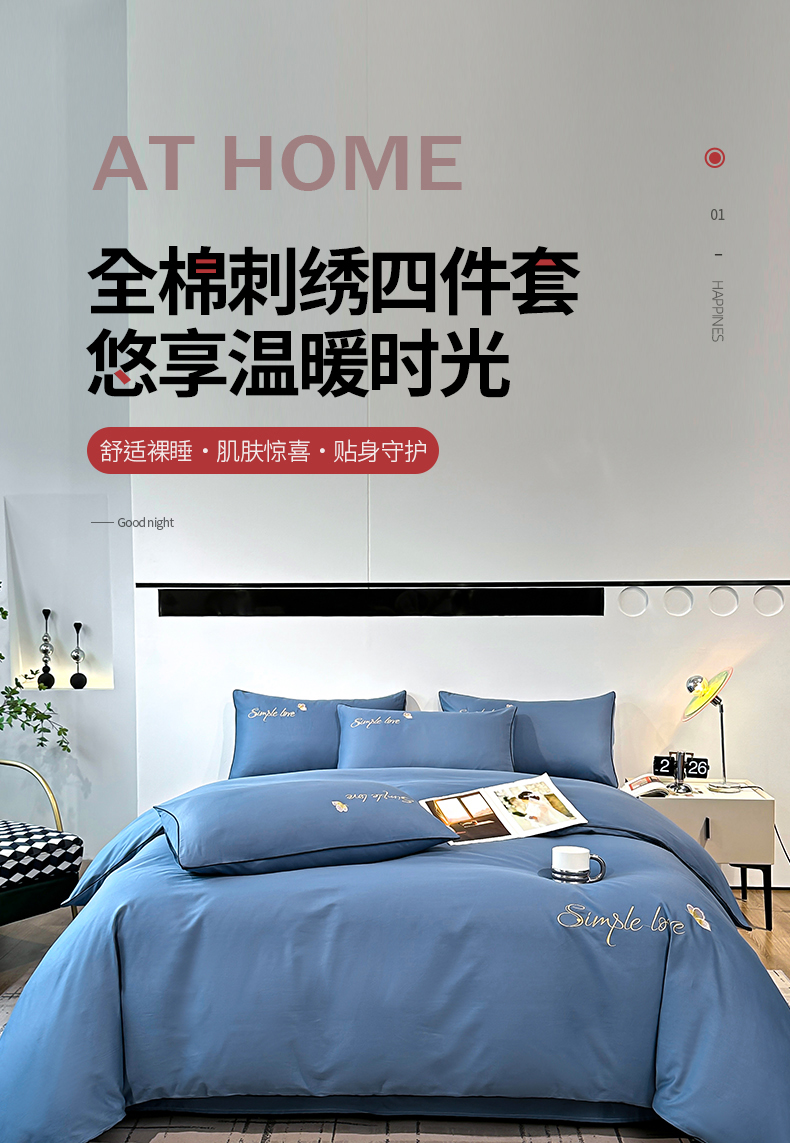 (总)宇彬家纺 2026直播热爆新款A类13374全棉一字绣纯色四件套贡缎新疆长绒匹马棉可定做,眠系列- 宾利蓝,眠系列-宝石红,眠系列-典雅紫,眠系列-摩卡绿,眠系列-奶油粉,眠系列-绅士灰,眠系列-炫彩绿,眠系列-紫豆沙
