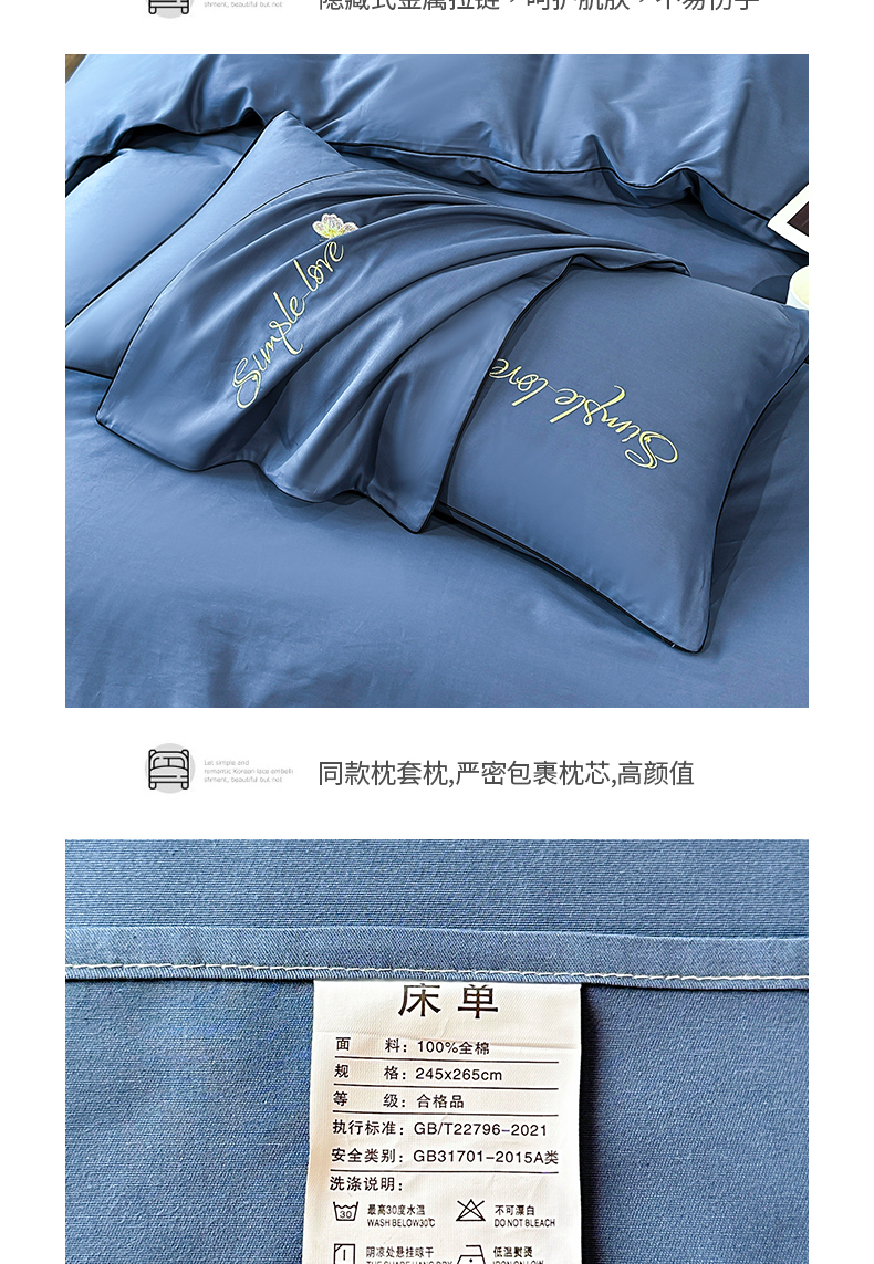 商品名称:宇彬家纺 2025直播热款新款13374全棉母婴级麻绳滚边纯棉色刺绣单品被套 轻奢 宾利蓝
