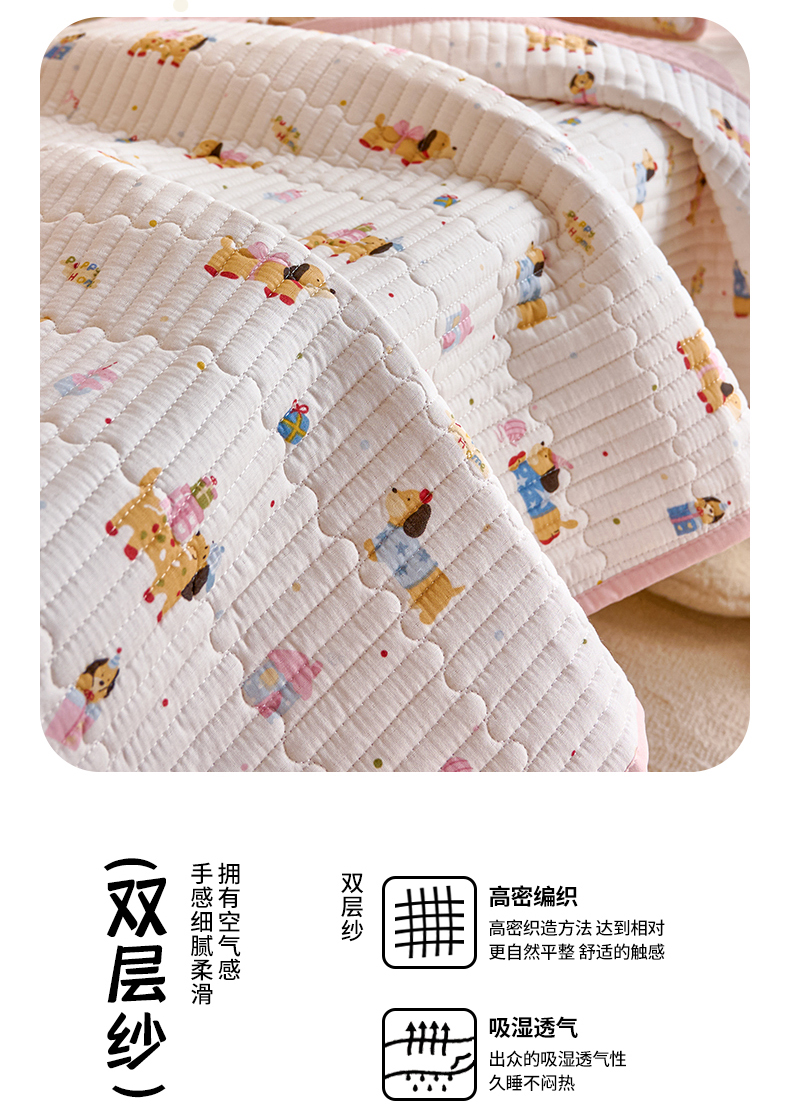 X猫先生 2025新款全棉双层纱婴幼儿童床盖夹棉床单睡垫薄床垫子母婴级 狗狗礼物