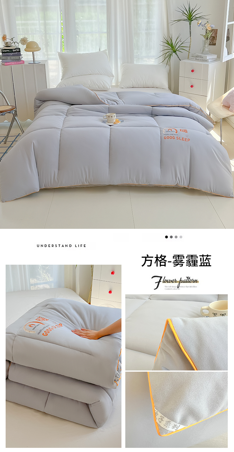 • 91家纺网 家纺一手货源 找家纺 美尔惠家纺 2025新款母婴级直播热款超柔冬被被子被芯-方格系列 方格-雾霾蓝