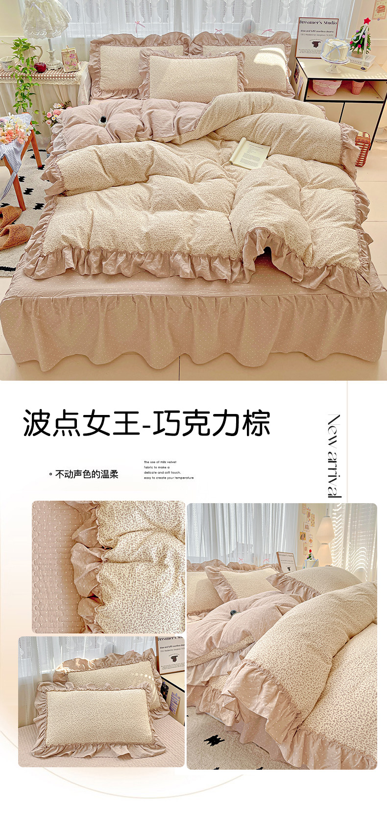 2025秋冬加厚款云感亲肤棉邹邹纱床盖床裙四件套-仙美密拷花边 波点女王-巧克力棕