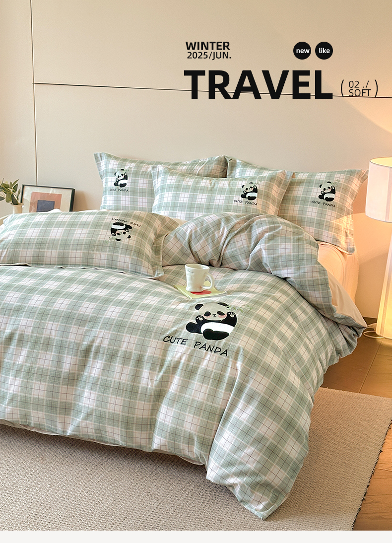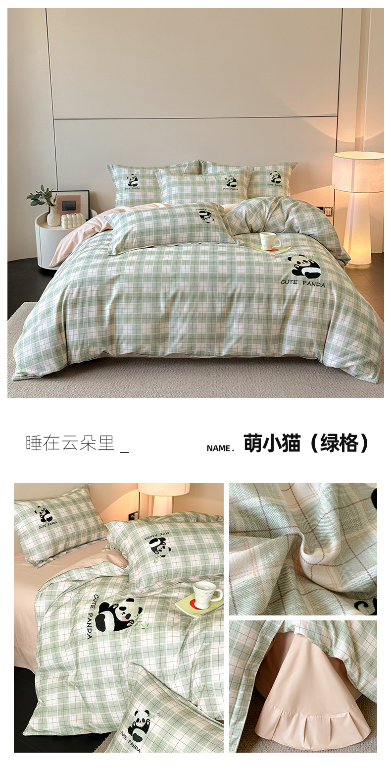当前位置: 91家纺网 > 商品网购 > 床品套件 > 四件套 > 全棉普通四件套 > 帛美家纺 2025年新款全棉纯棉加厚绣花款磨毛四件套-萌小猫系列 萌小猫(绿格)